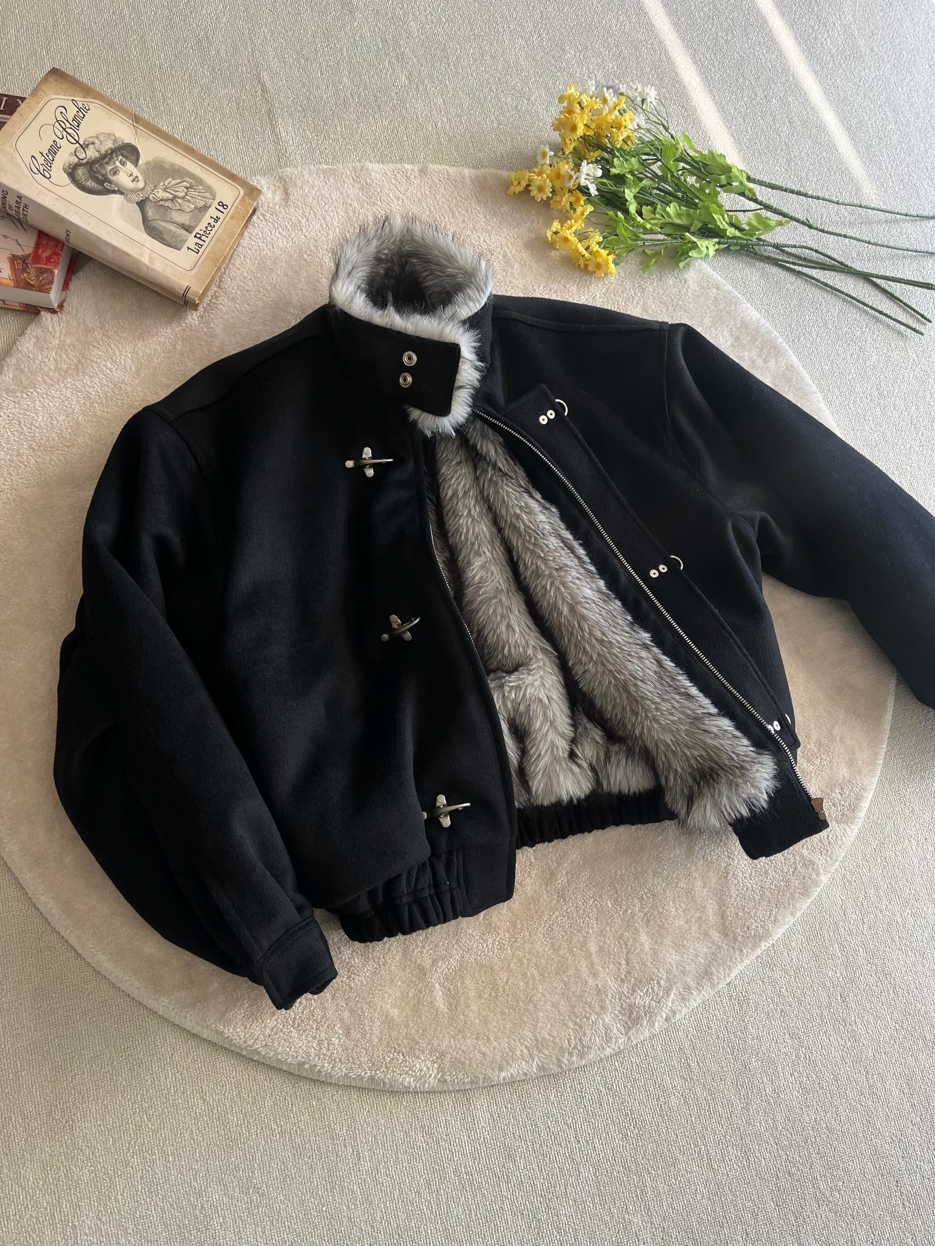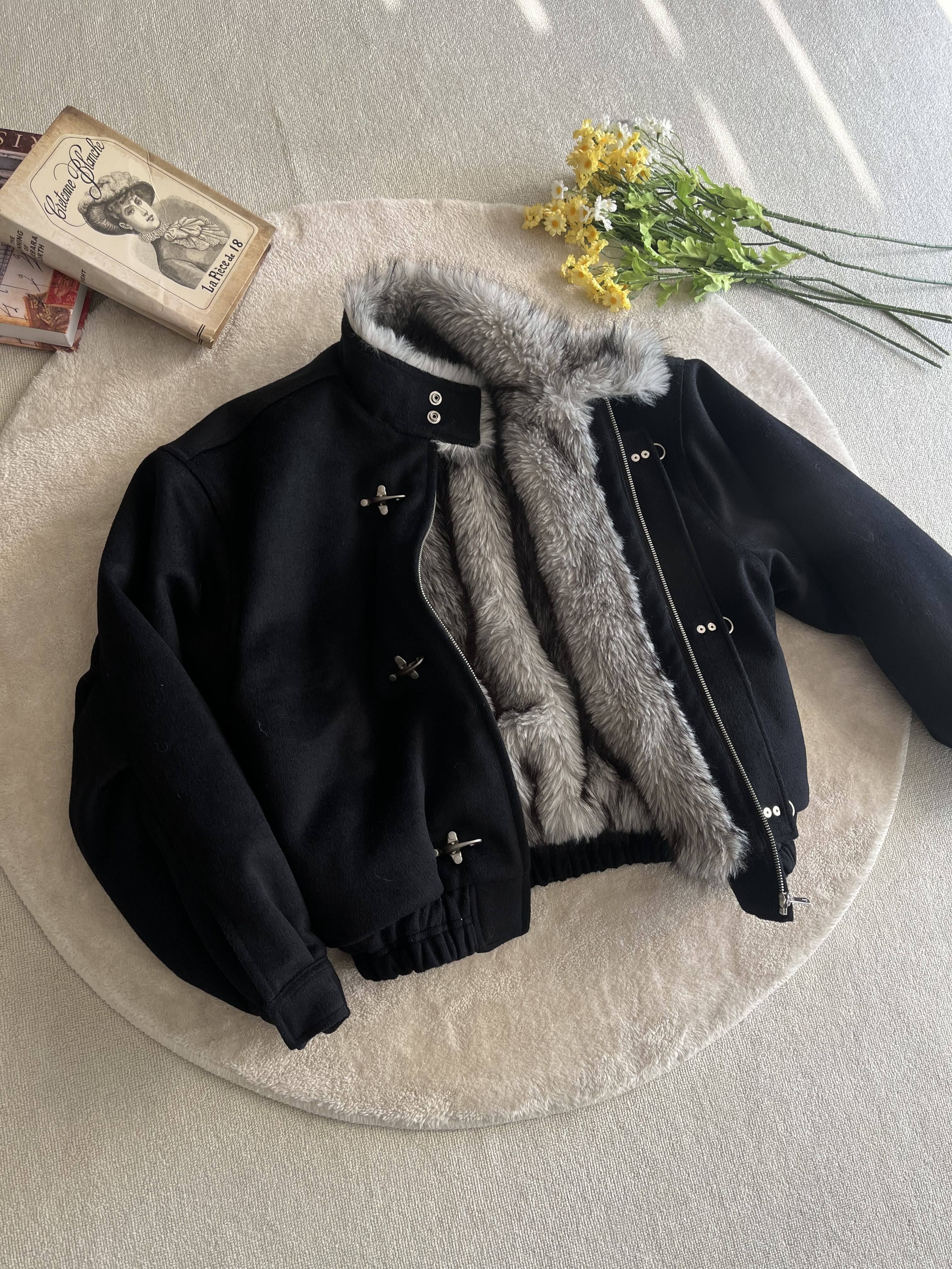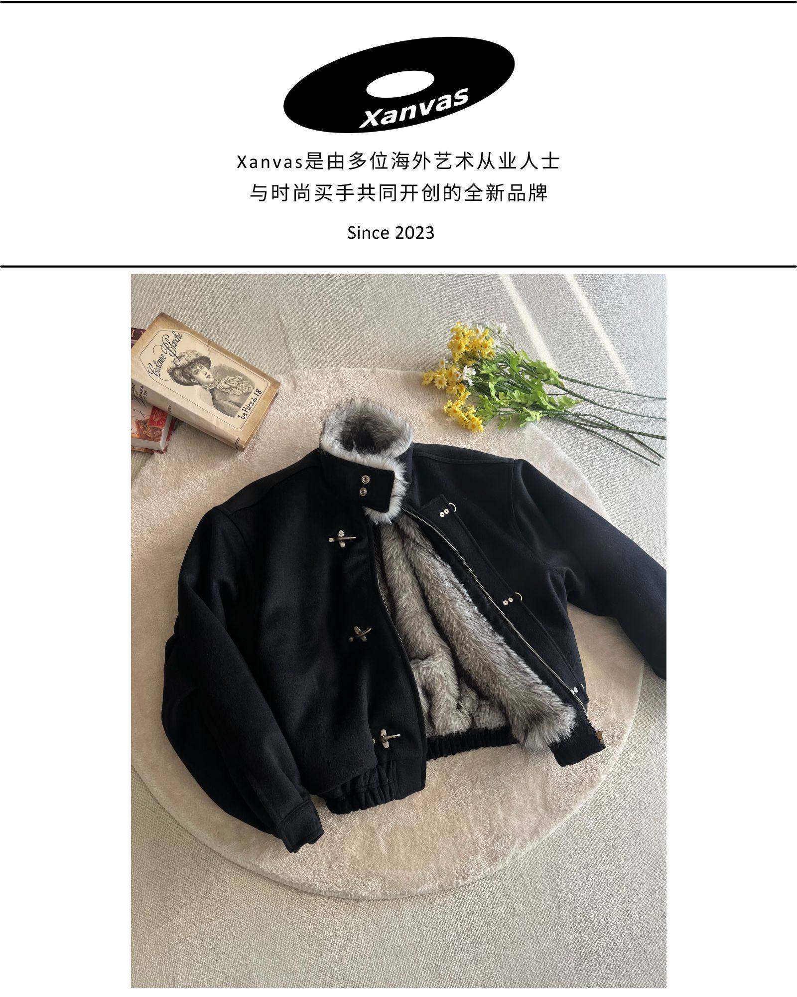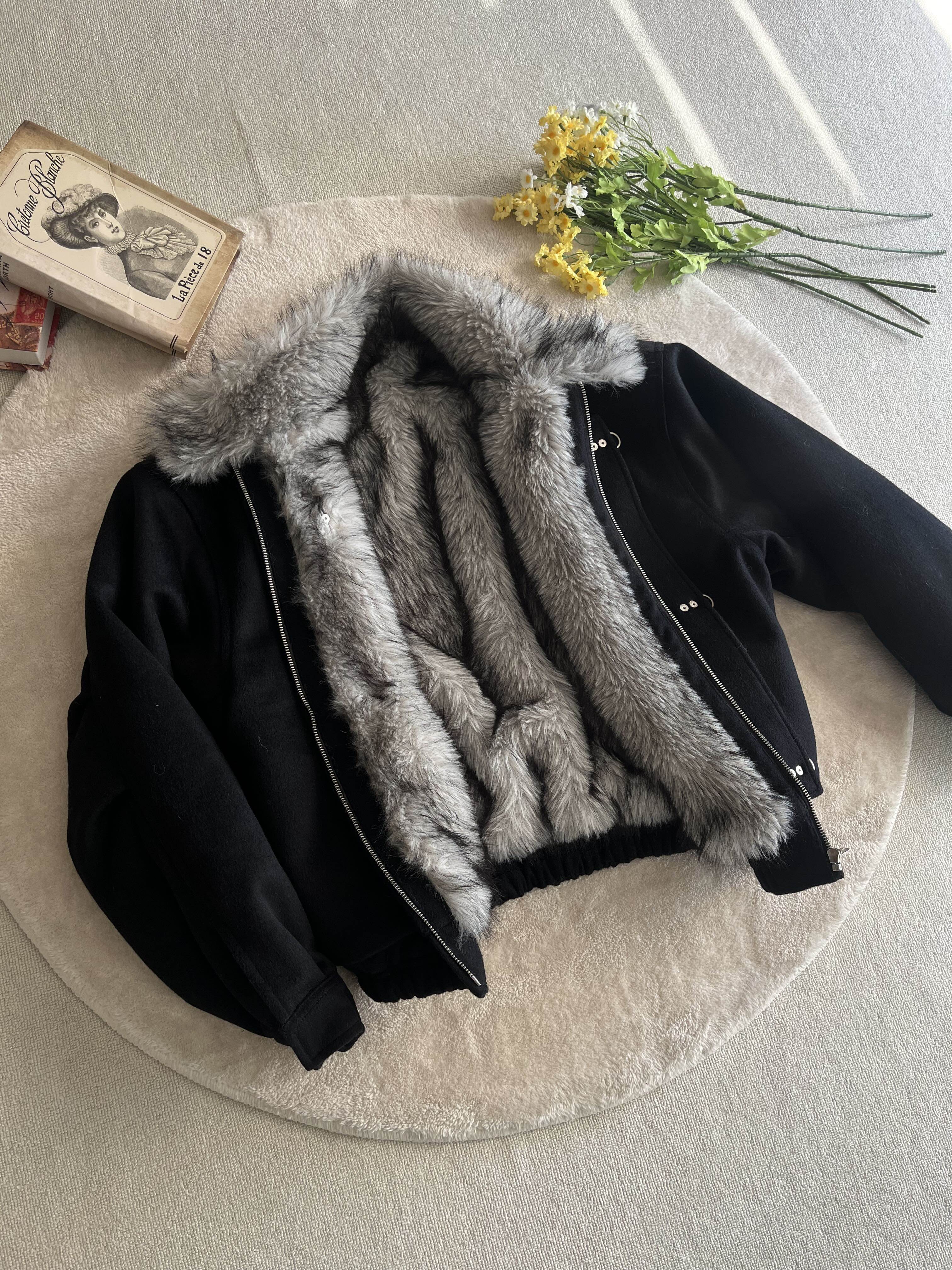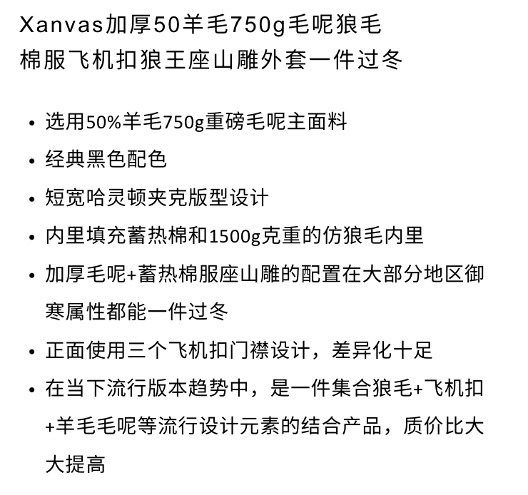 Xanvas Thickened 50% Wool 750g Woolen Wolf Fur Cotton Coat with Snap Buttons, Wolf King Seat Mountain Eagle Jacket for Winter