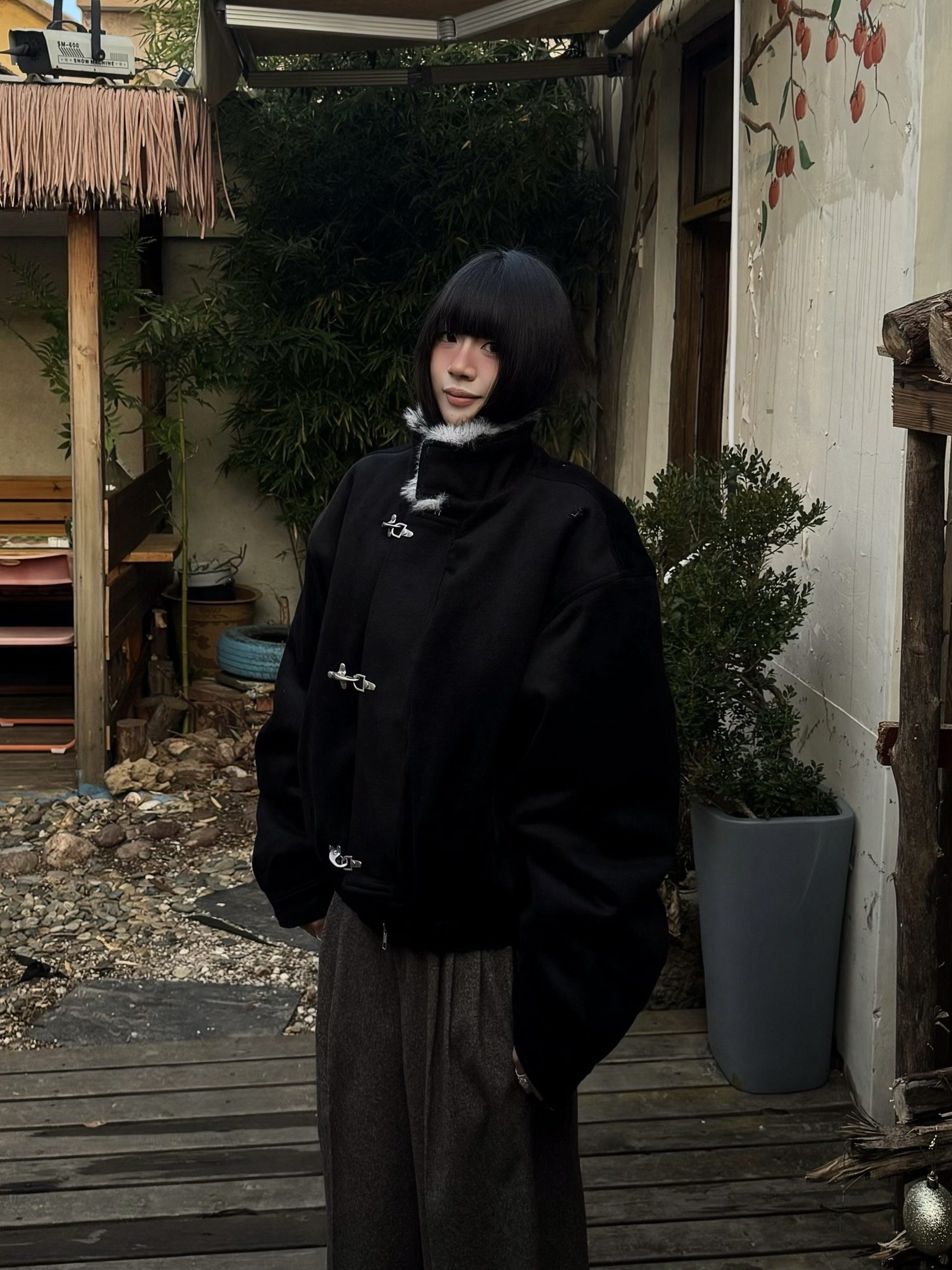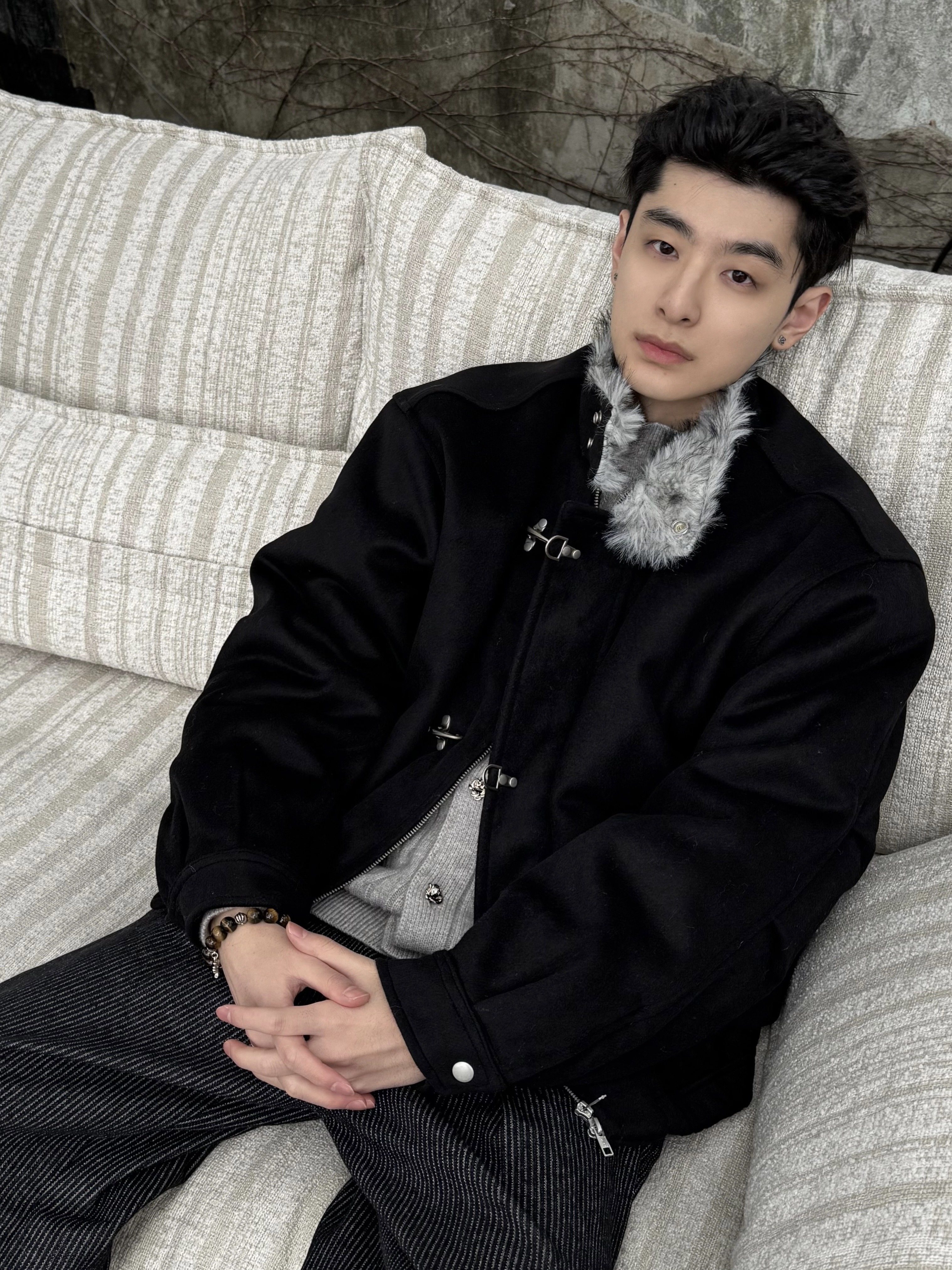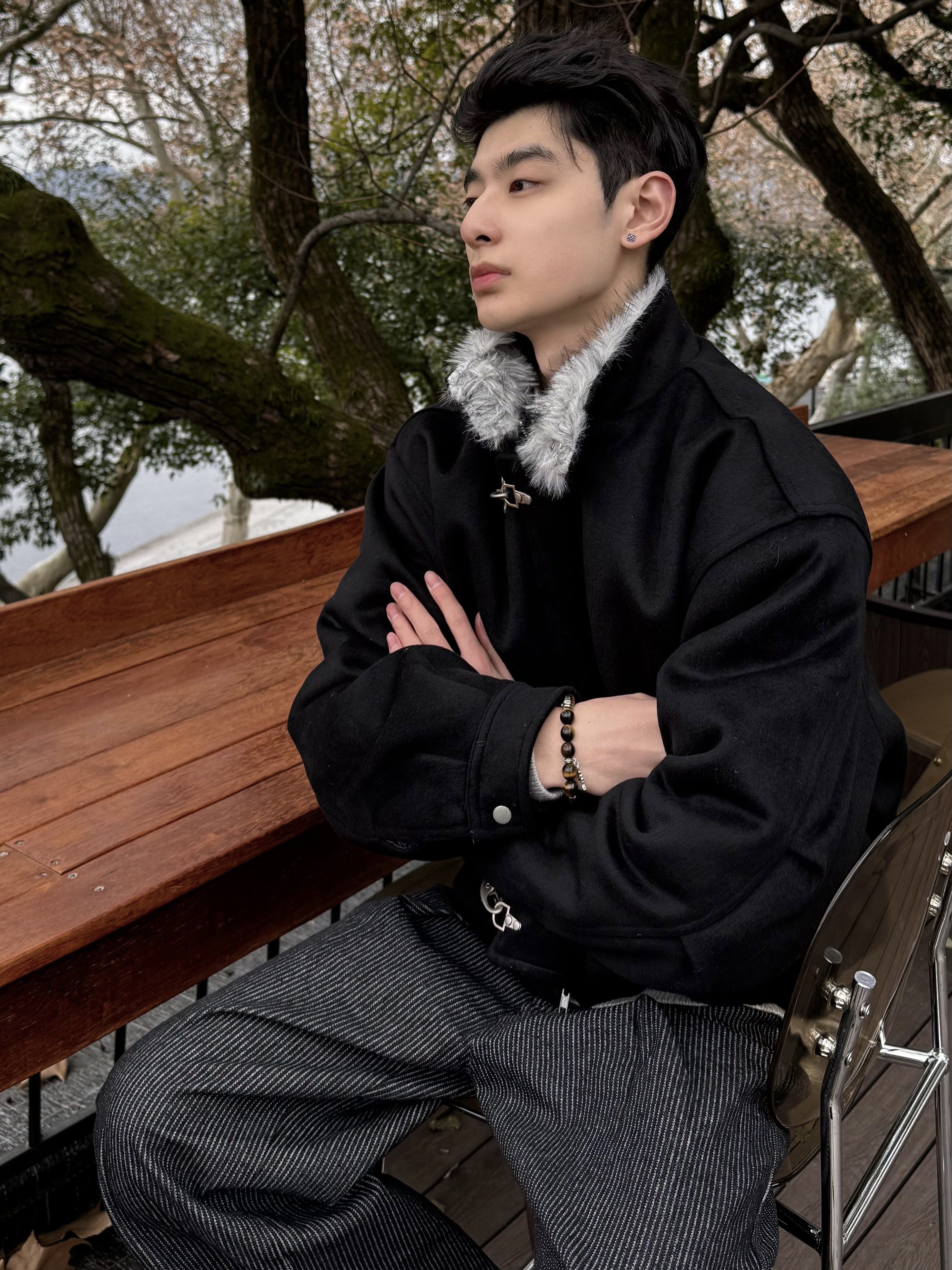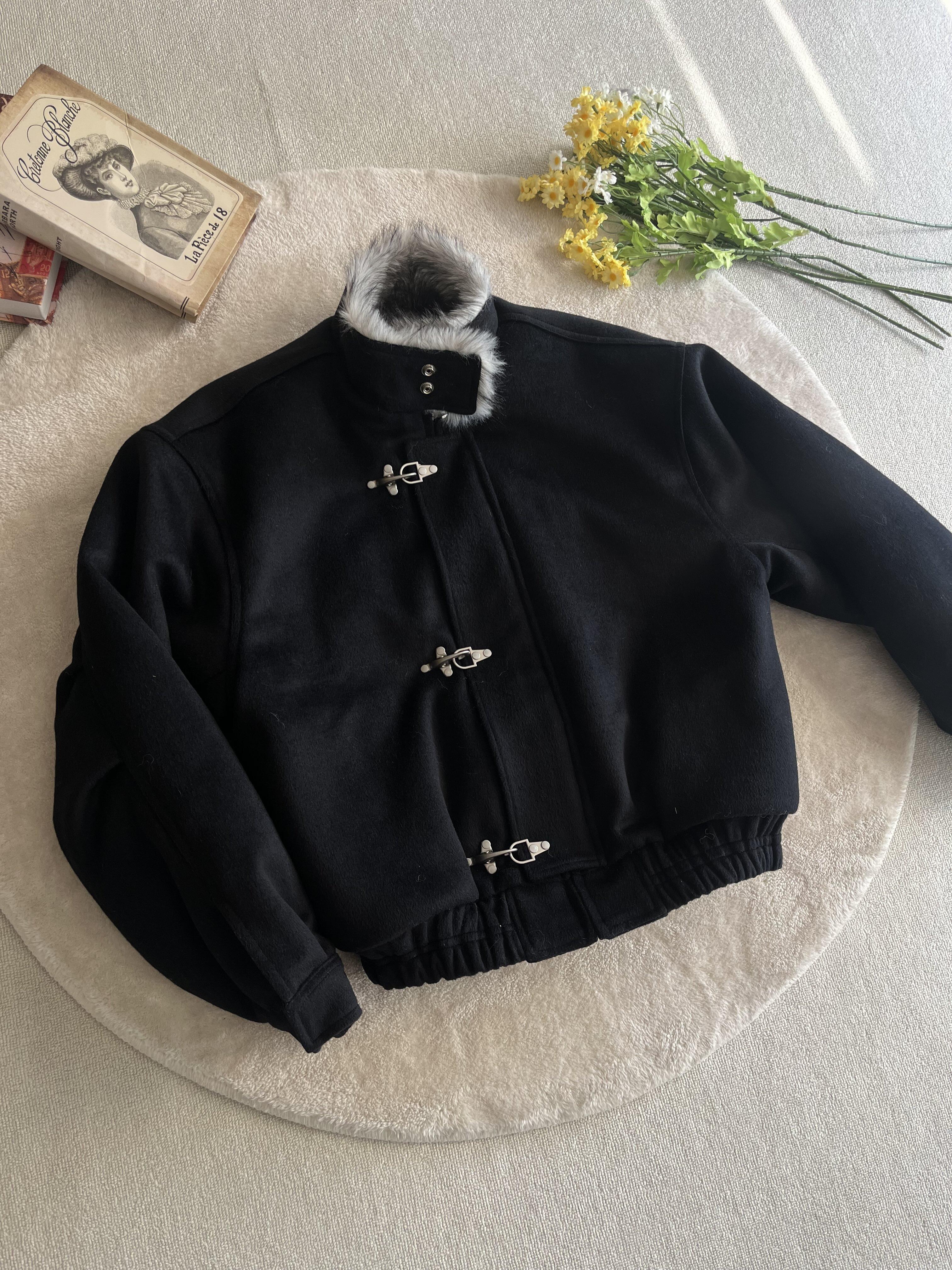 Xanvas Thickened 50% Wool 750g Woolen Wolf Fur Cotton Coat with Snap Buttons, Wolf King Seat Mountain Eagle Jacket for Winter