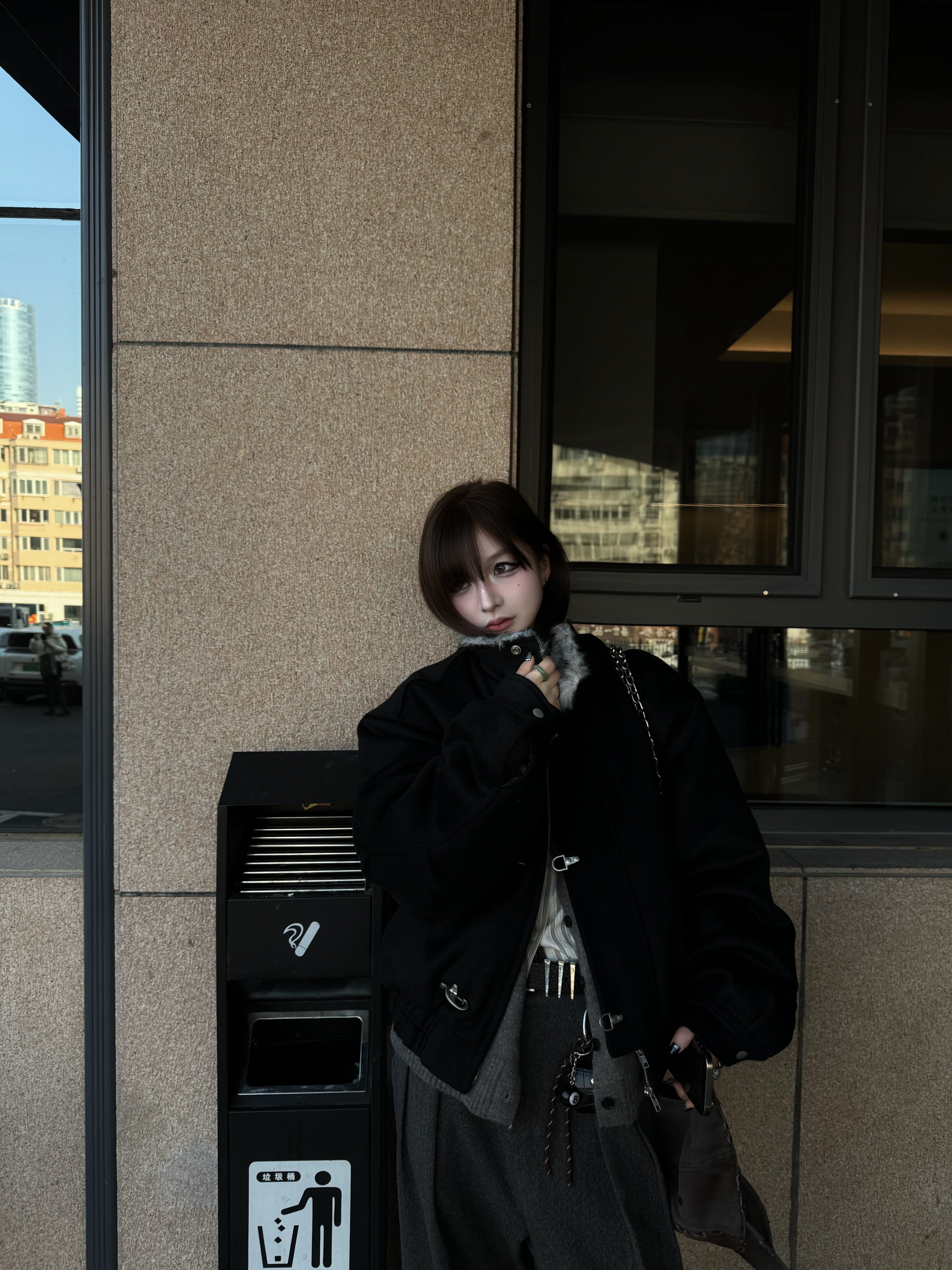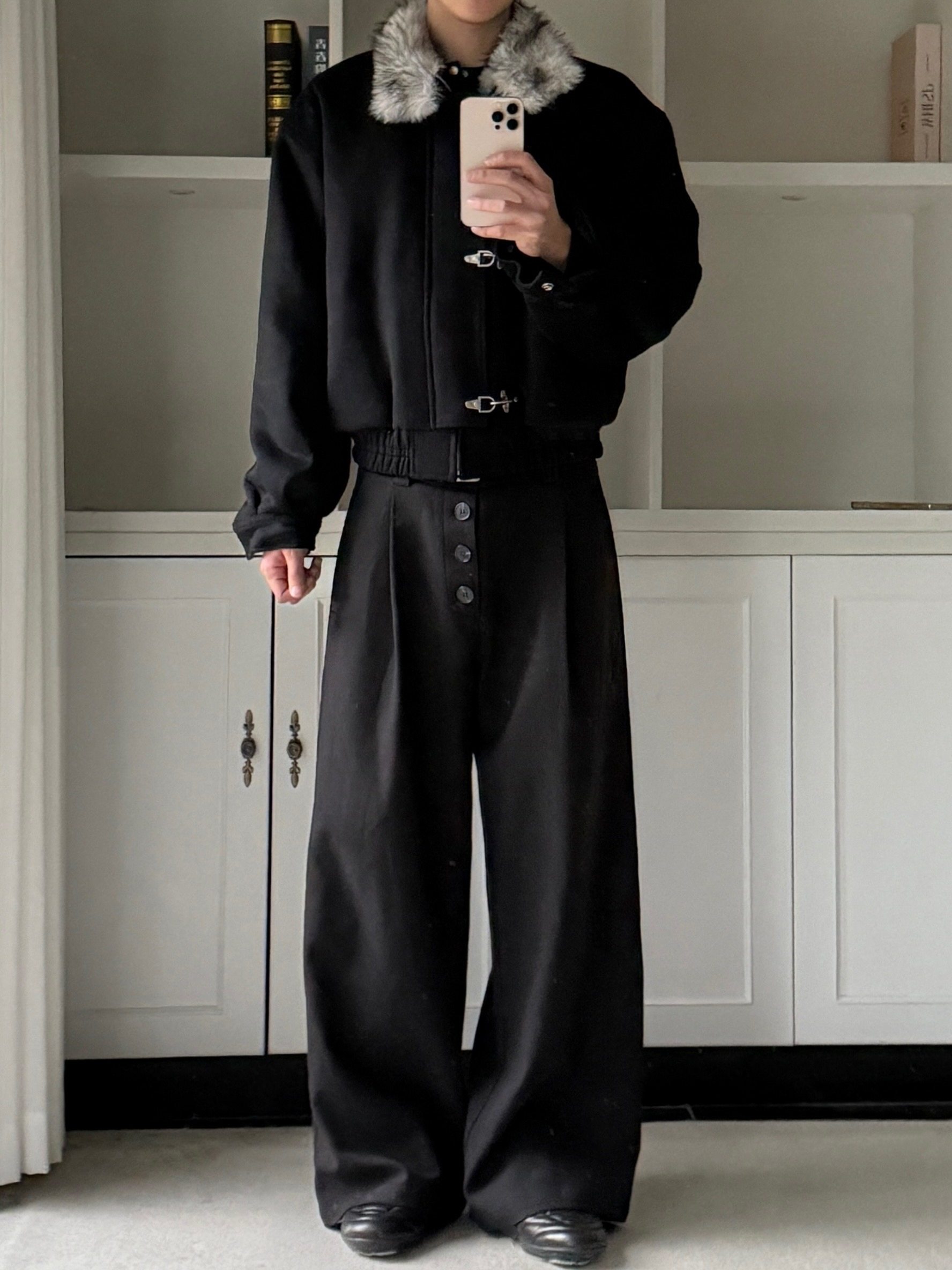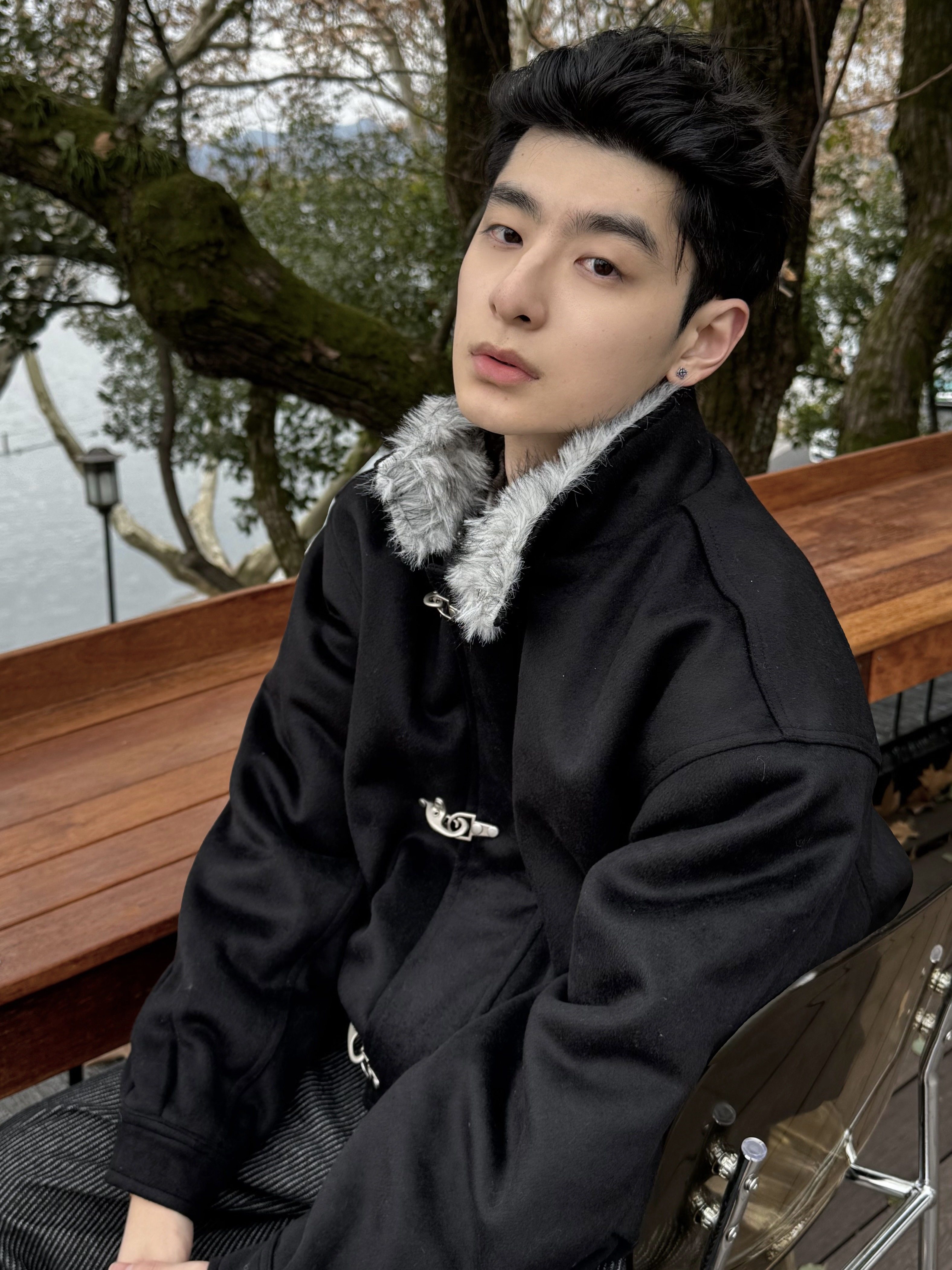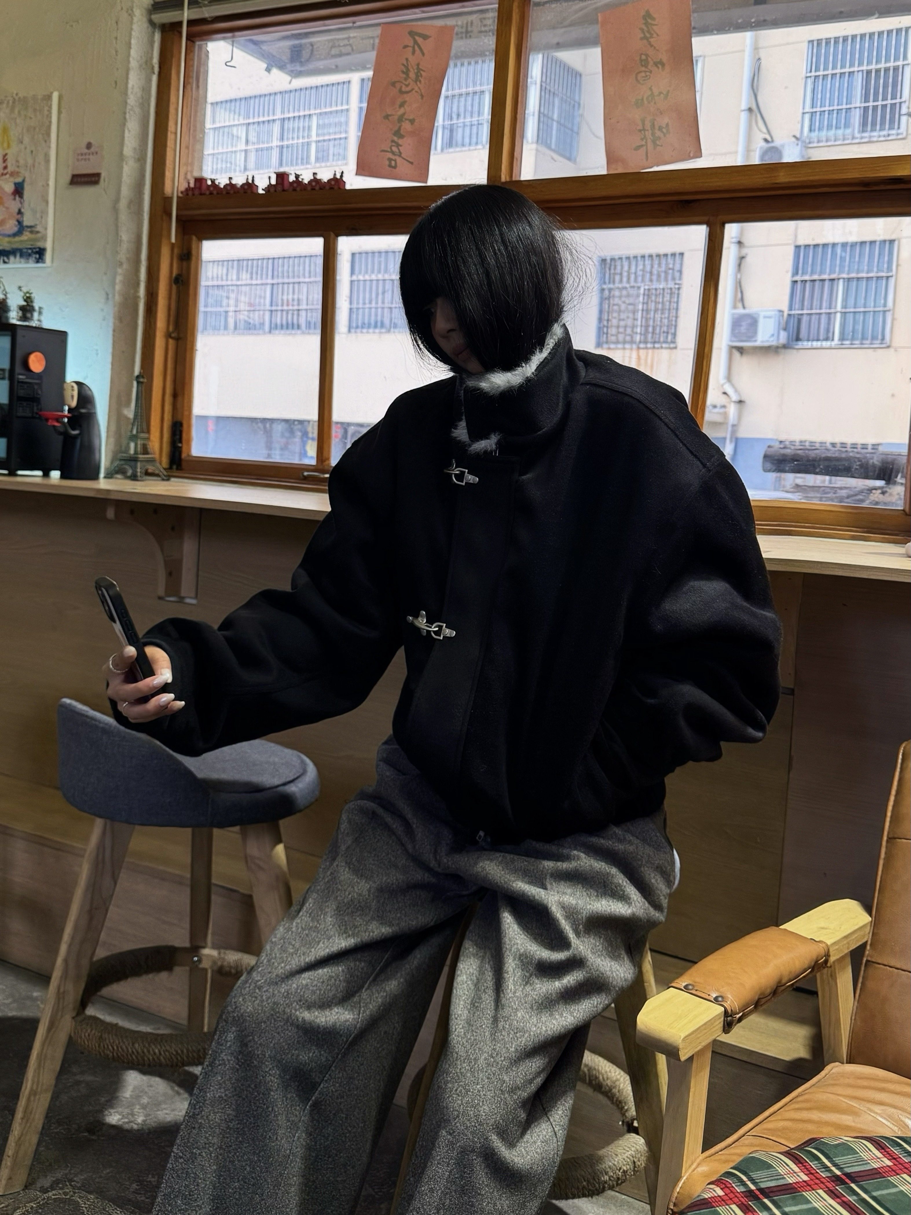 Xanvas Thickened 50% Wool 750g Woolen Wolf Fur Cotton Coat with Snap Buttons, Wolf King Seat Mountain Eagle Jacket for Winter