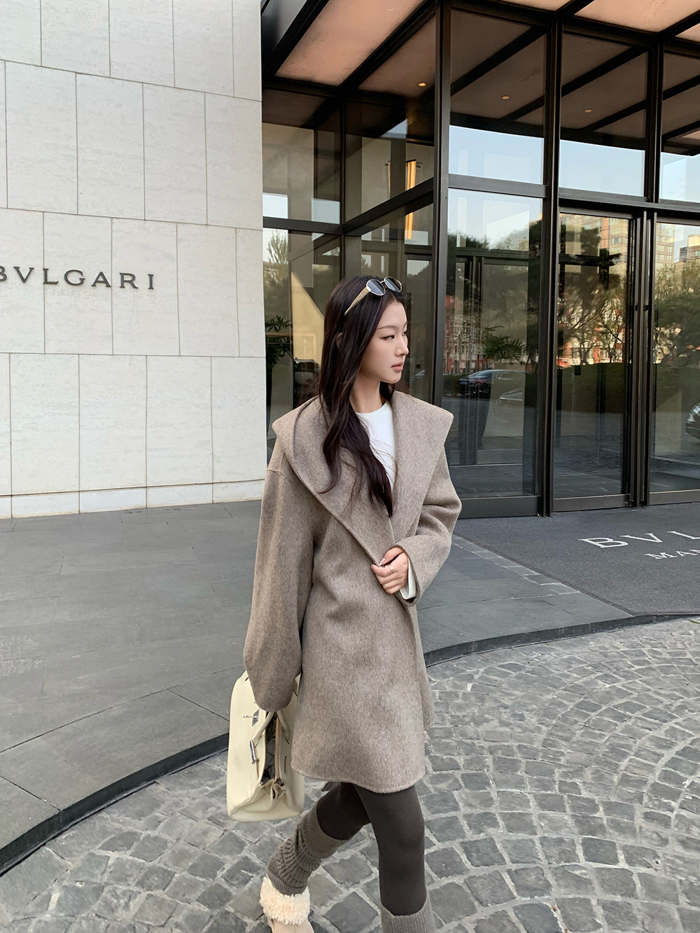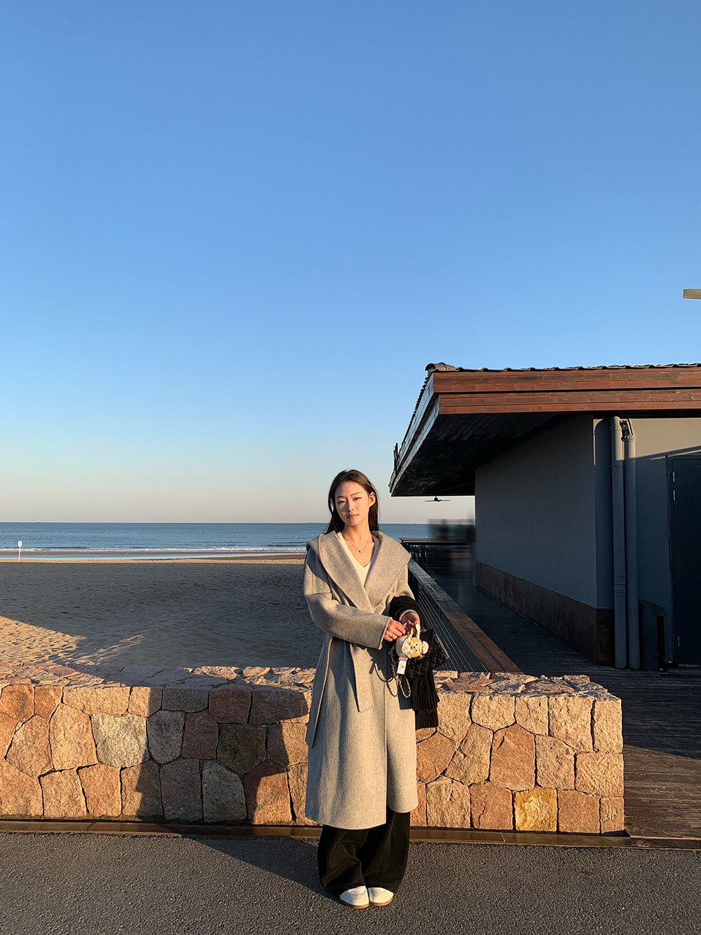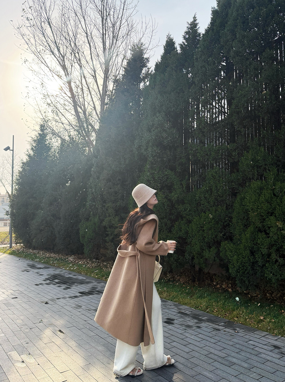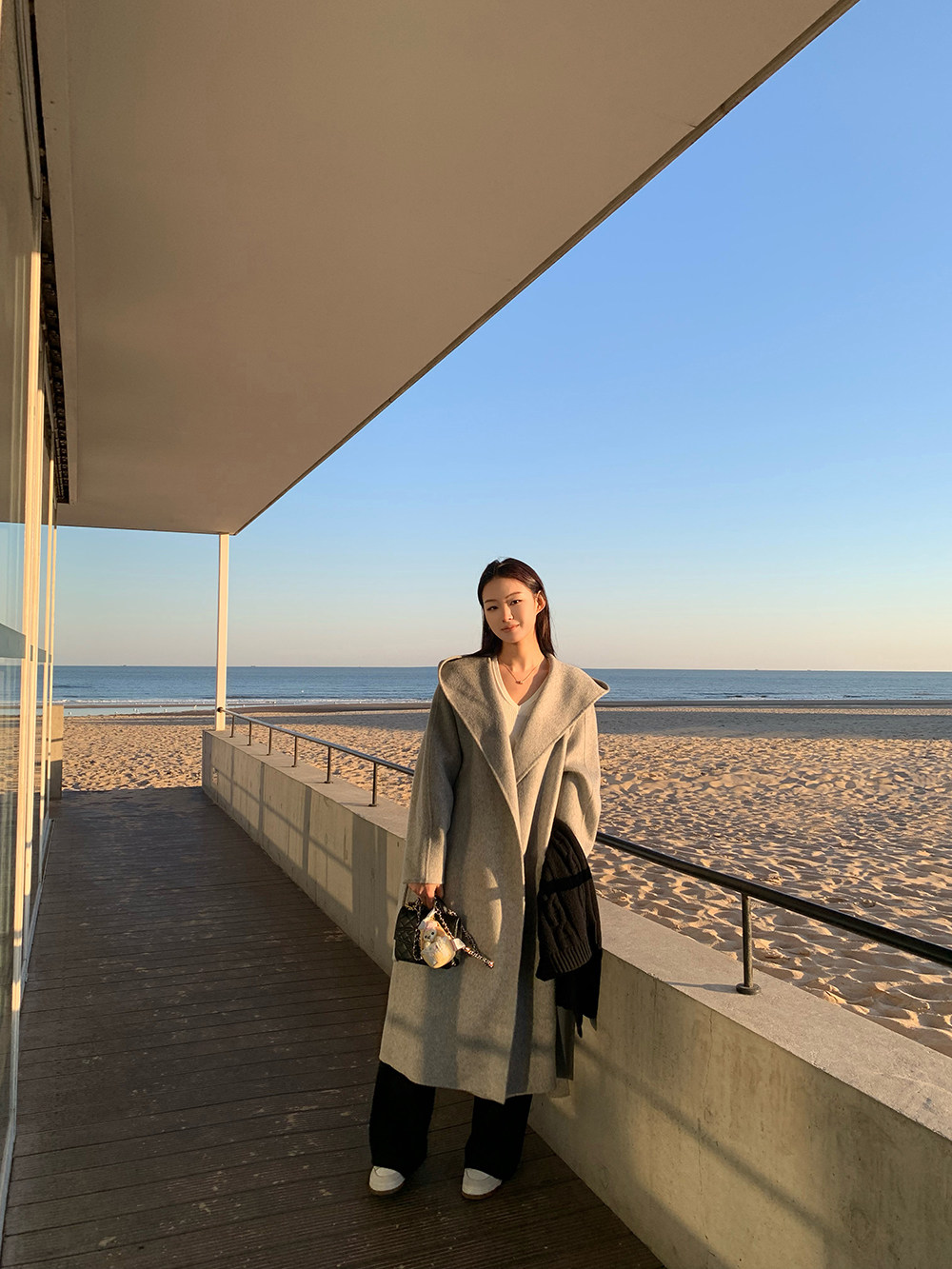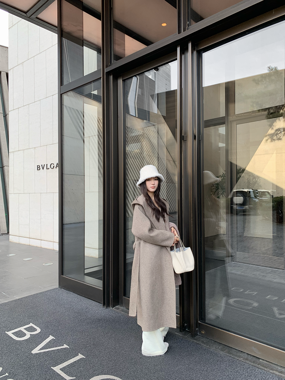5Werkwen Minimalist the R*W Color-Added Hooded Wool Oversized Double-Sided Wool Coat