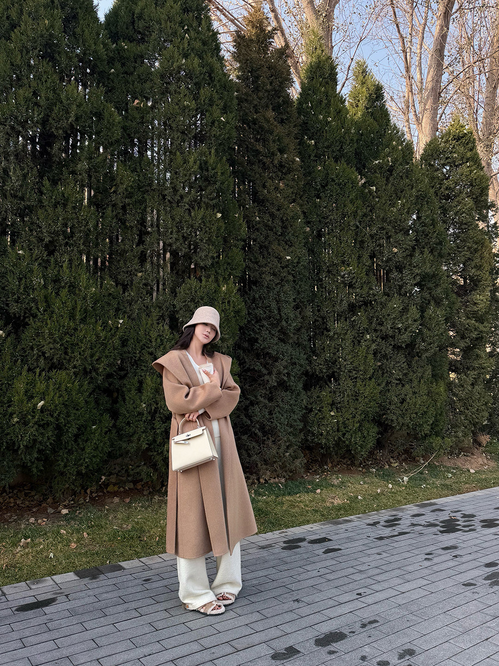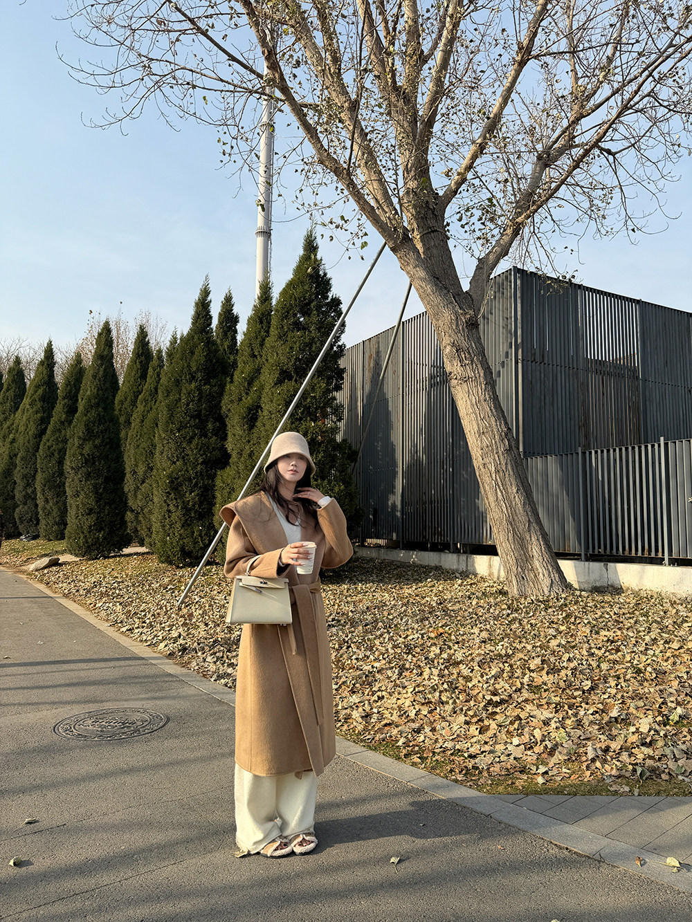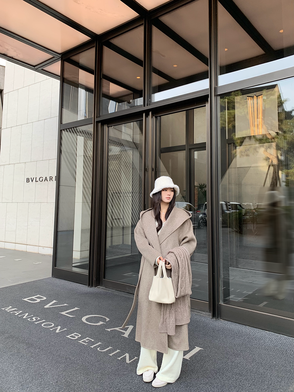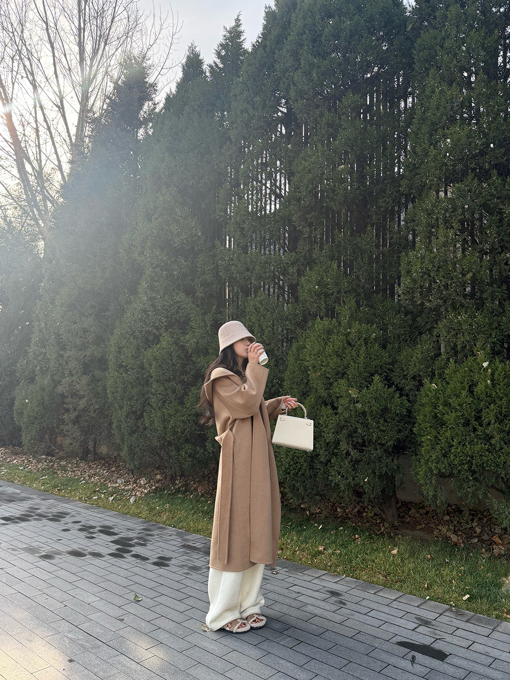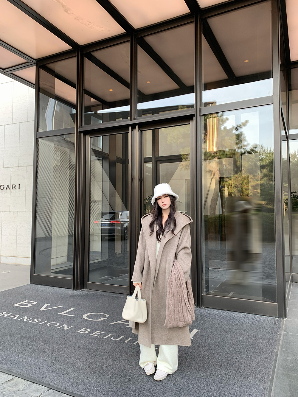 5Werkwen Minimalist the R*W Color-Added Hooded Wool Oversized Double-Sided Wool Coat