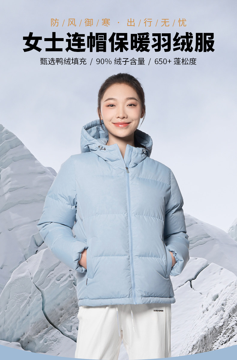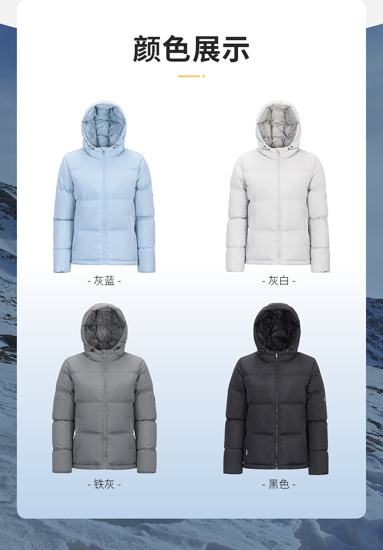 Black Ice Winter 650 Fill Power Women's Casual Short Duck down Hooded down Jacket Outdoor Thickened Warm down Jacket 8956