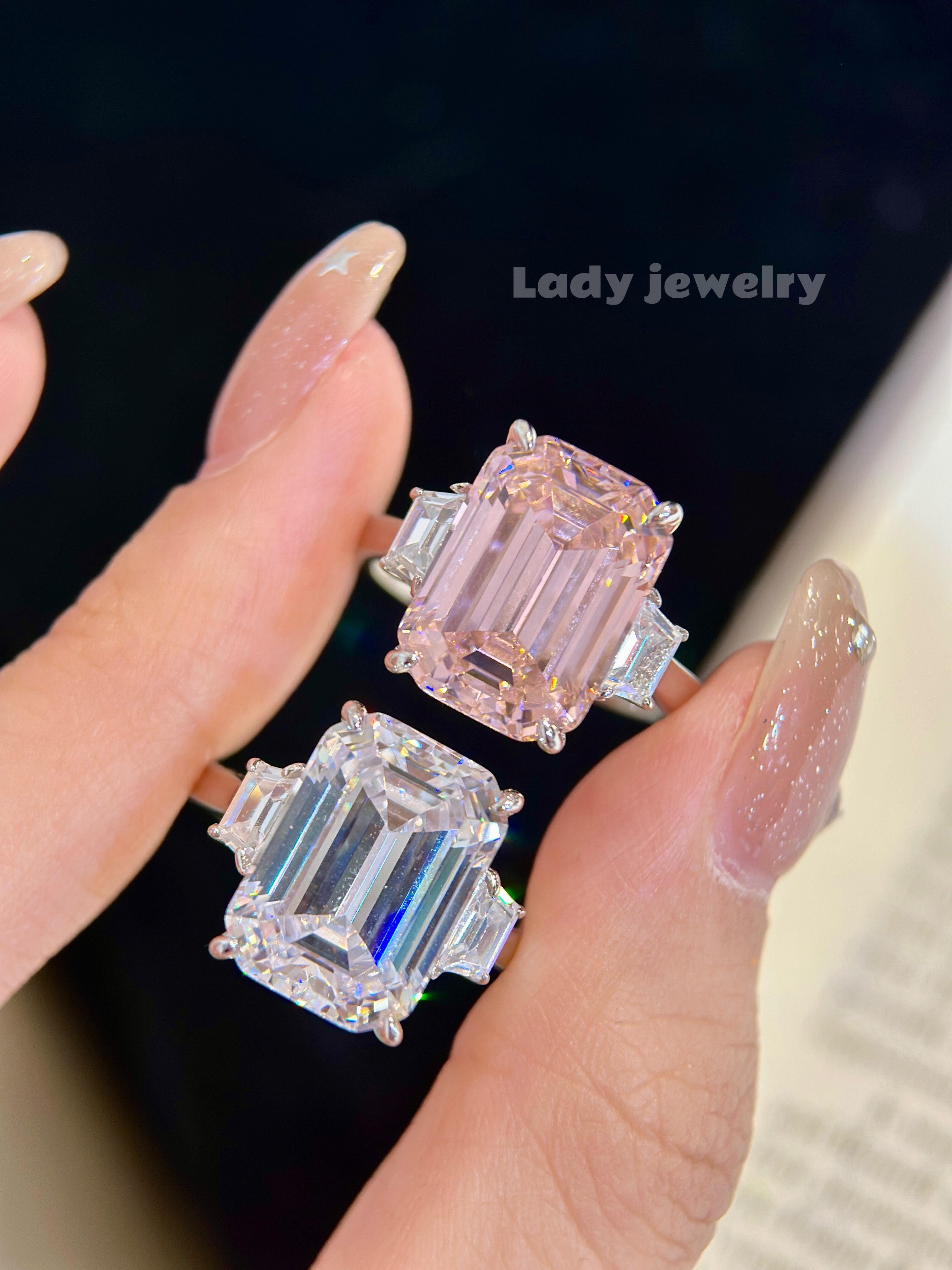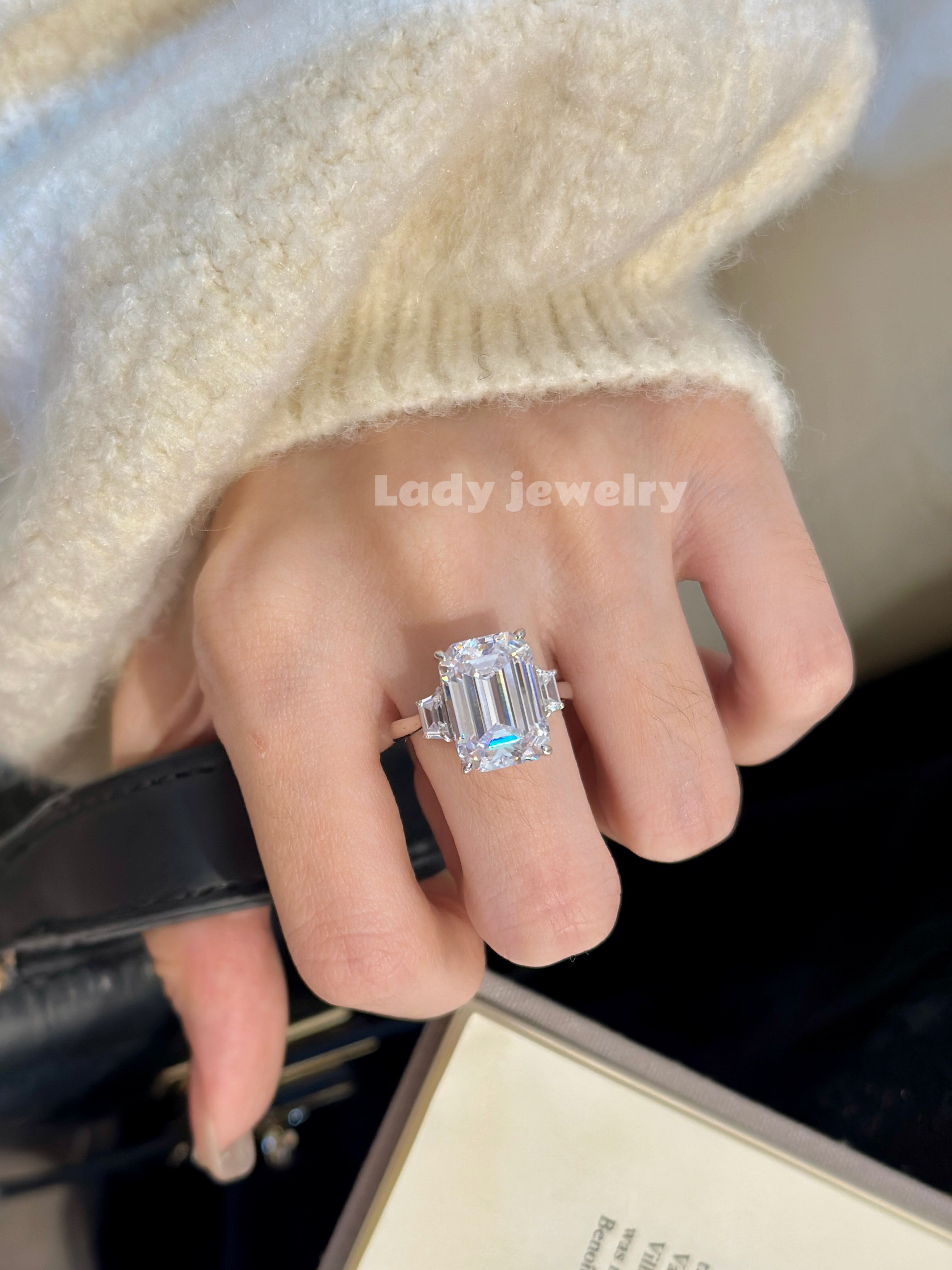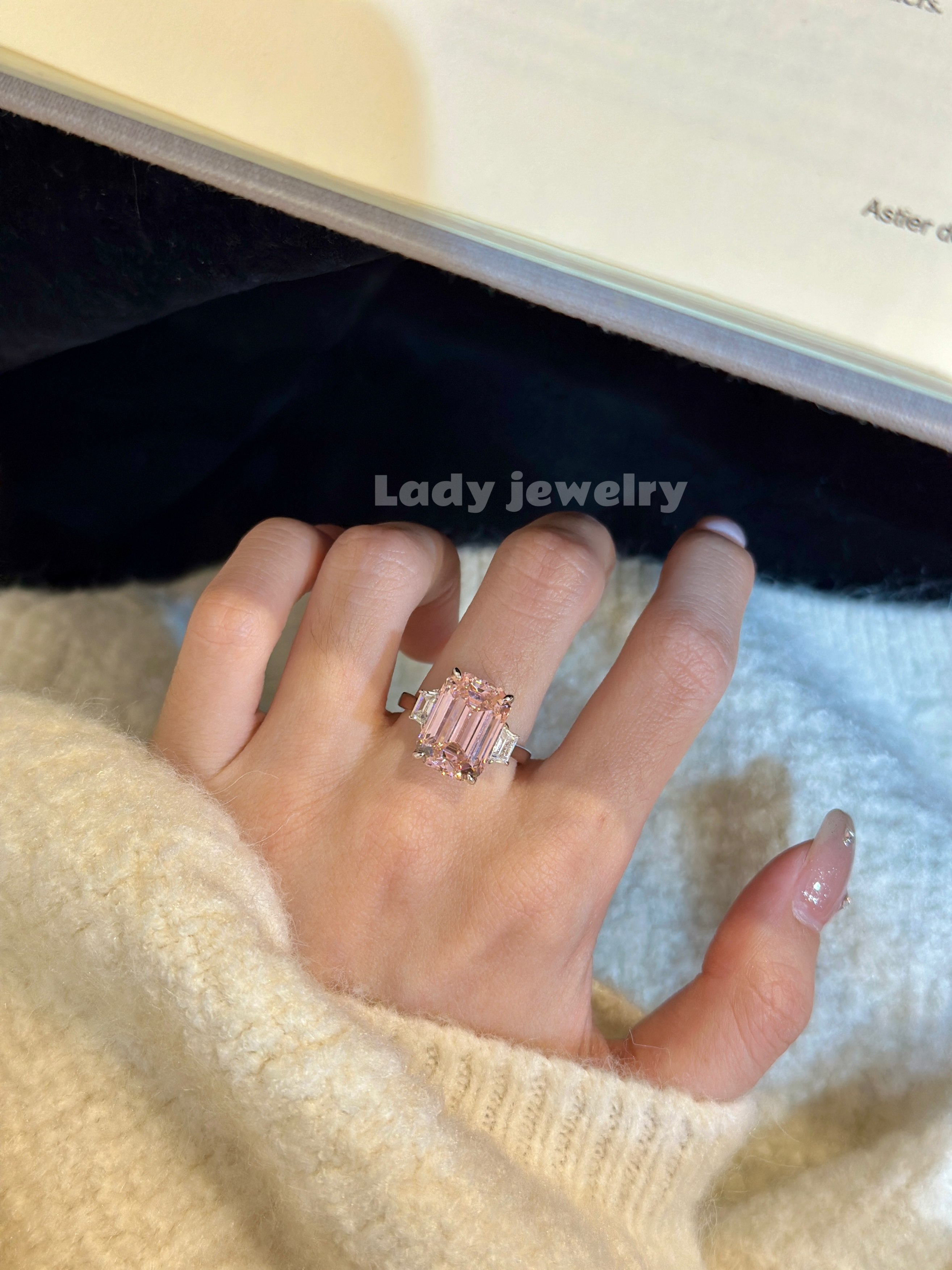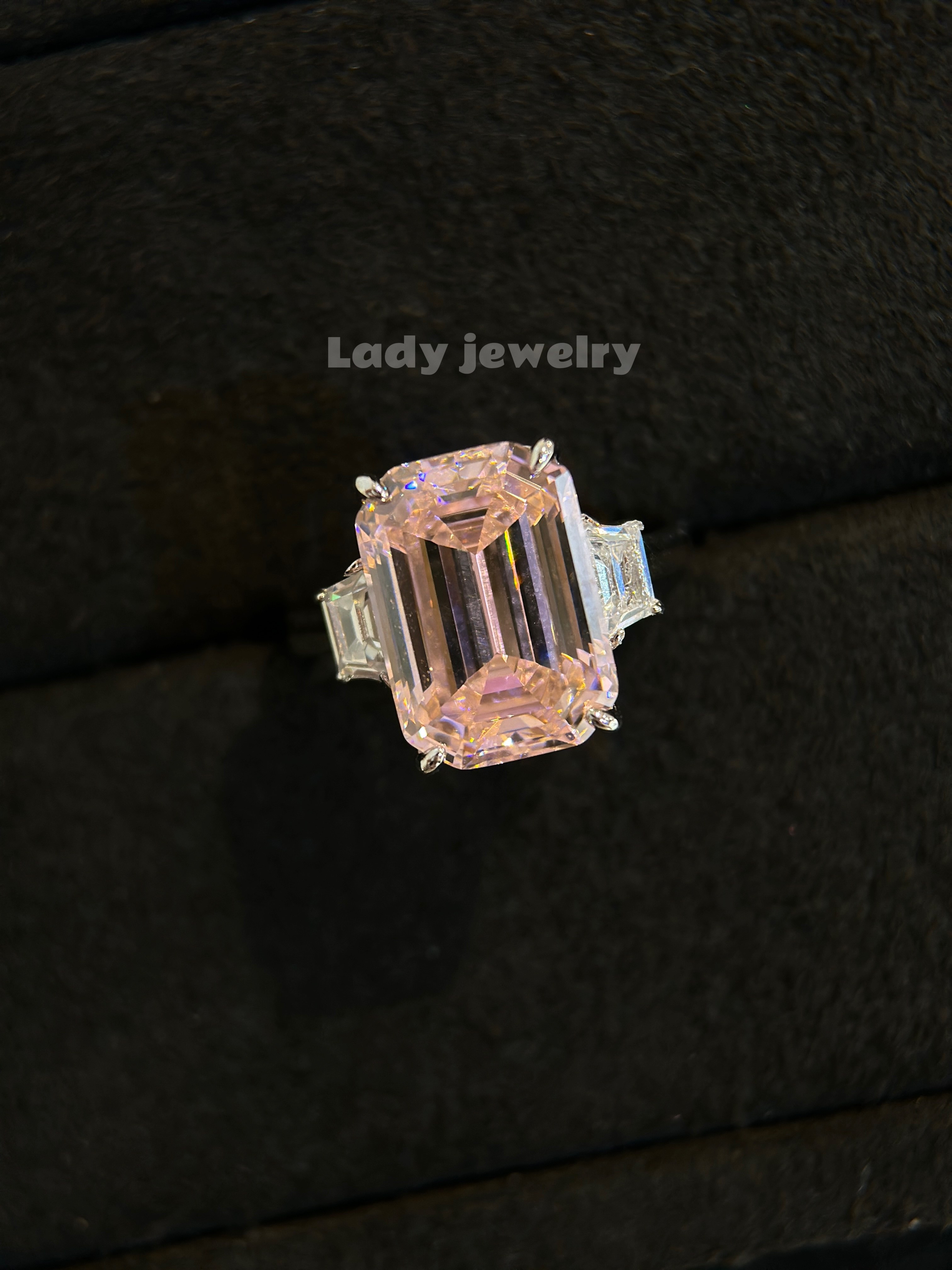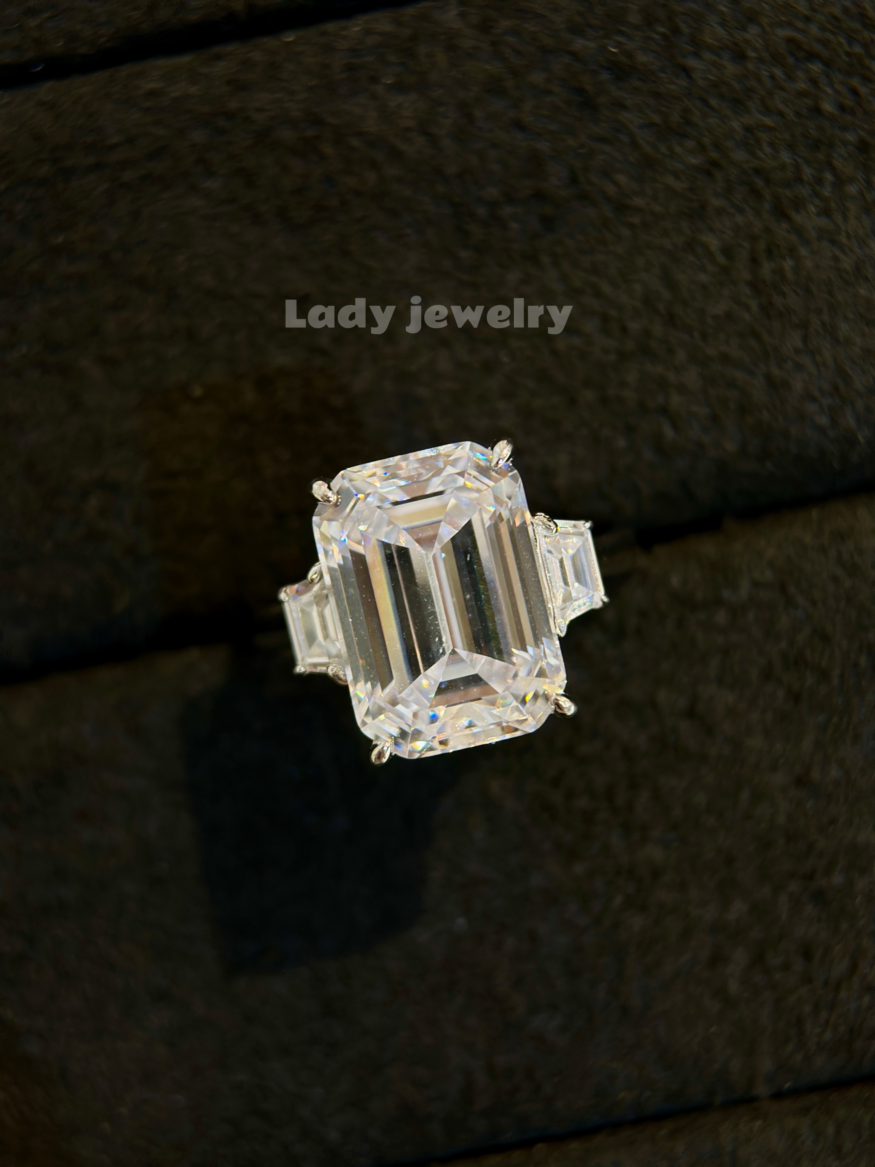 Lady's Ring with a Brilliant Square-Cut Diamond in the Shape of a Pagoda, Featuring a Light Luxury Style, Made of S925 Gold-Plated Material for Women