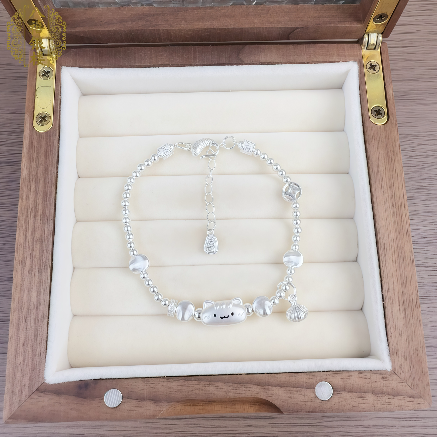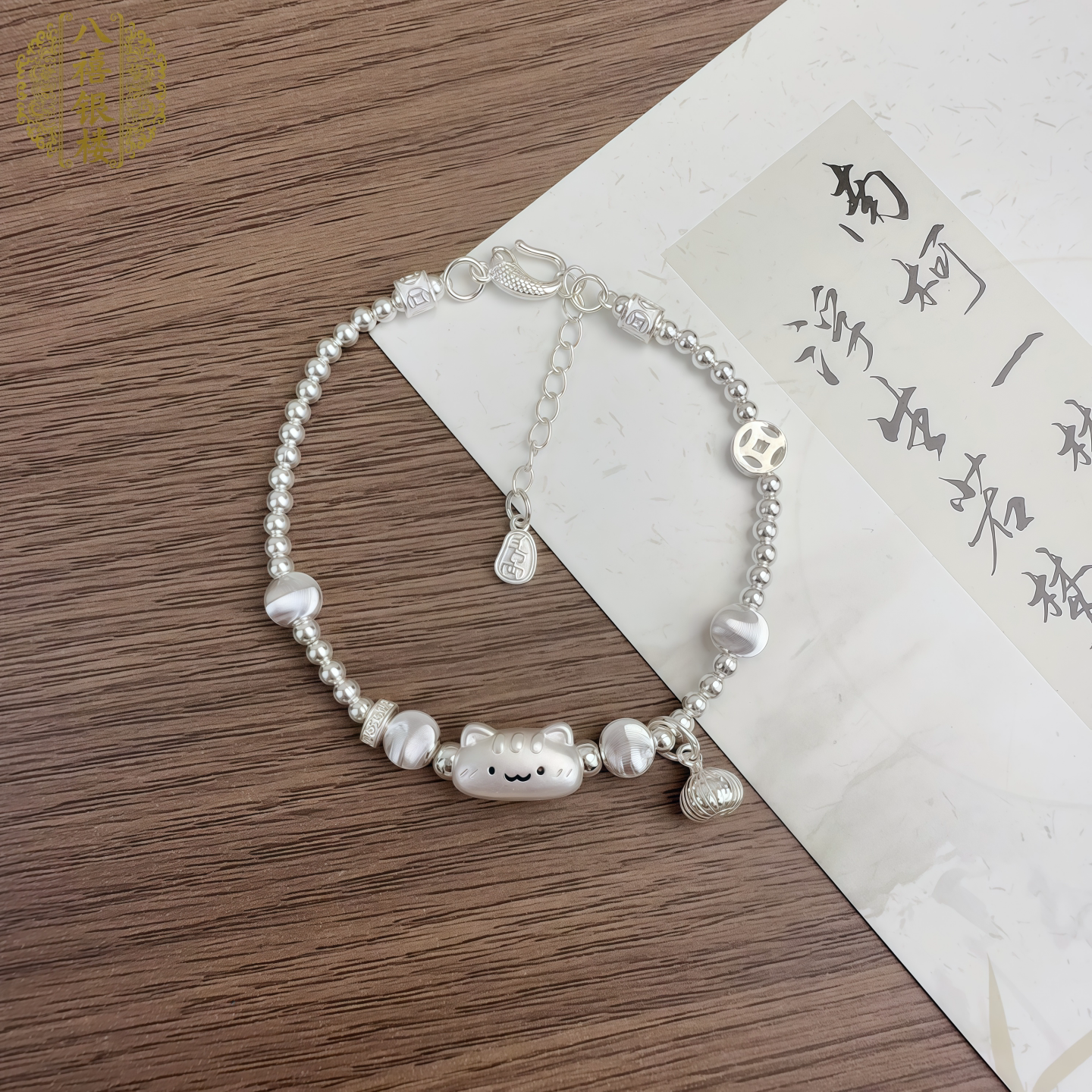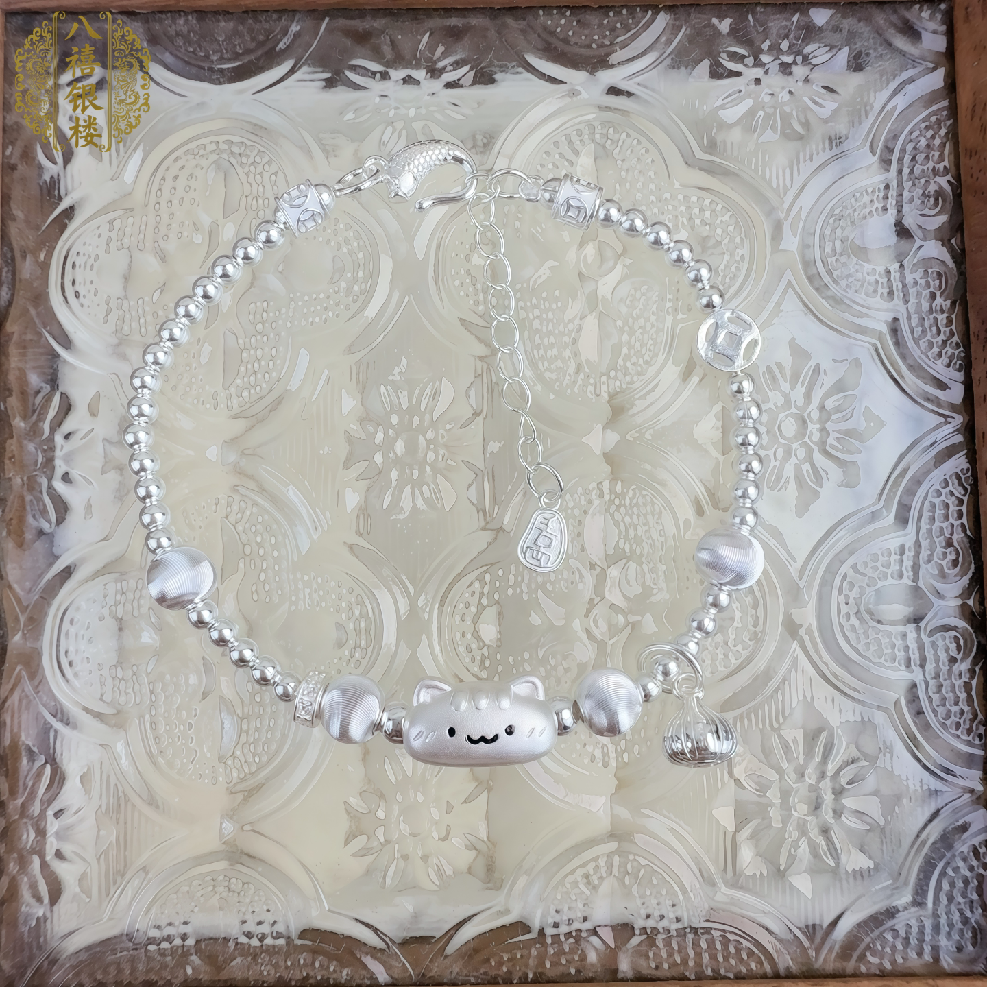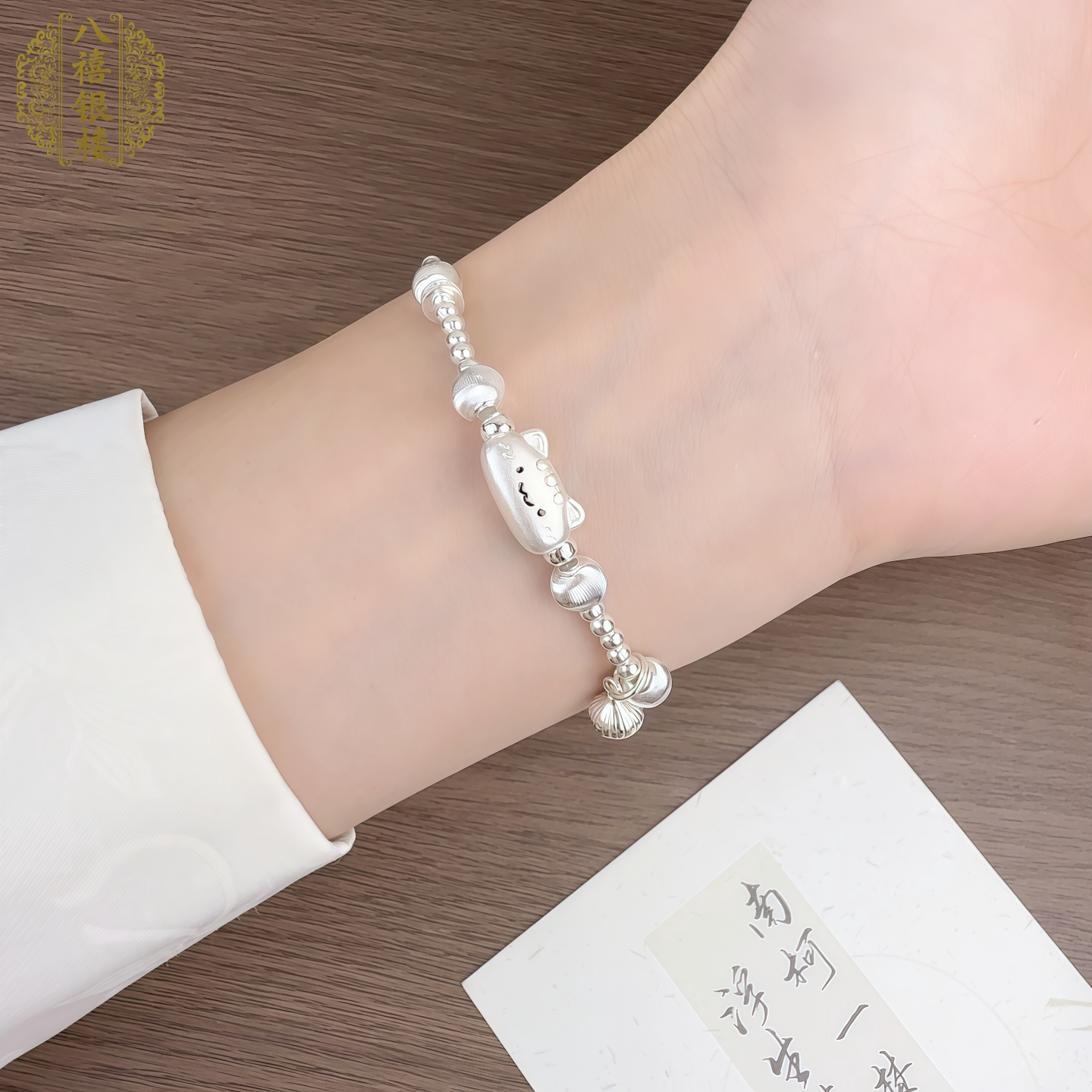 999 Pure Silver Baguette Cat Sterling Silver Bracelet, Antique Matte Finish, Chinese Style, Cute, Delicate, Versatile Bracelet, Gift for Girlfriend