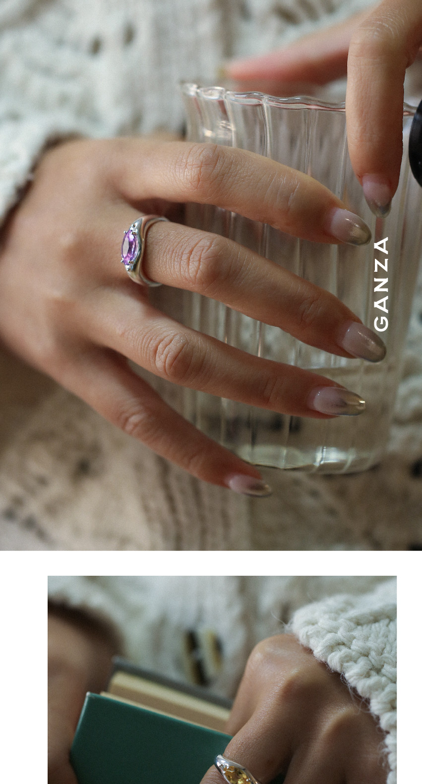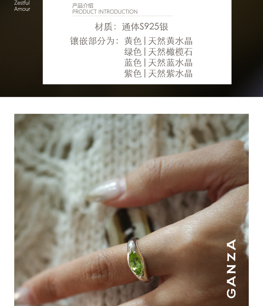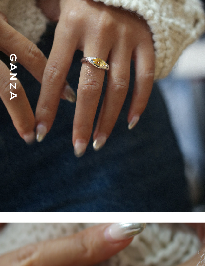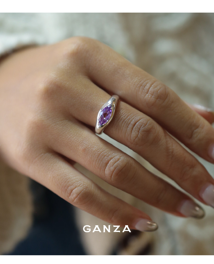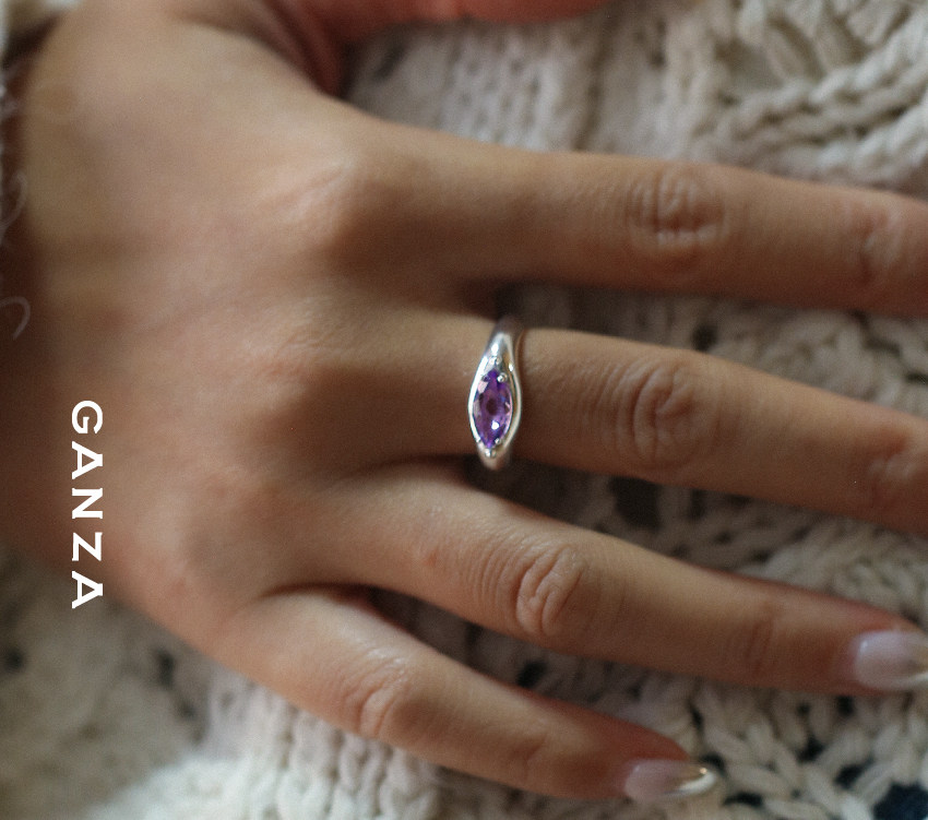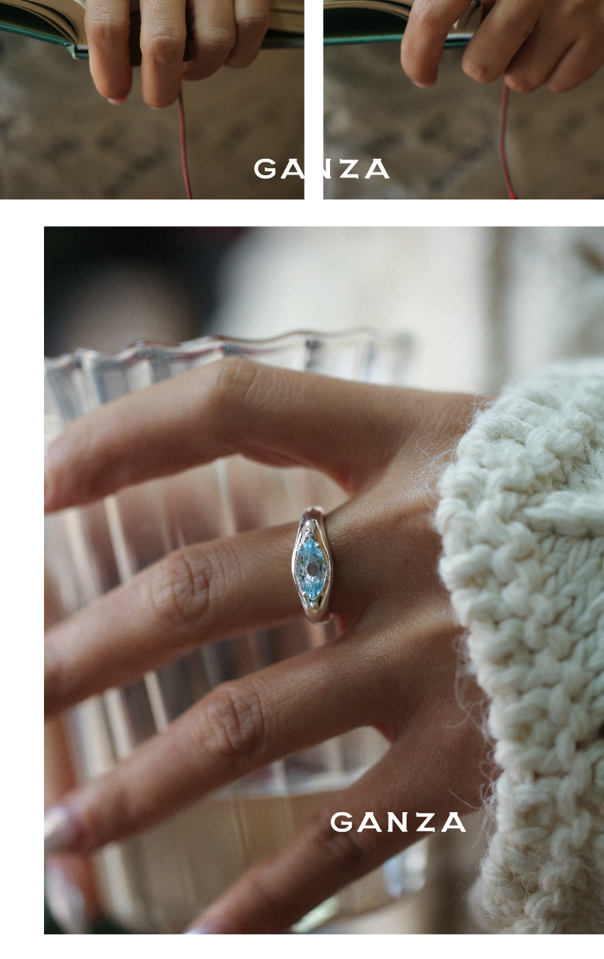 Ganza Original Marquise Crystal Colorful Gemstone Silver Ring for Women, Niche Style, Marquise Shape, S925 Silver Ring