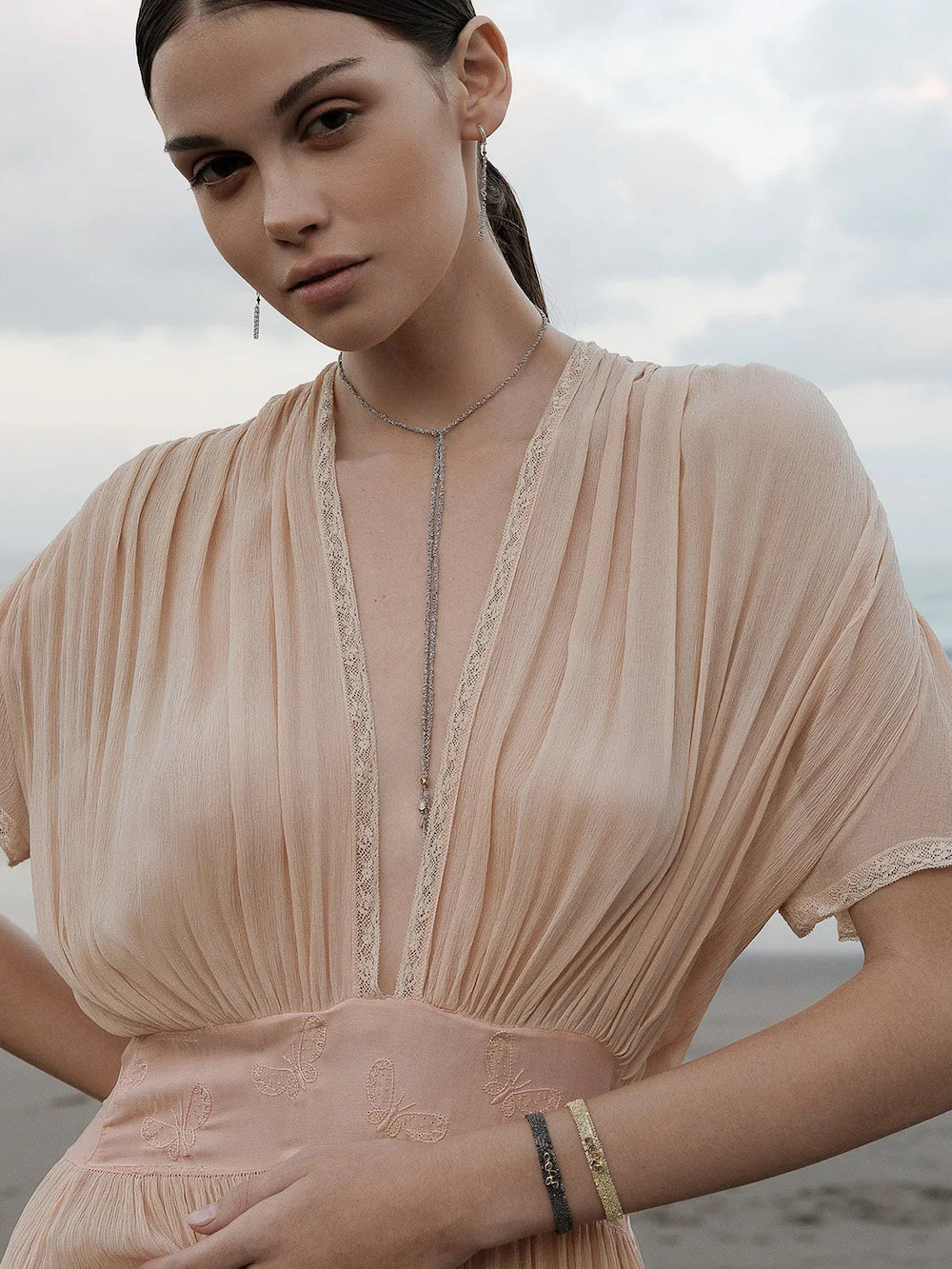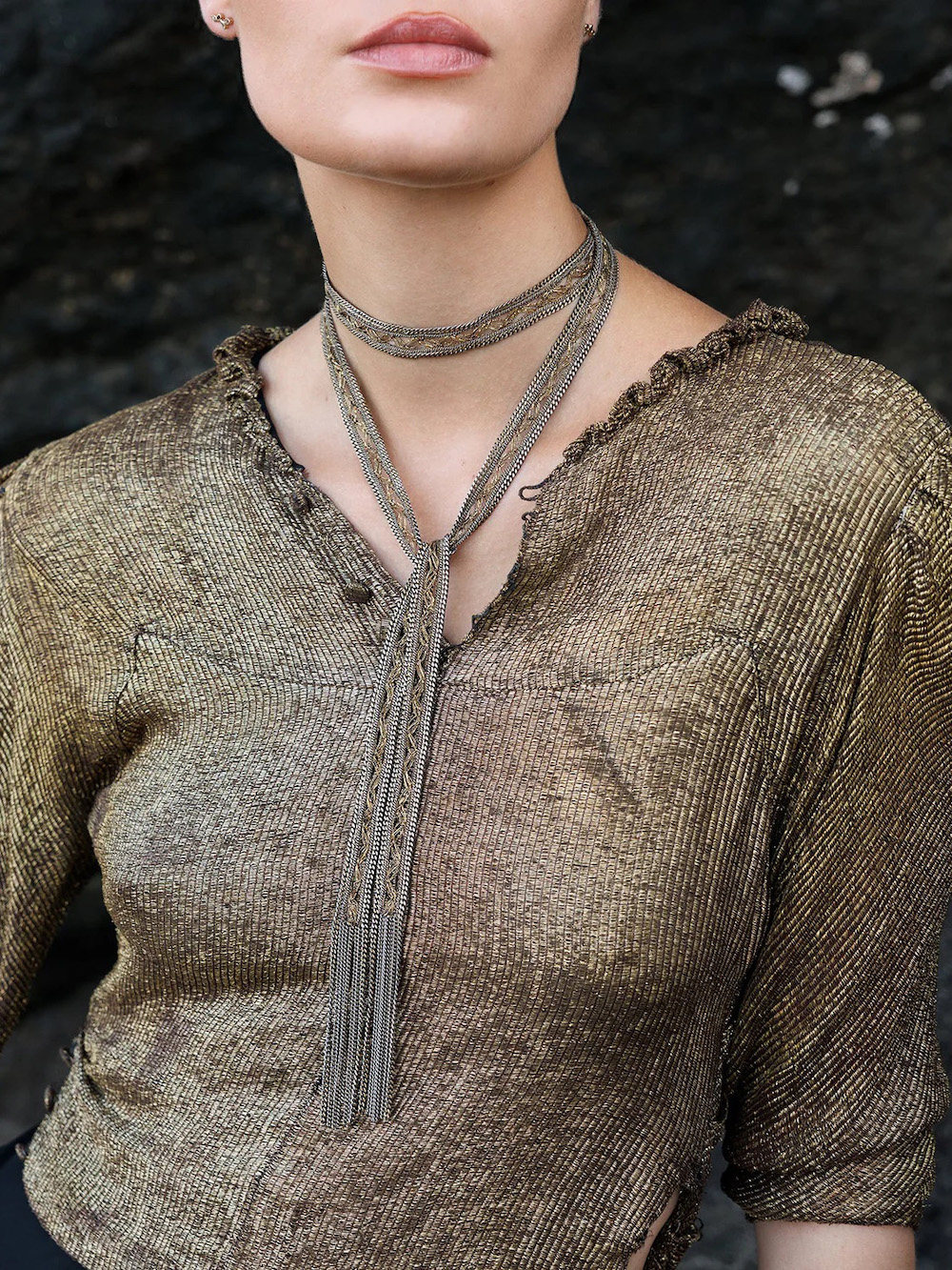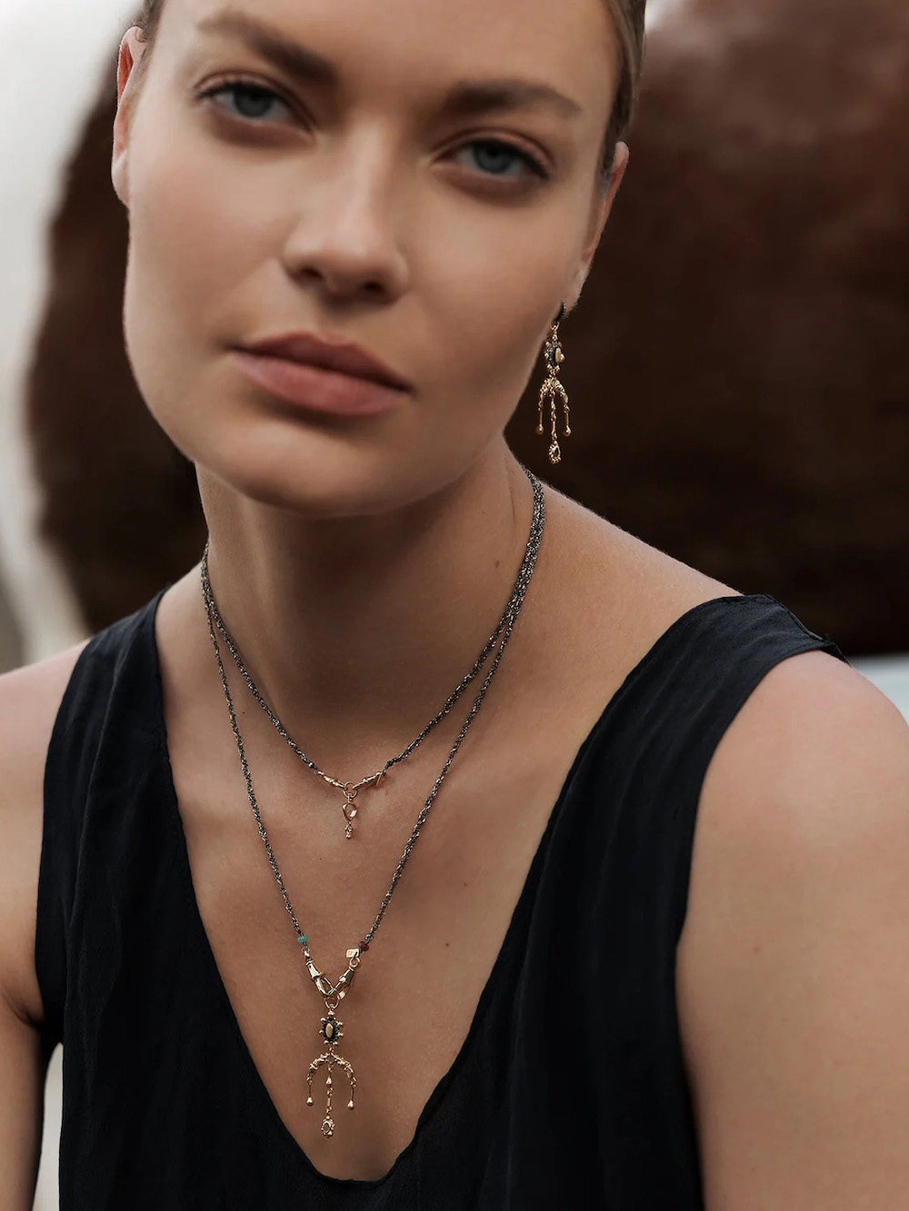 French Marie Laure Chamorel New Diamond Natural Stone Niche Retro Layered Clavicle Chain Necklace