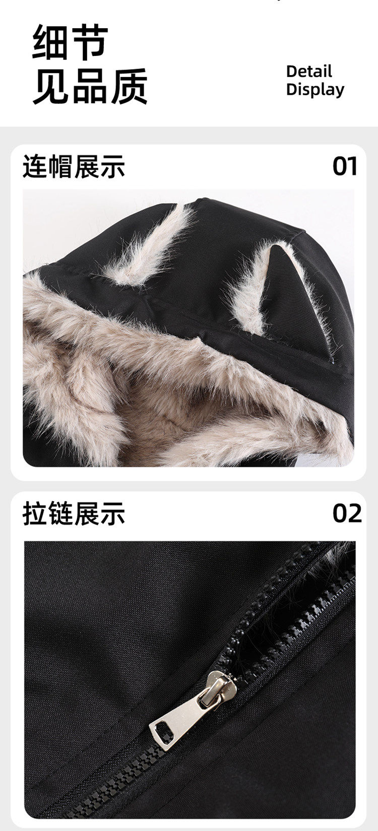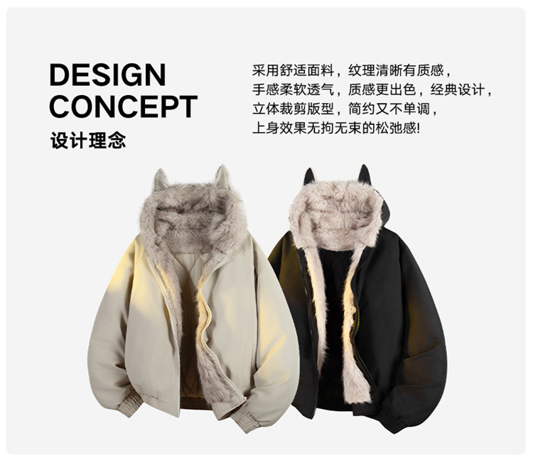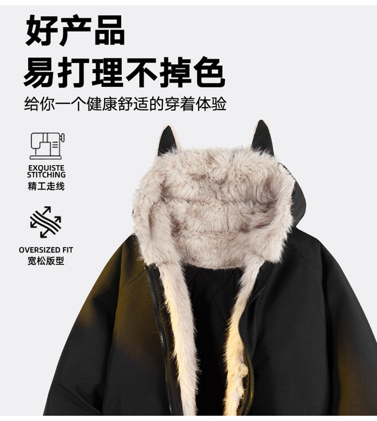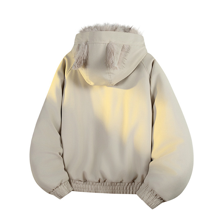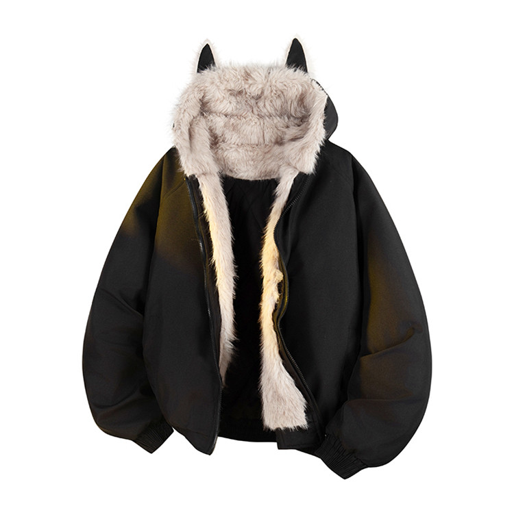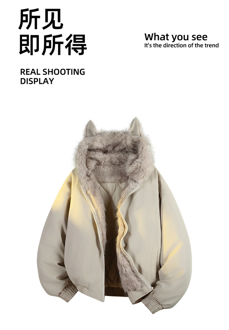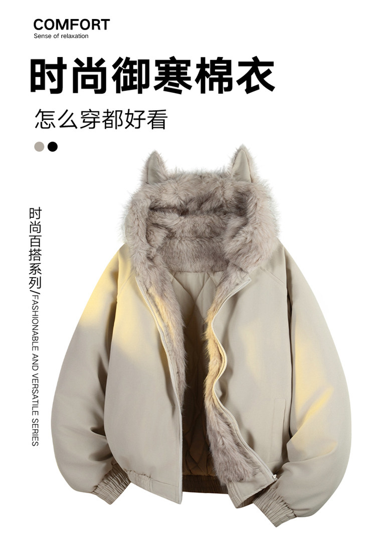 Wassup Tenet American-Style Mountain Carving Cat Ear Fur Collar Cotton Jacket for Men, Winter Thickened Warm Cotton Coat