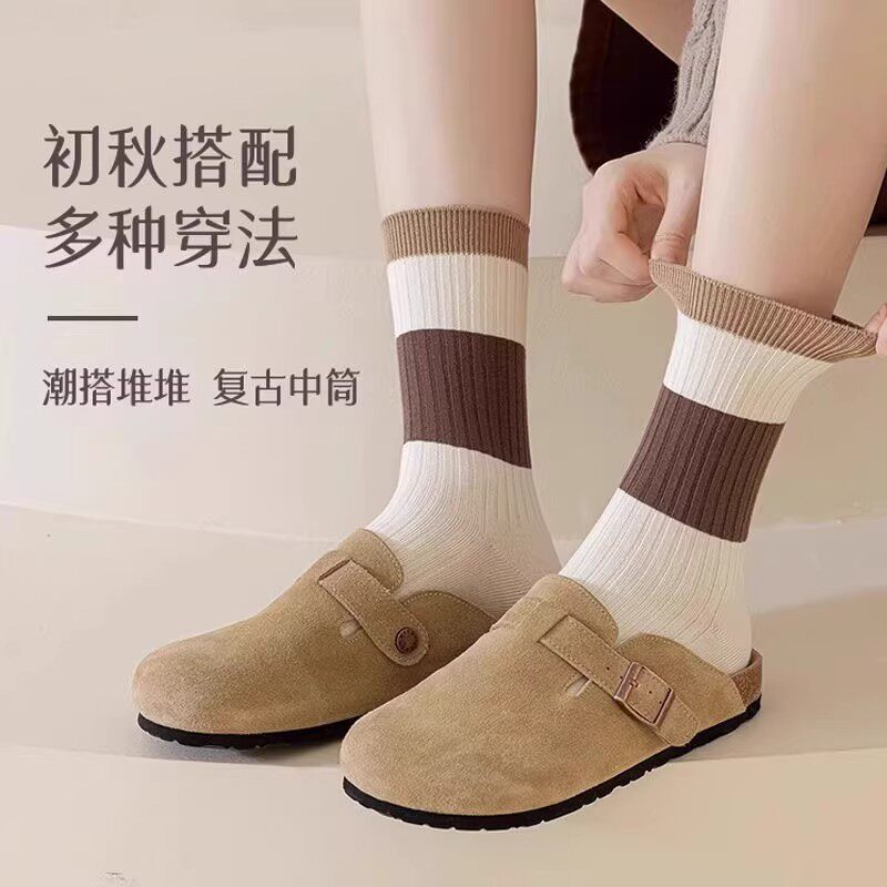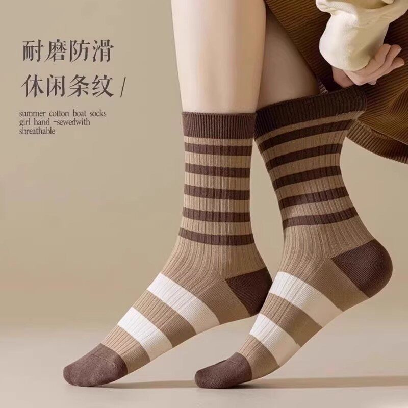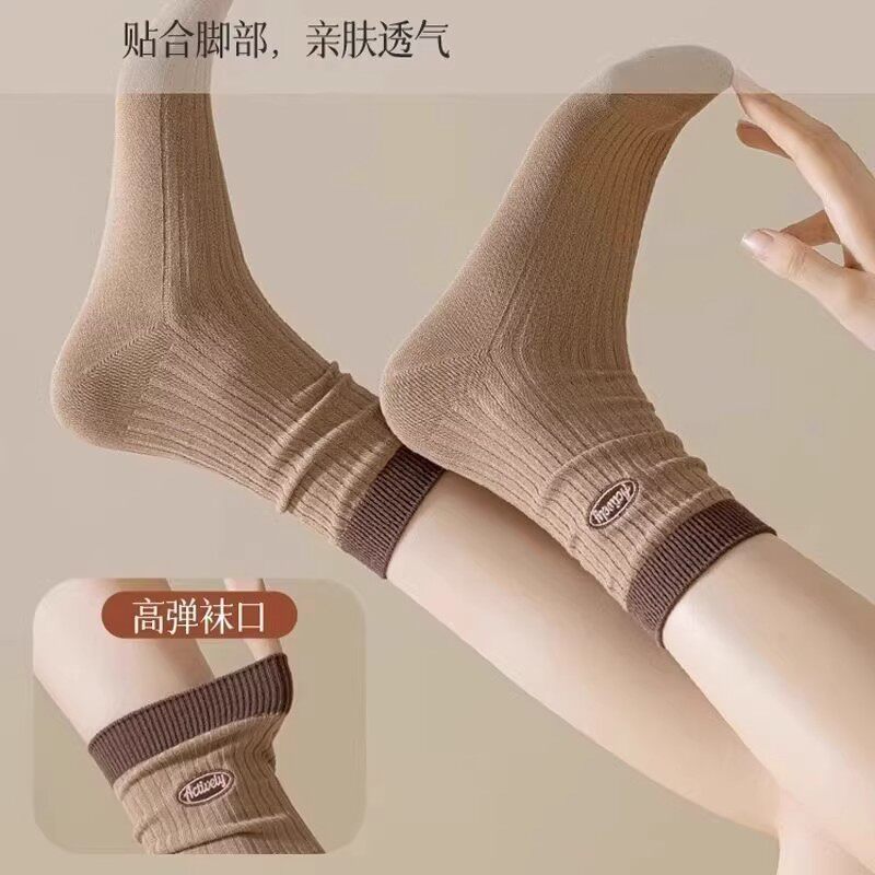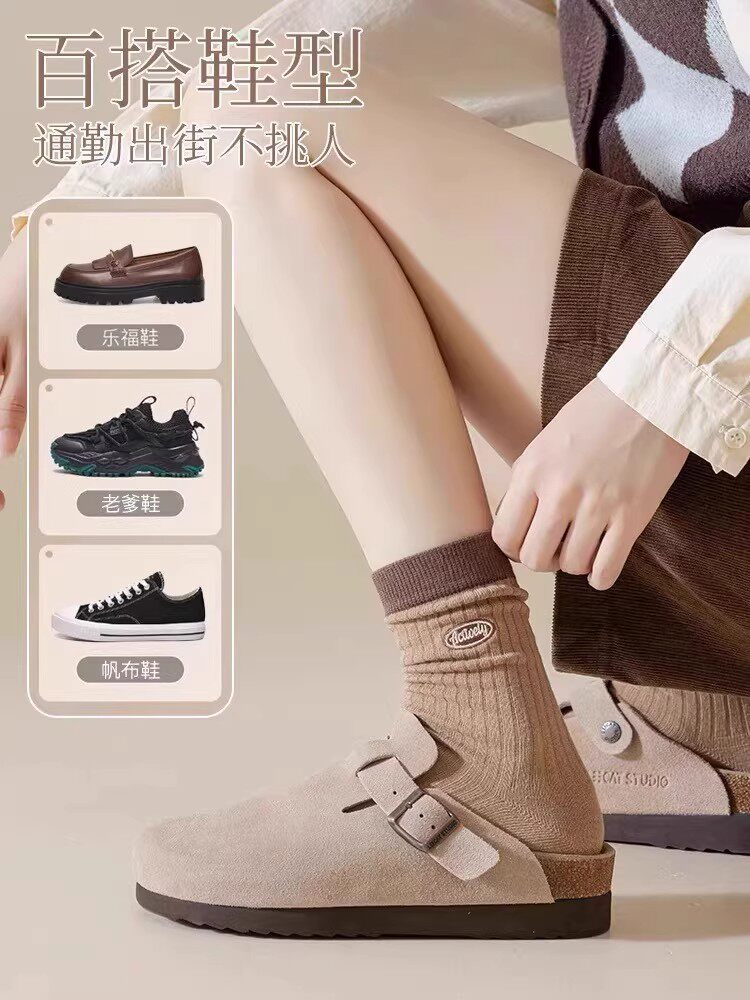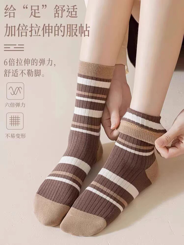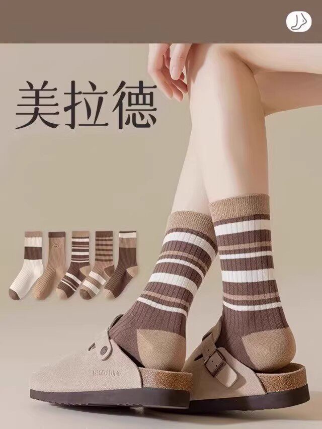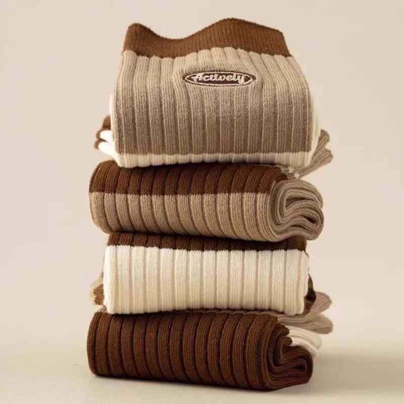 Autumn and Winter Socks in Melange Color, Mid-Calf Socks, Versatile, Simple, Thickened Slouch Socks, Preppy Style, Brown Long Socks