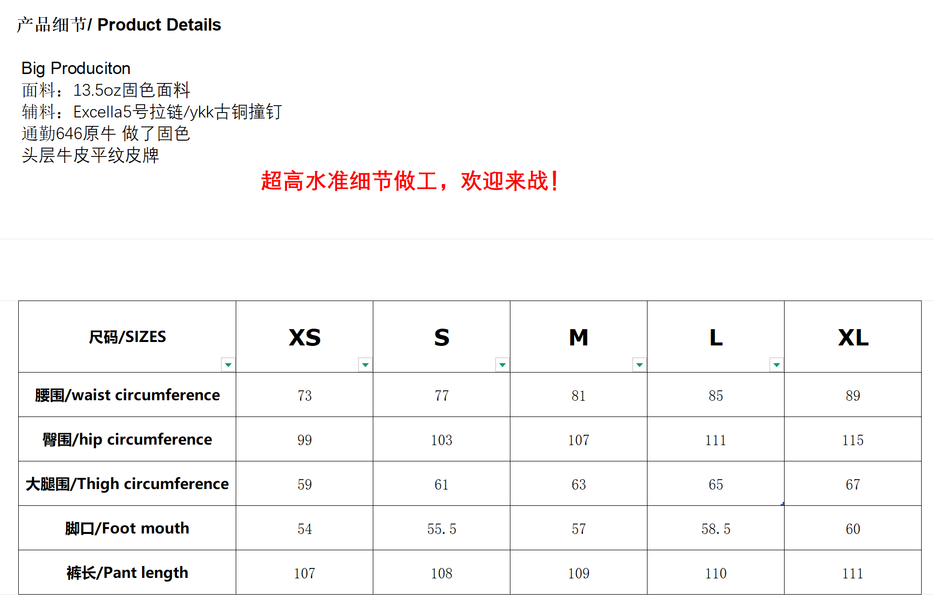 Big Production Hand-Sewn Needle 13.5 oz Raw Denim 646 Bootcut Jeans Single Item Denim