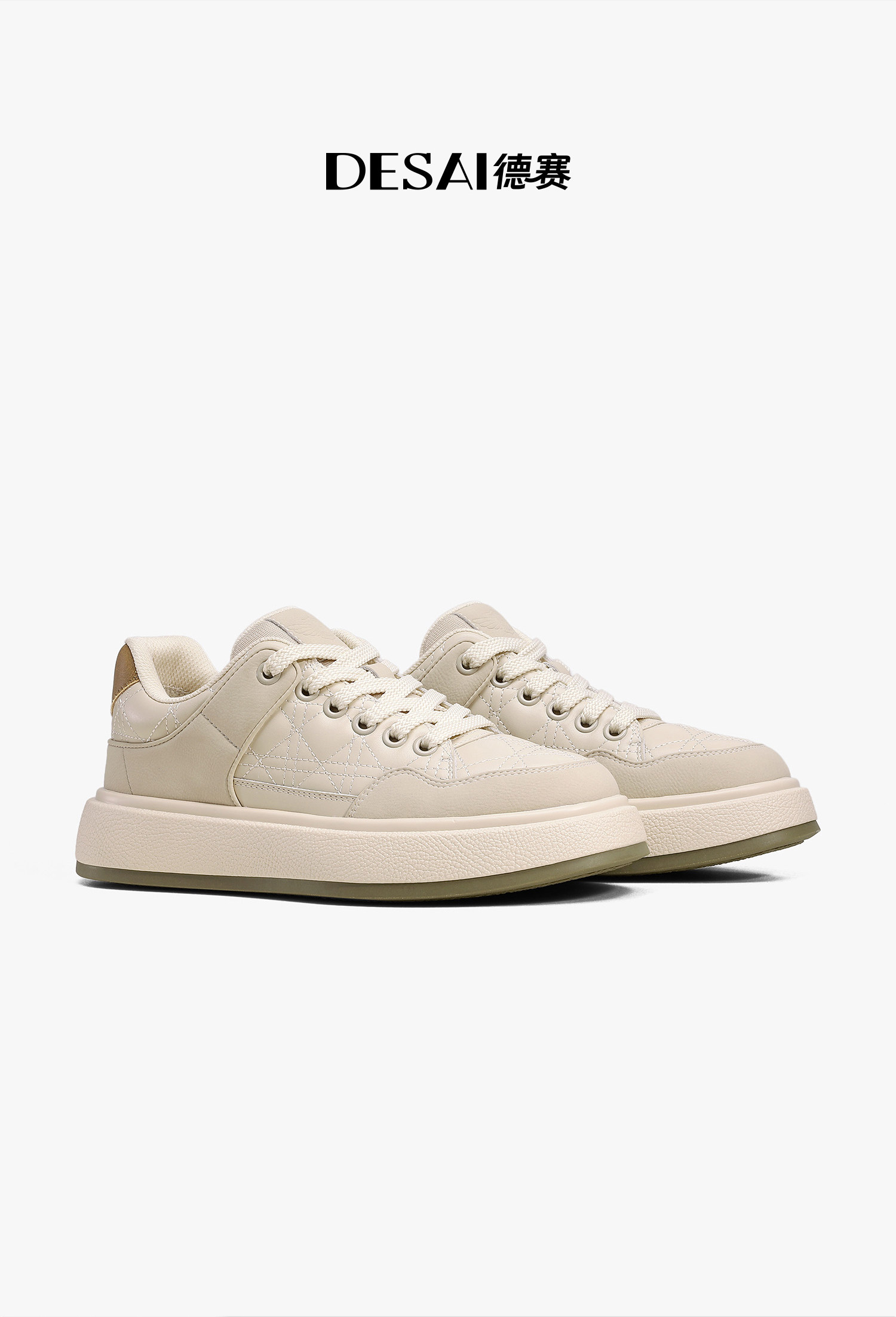 Desai [Little Chanel Style Checkered Pattern] Winter Thick-Soled Versatile Genuine Leather Casual Shoes for Men, Retro Sports Sneakers
