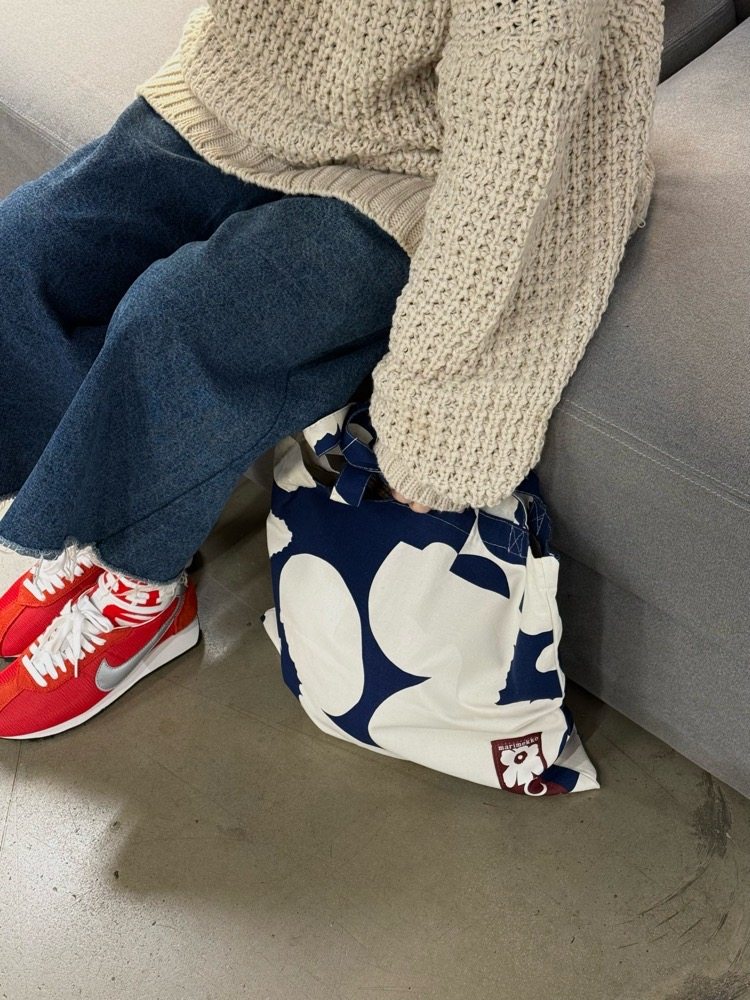 Miamarimekko Cotton and Linen Finnish Poppy-Themed Large-Capacity Canvas Bag Shopping Tote for Commuting to Work