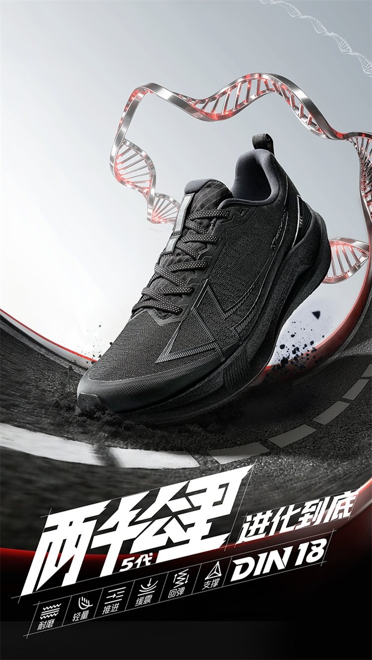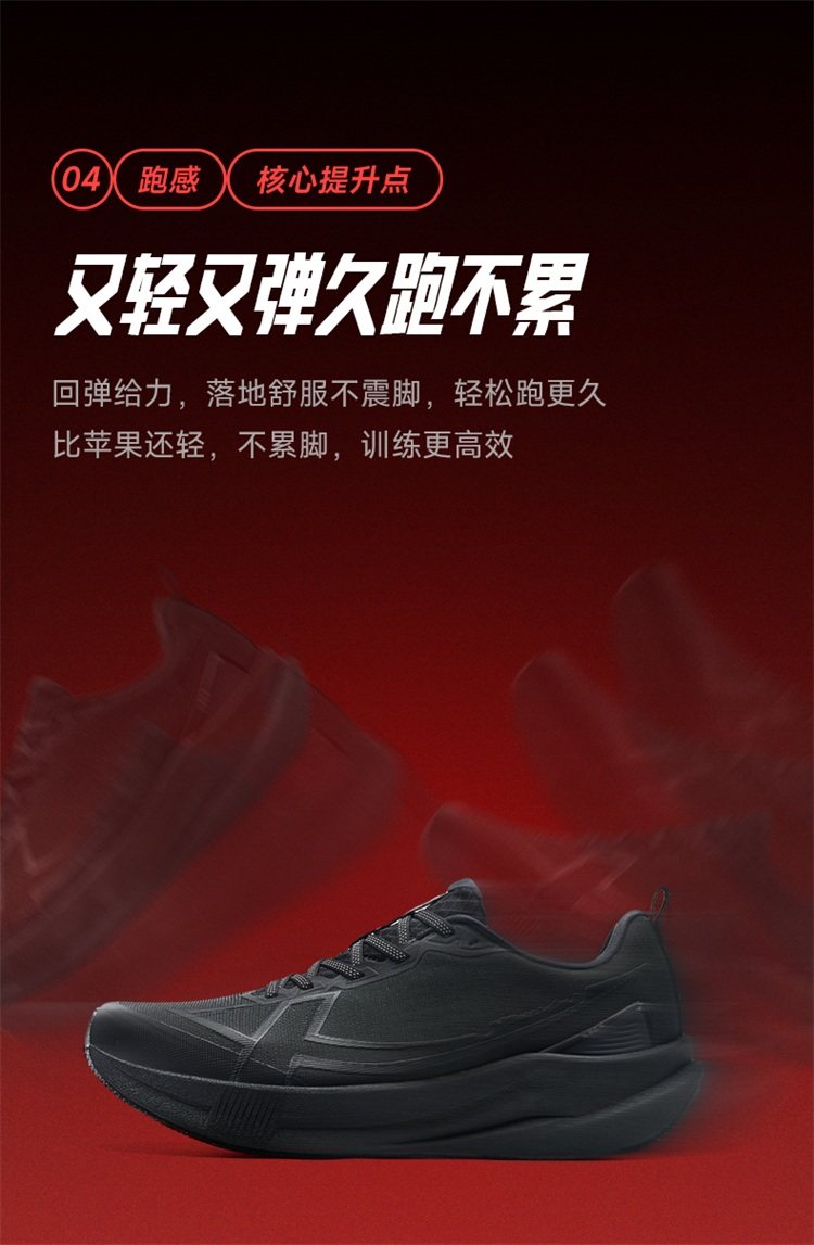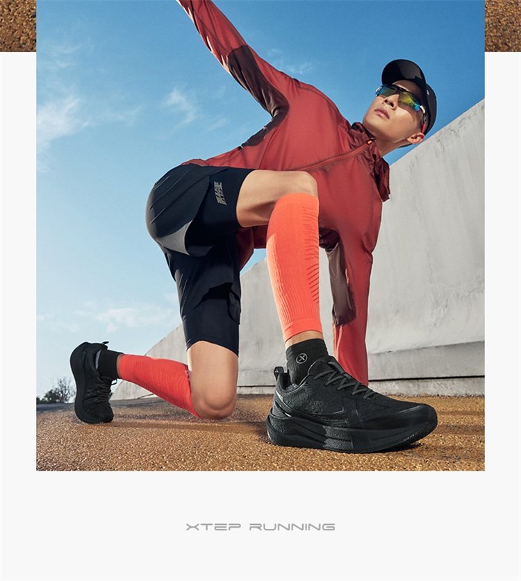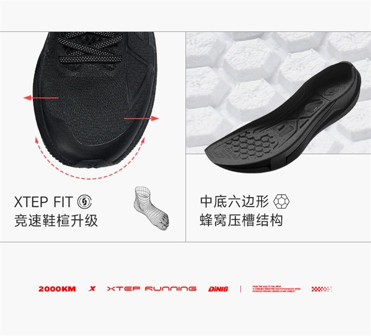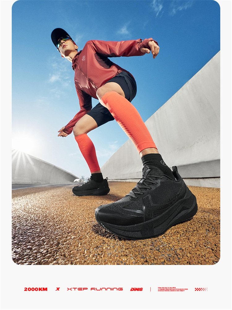 Xtep 2000 Kilometers 5Th Generation | Black Running Shoes Shock-Absorbing and Wear-Resistant Couple's Sports Shoes for Men 2000 Kilometers 5Th Generation