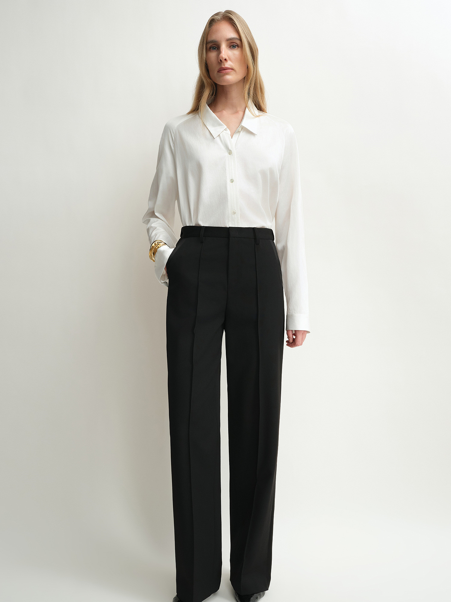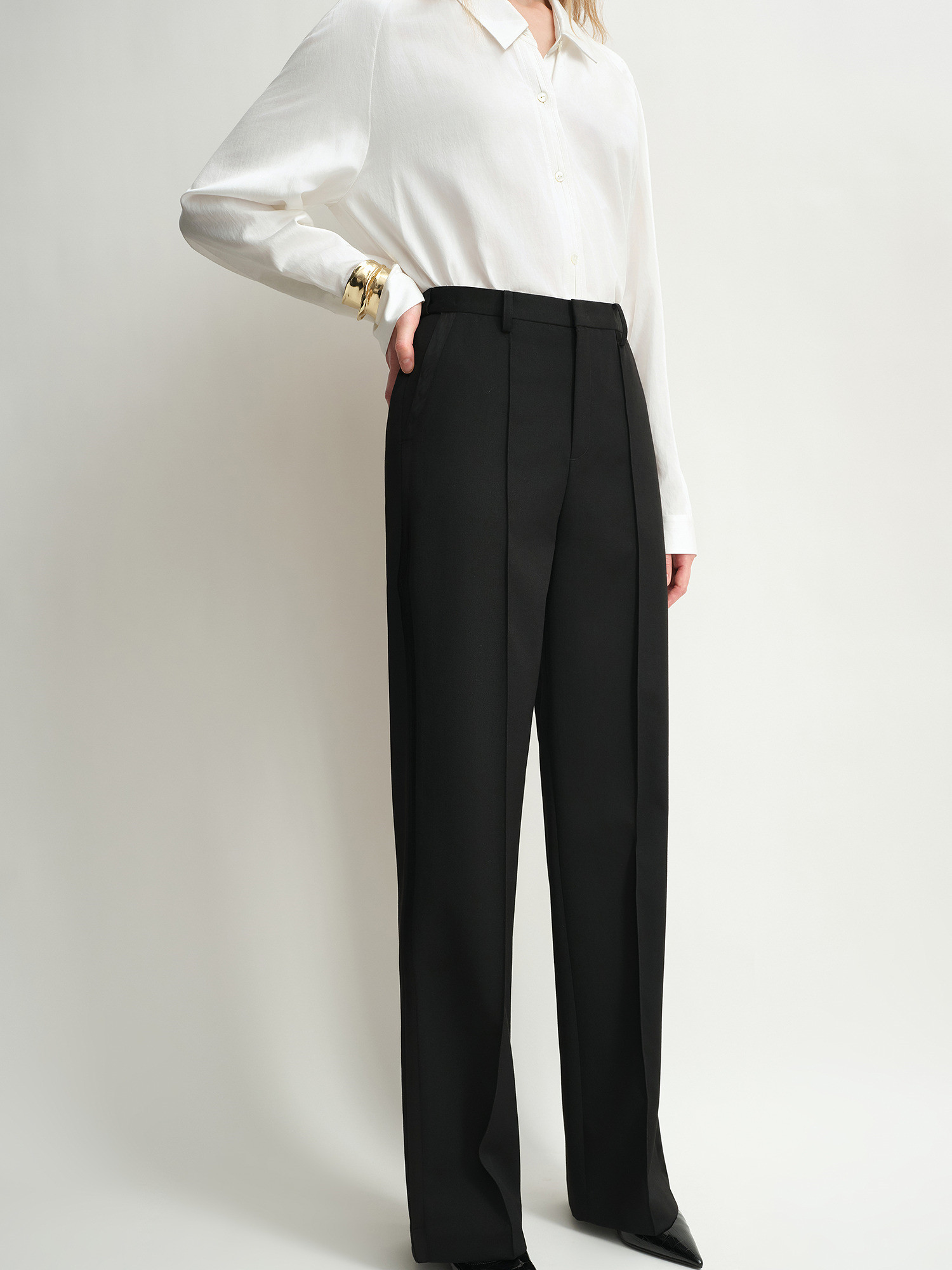 【Intelligent Wardrobe】The Artm Acetate Wool Classic Smoking Trousers with a Glossy Finish, Commuting Straight-Leg Pants