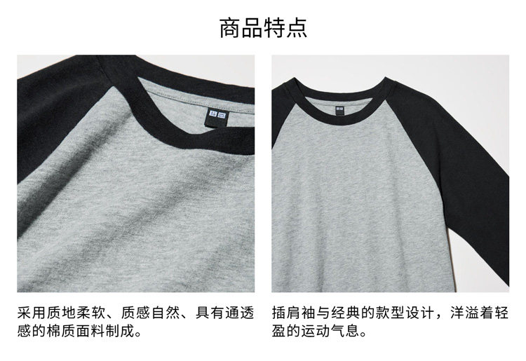 Priority Shipping: Uniqlo Women's Bamboo Yarn Raglan Sleeve Color-Block T-Shirt/Long Sleeve 26 Spring/Summer New Model 484869