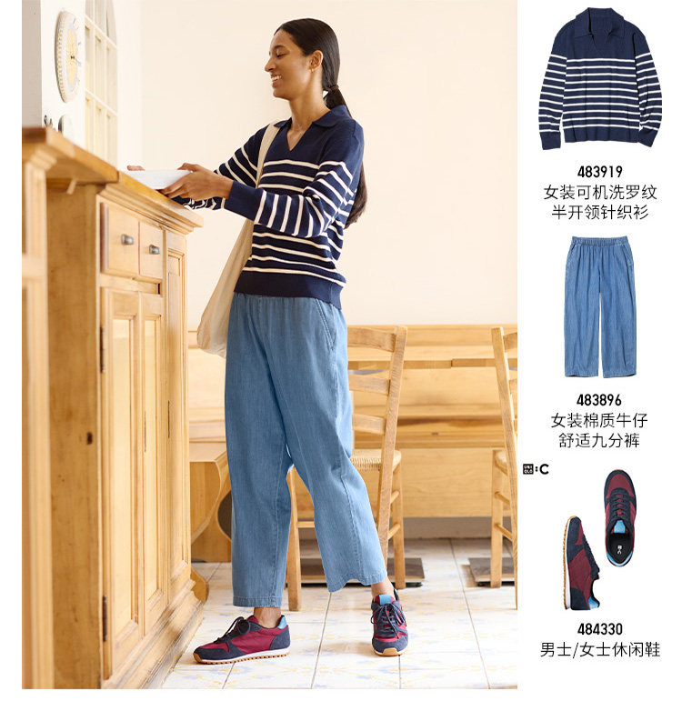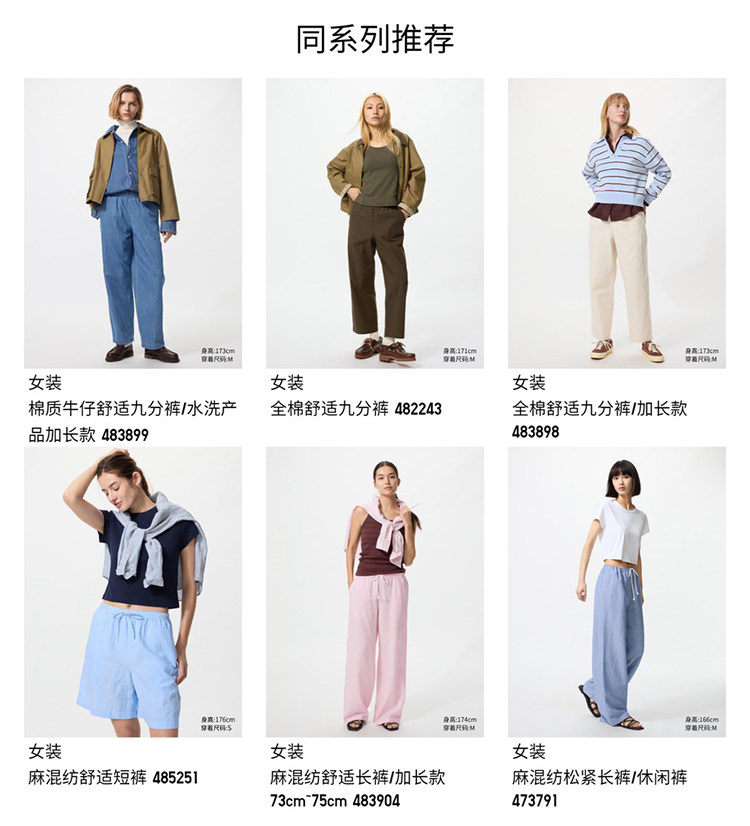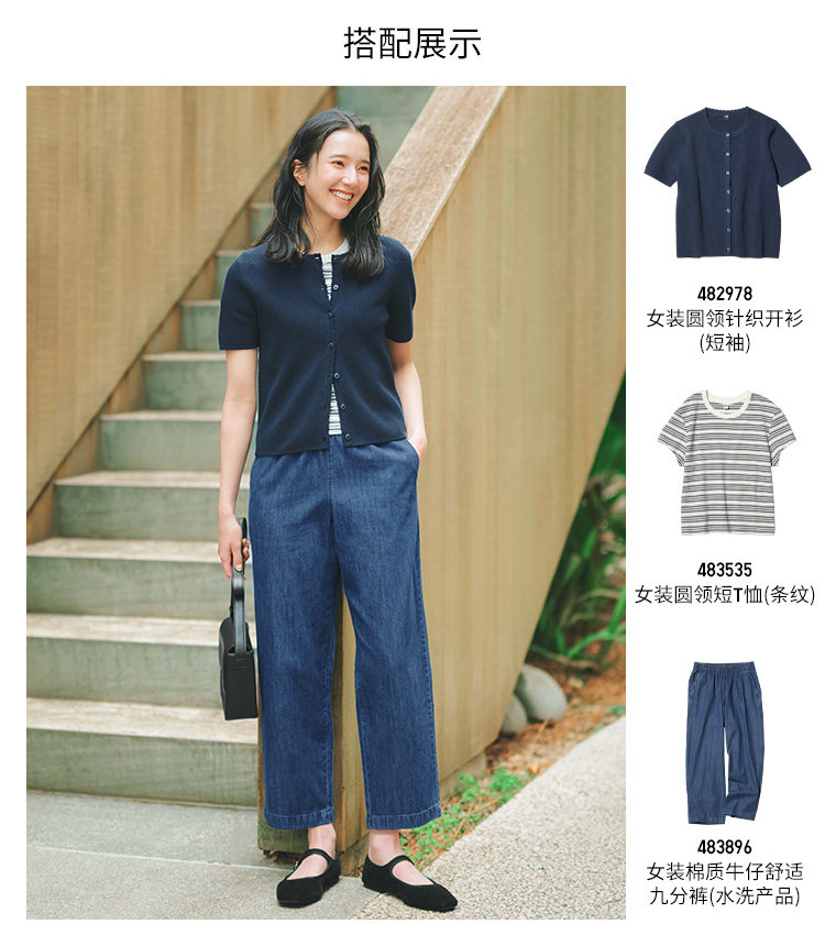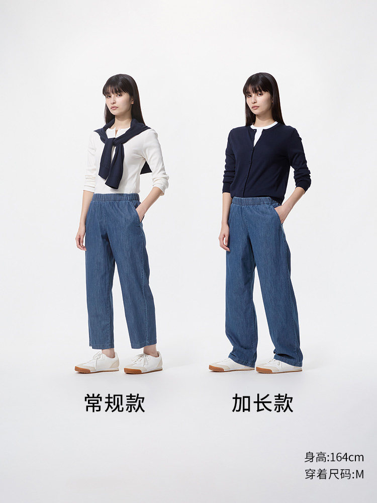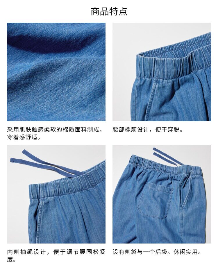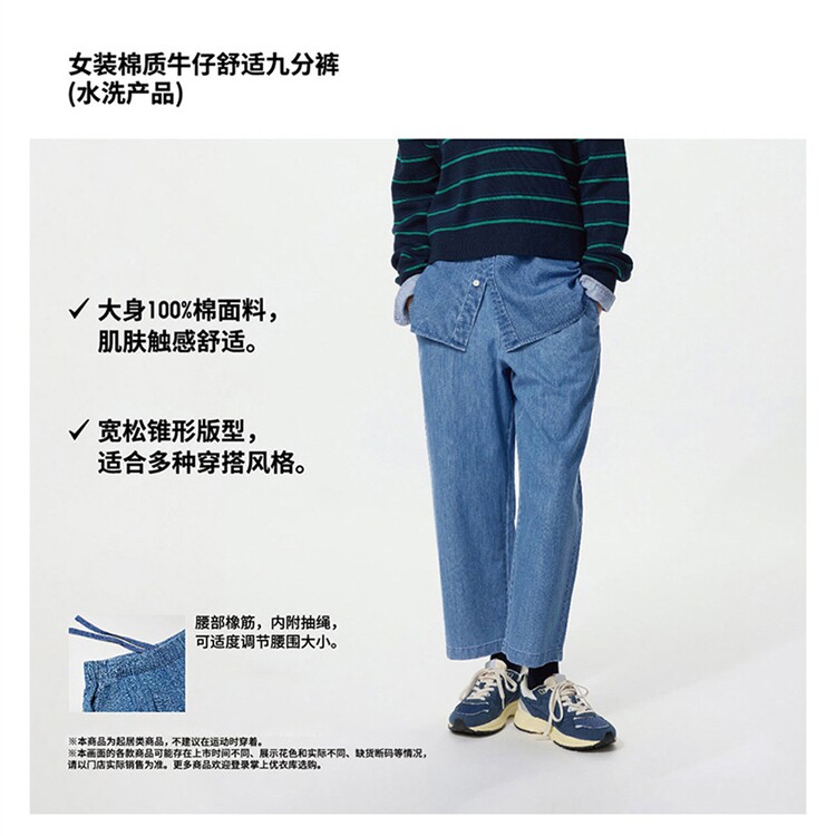 Regular Style Uniqlo Women's Cotton Denim Comfortable Cropped Pants/Washed Product 26 Spring/Summer New Model 483896
