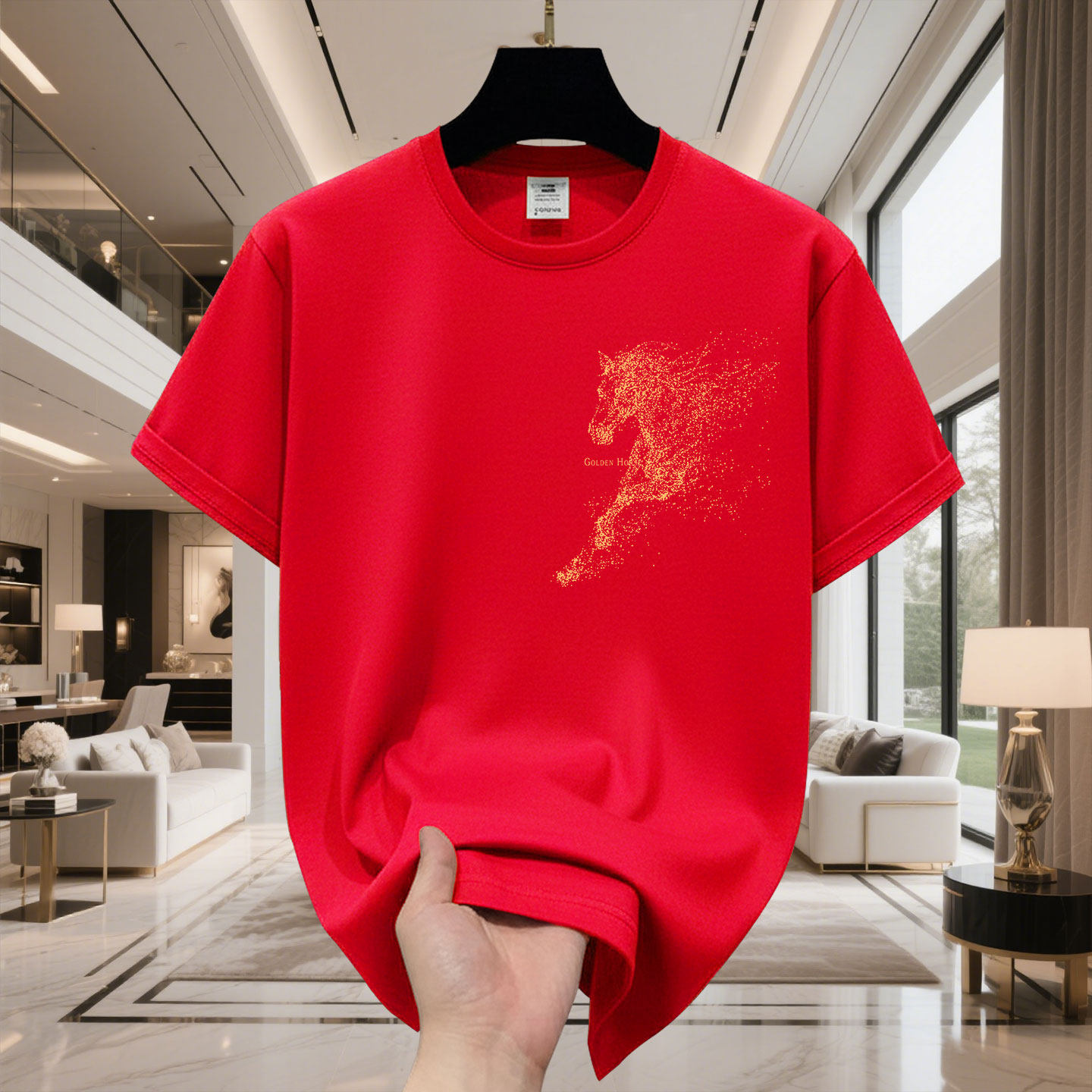 Year of the Horse T-Shirt Short-Sleeved Men's Casual Men's Top 2026 New Year Red Half-Sleeved Pure Cotton