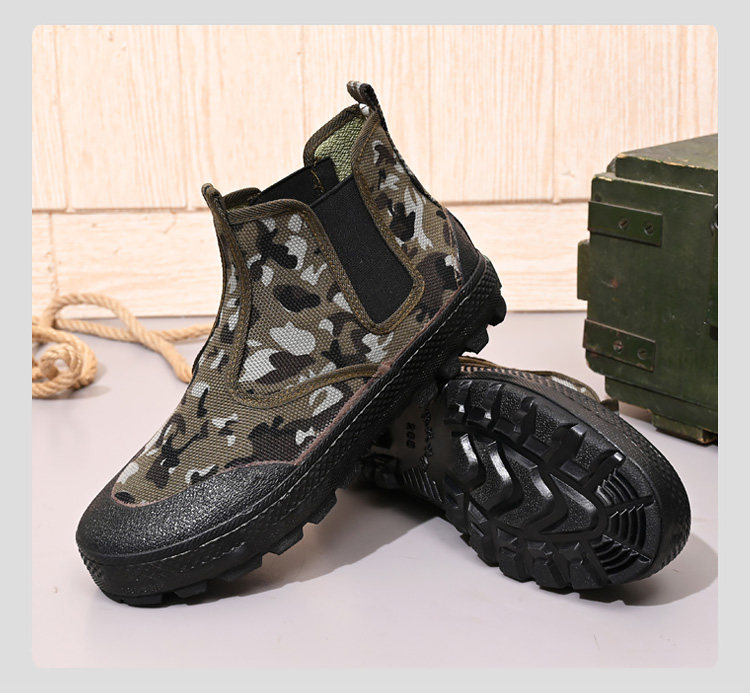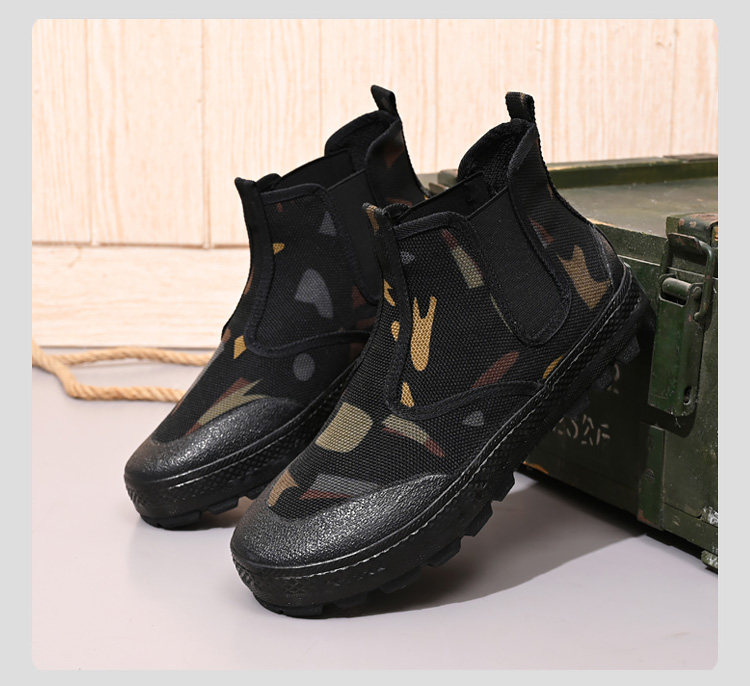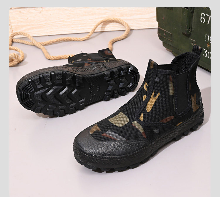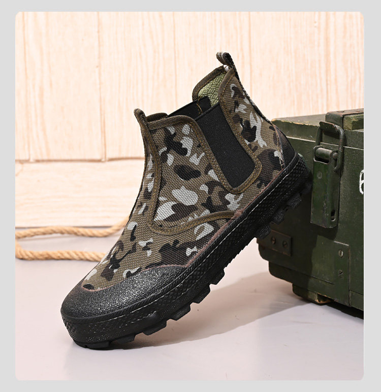 High-Top Camouflage Liberation Shoes for Men and Women, Slip-On, Wear-Resistant, Non-Slip, Outdoor Construction Site Safety Shoes, Spring and Summer Models, Large Size Rubber Shoes