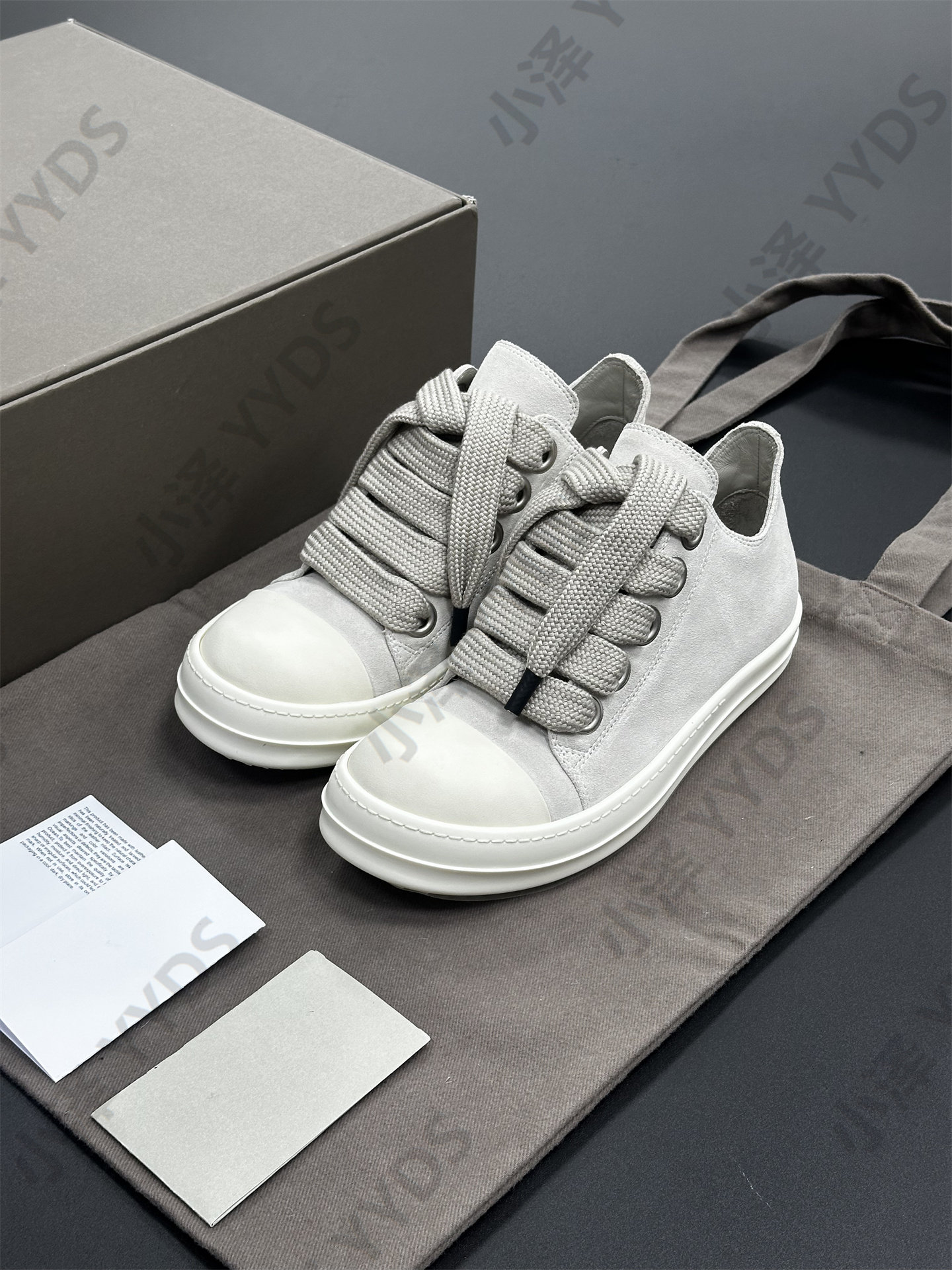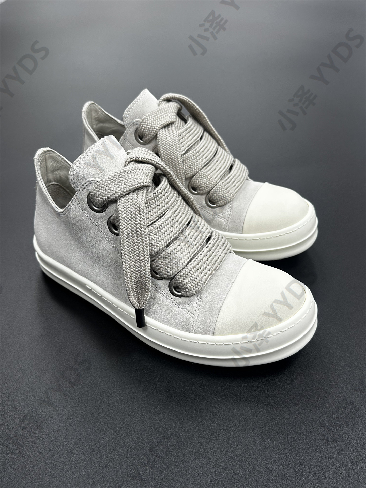 Rick Ocean Ro Independent Main Line White and Gray Suede Thick Laces Milk-Scented Low-Top Shoes