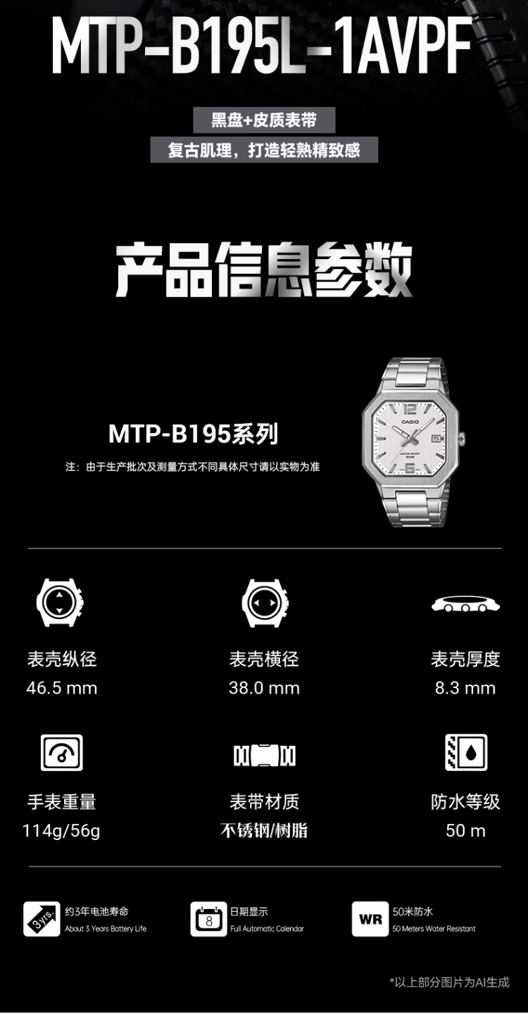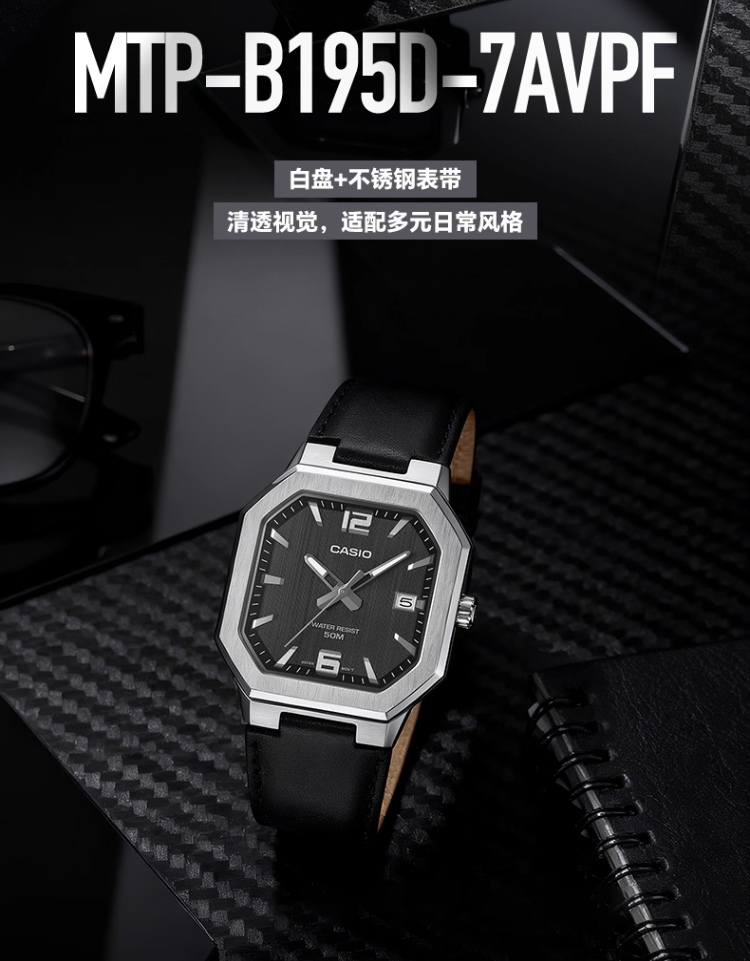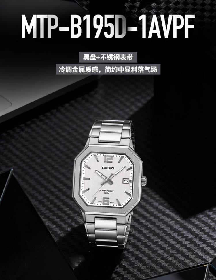 Casio Unisex Watch, Simple Retro Small Square Fashion Business Waterproof Watch Mtp-B195