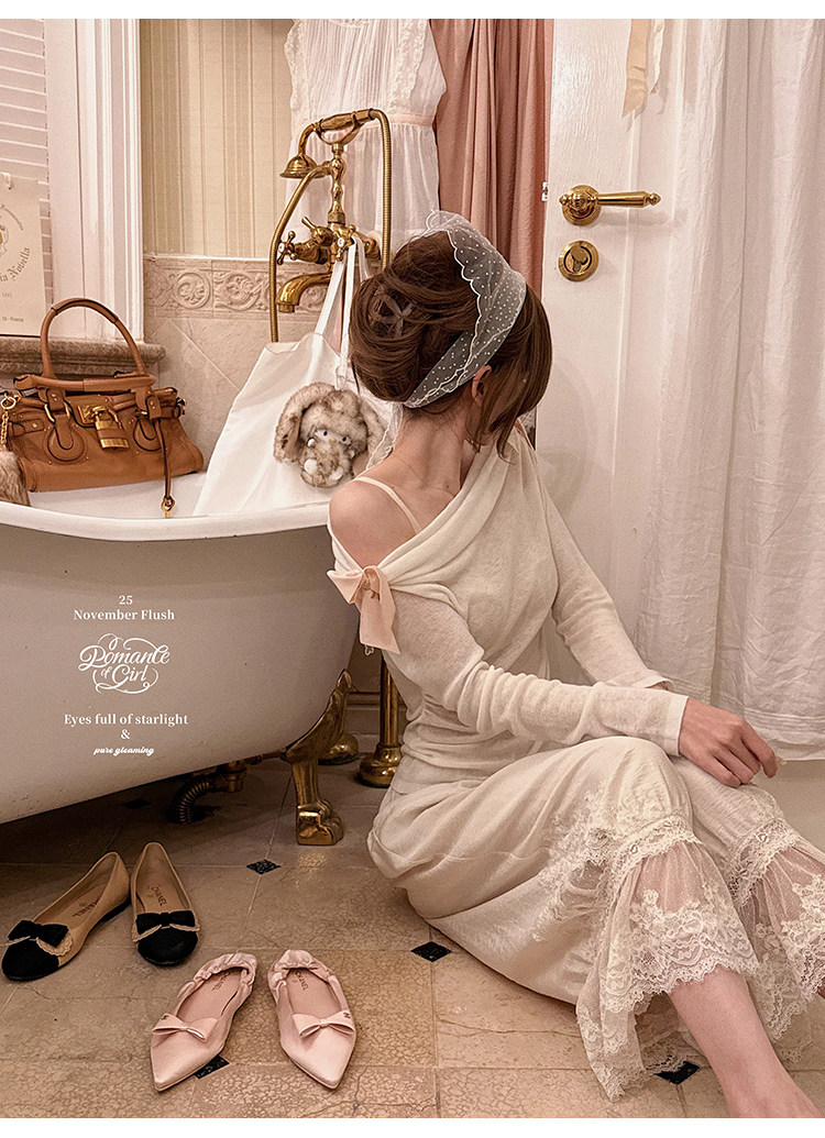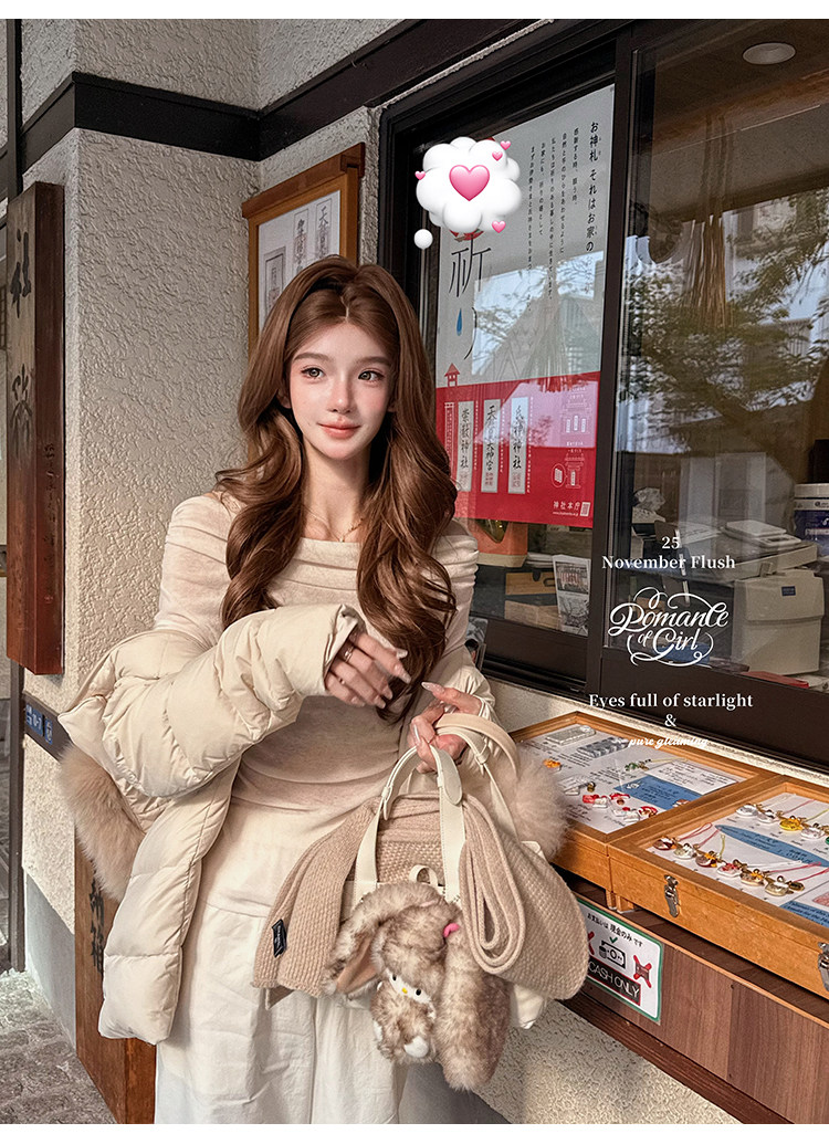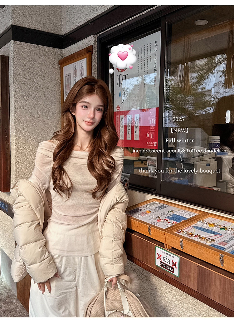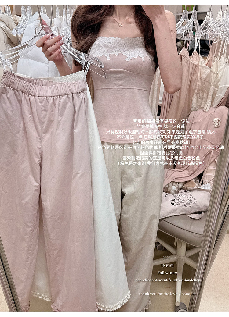 Romanceofgirl / Classic and Stylish Exclusive Drop-Neck Water-Soluble Wool Knit & Warm Practical Cotton Pants