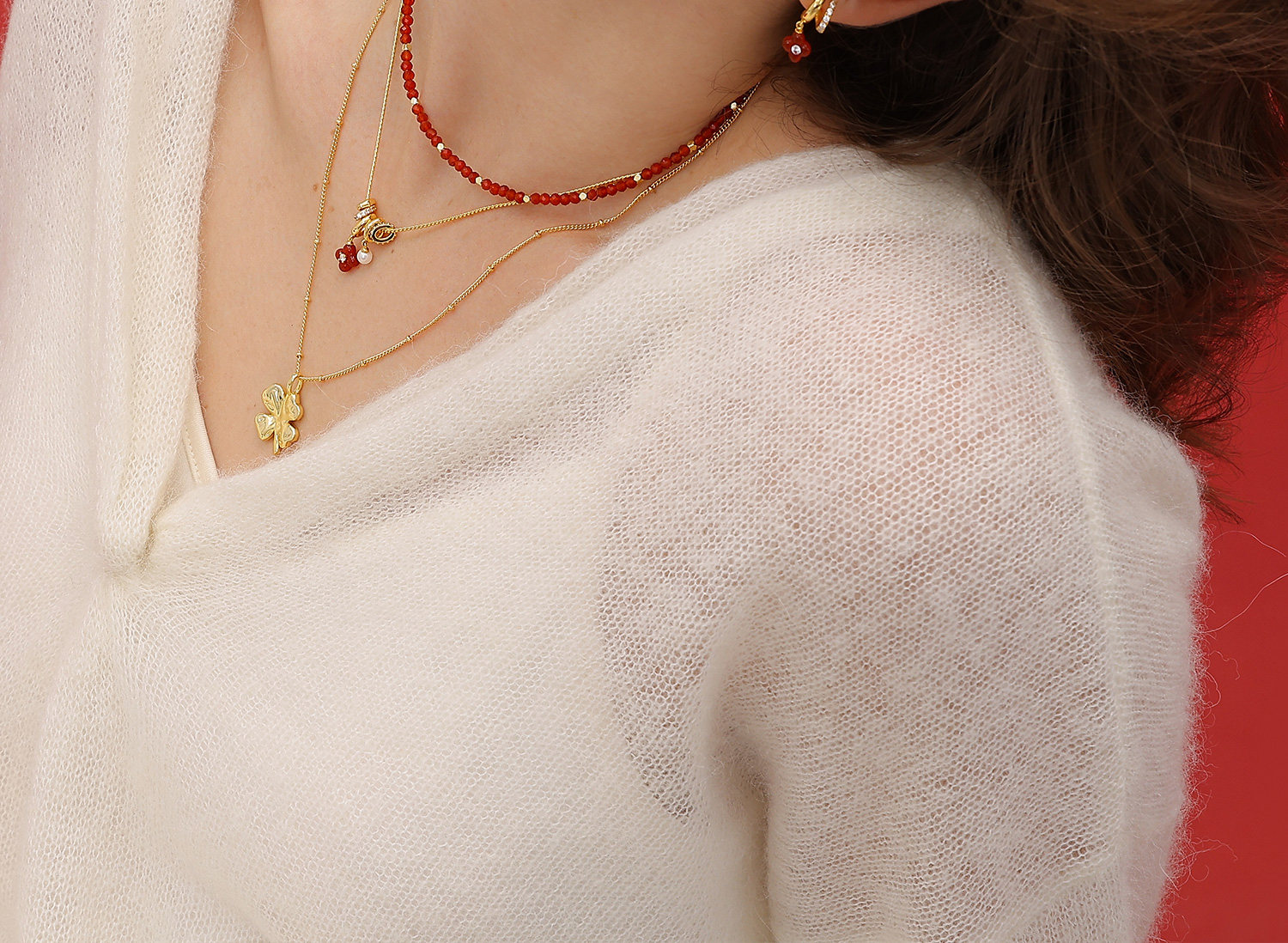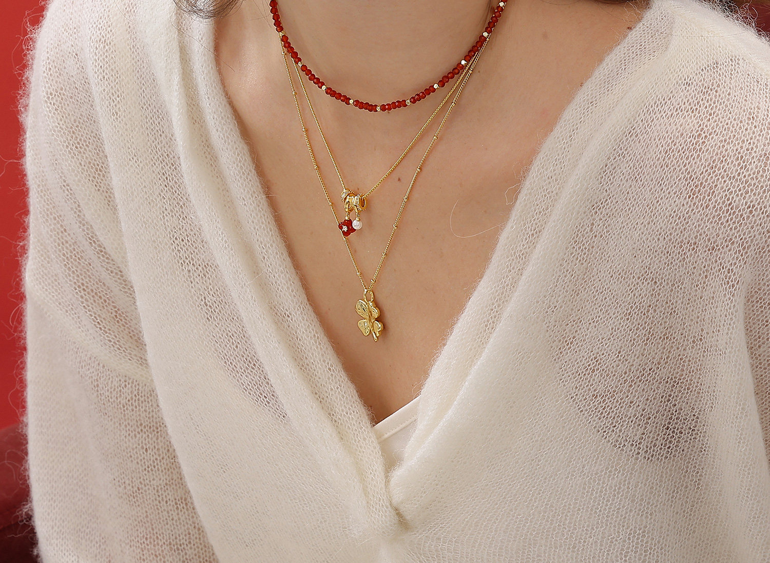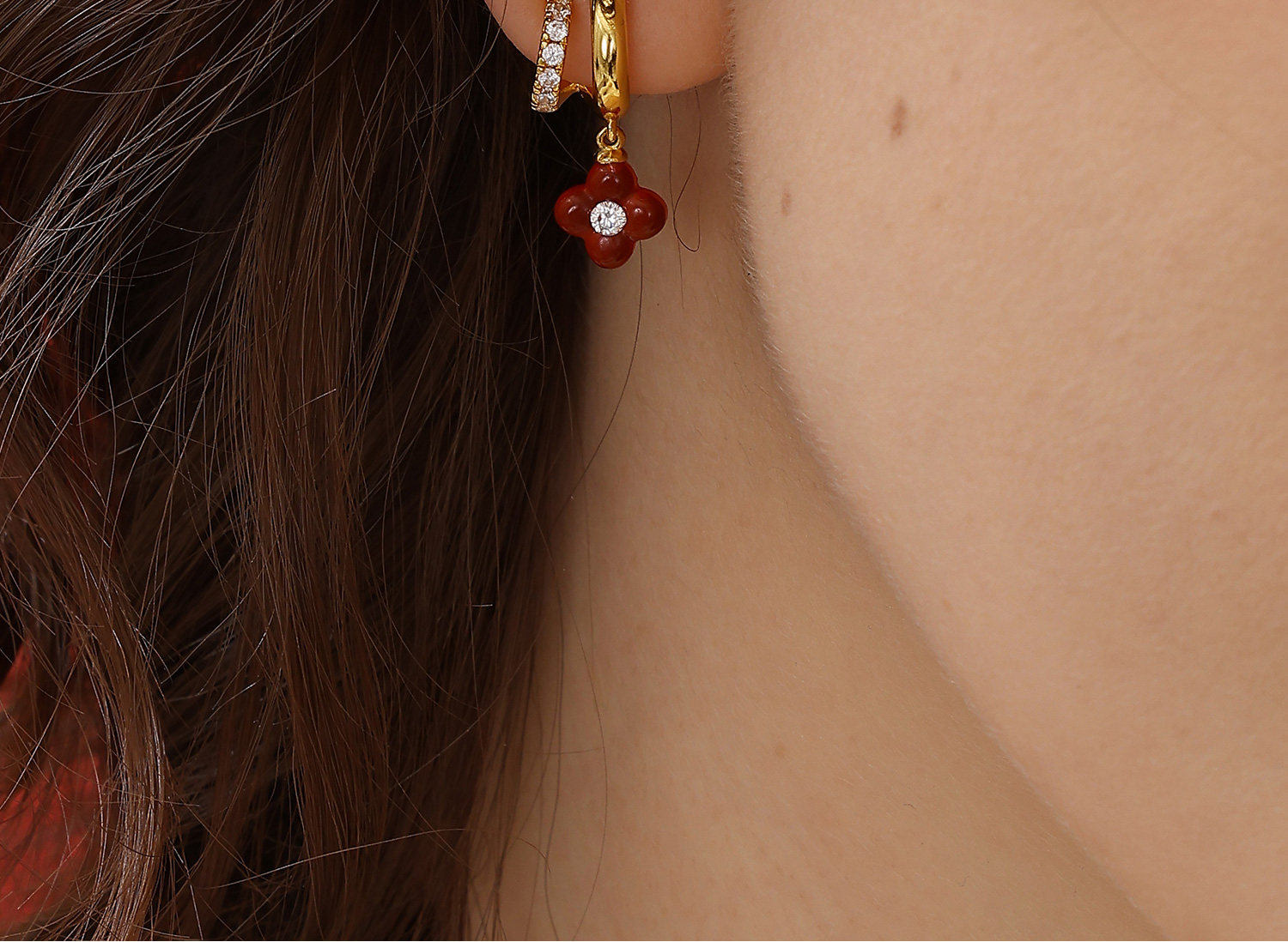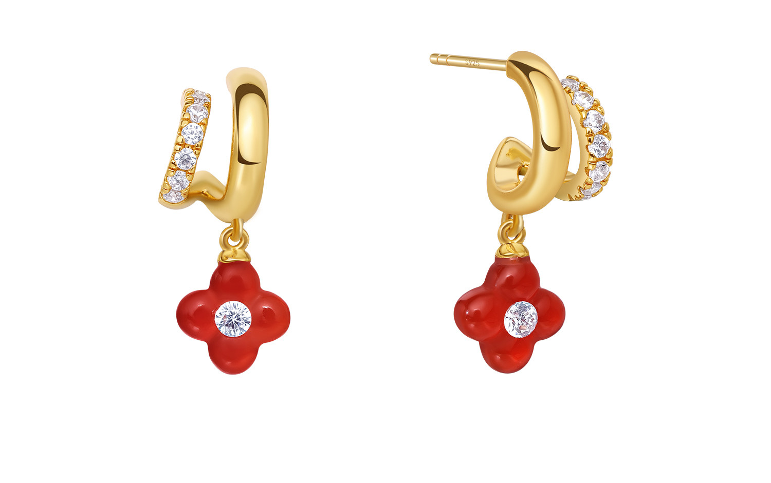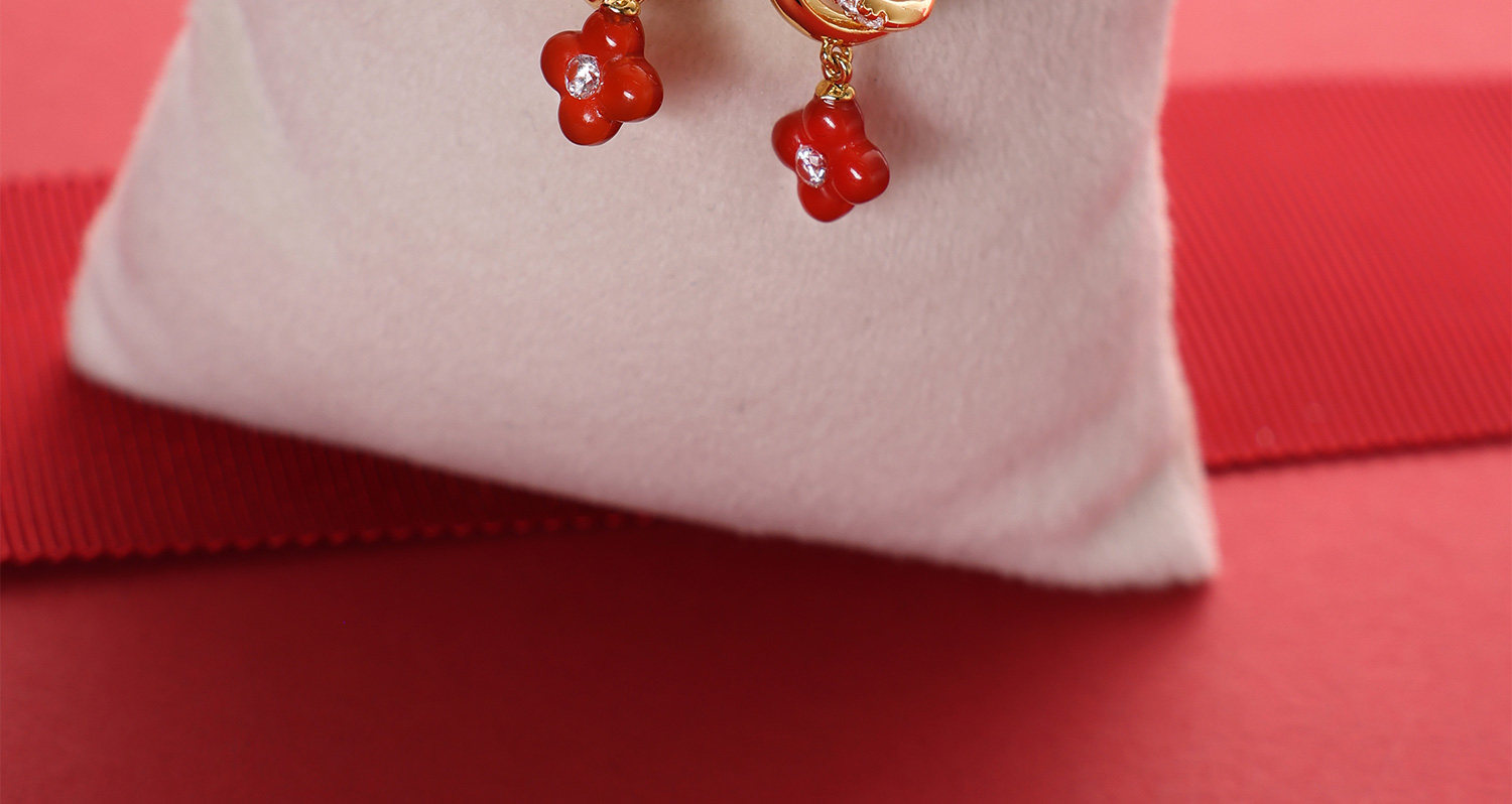 [New Style] Arsis Lucky Symbol Four-Leaf Clover Double Circle Earrings New Year Red Earrings Gift