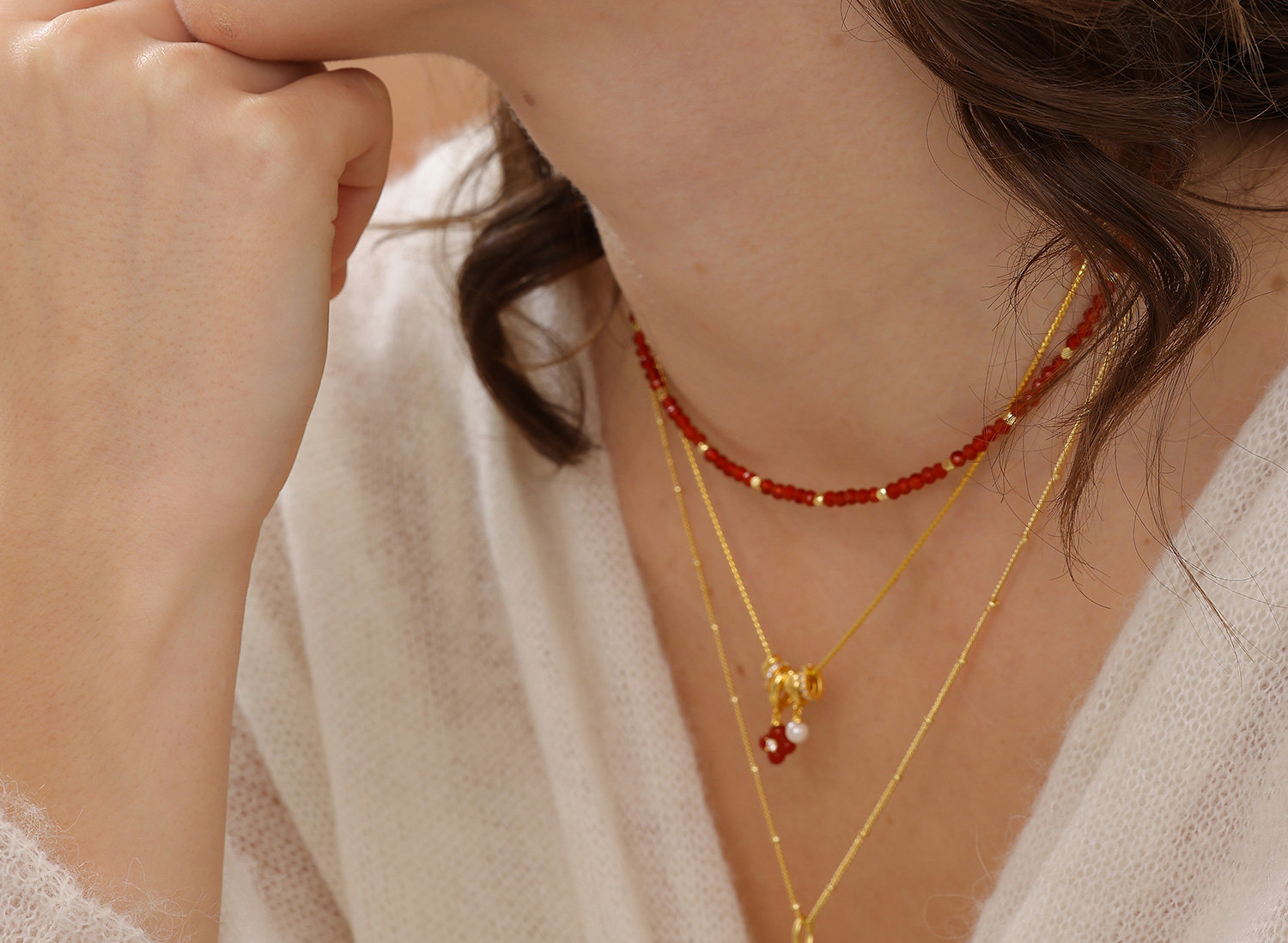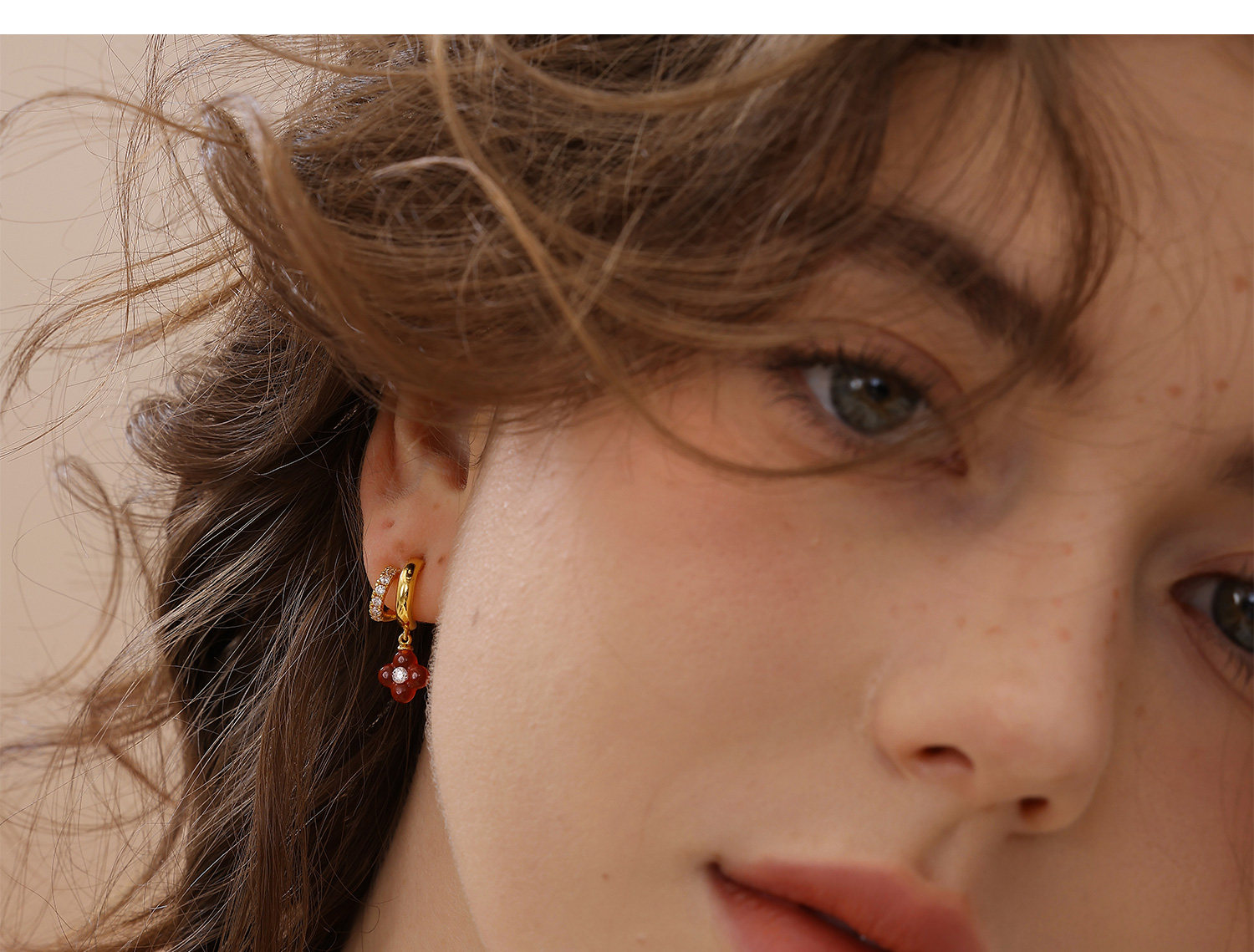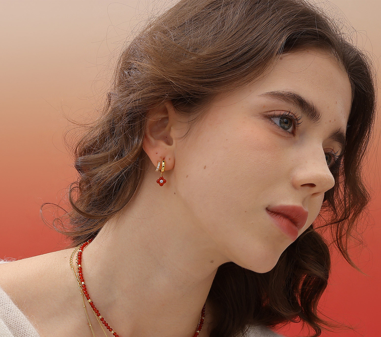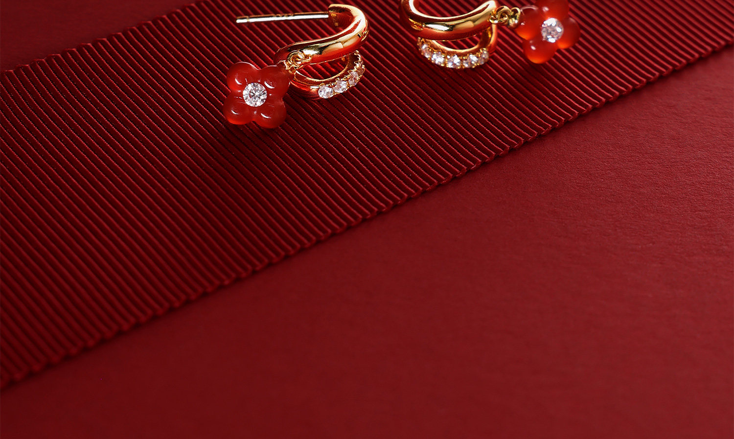 [New Style] Arsis Lucky Symbol Four-Leaf Clover Double Circle Earrings New Year Red Earrings Gift