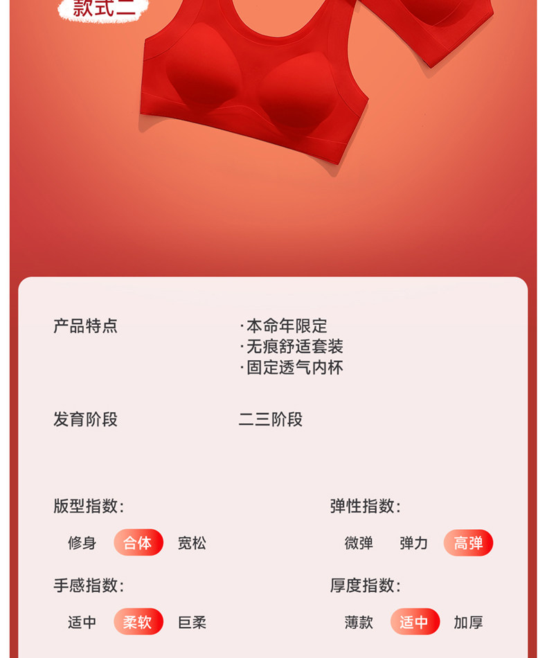 Red Underwear for Girls in Their Zodiac Year, Puberty Vest for Students in Middle School Stages Two and Three, Year of the Horse Bra