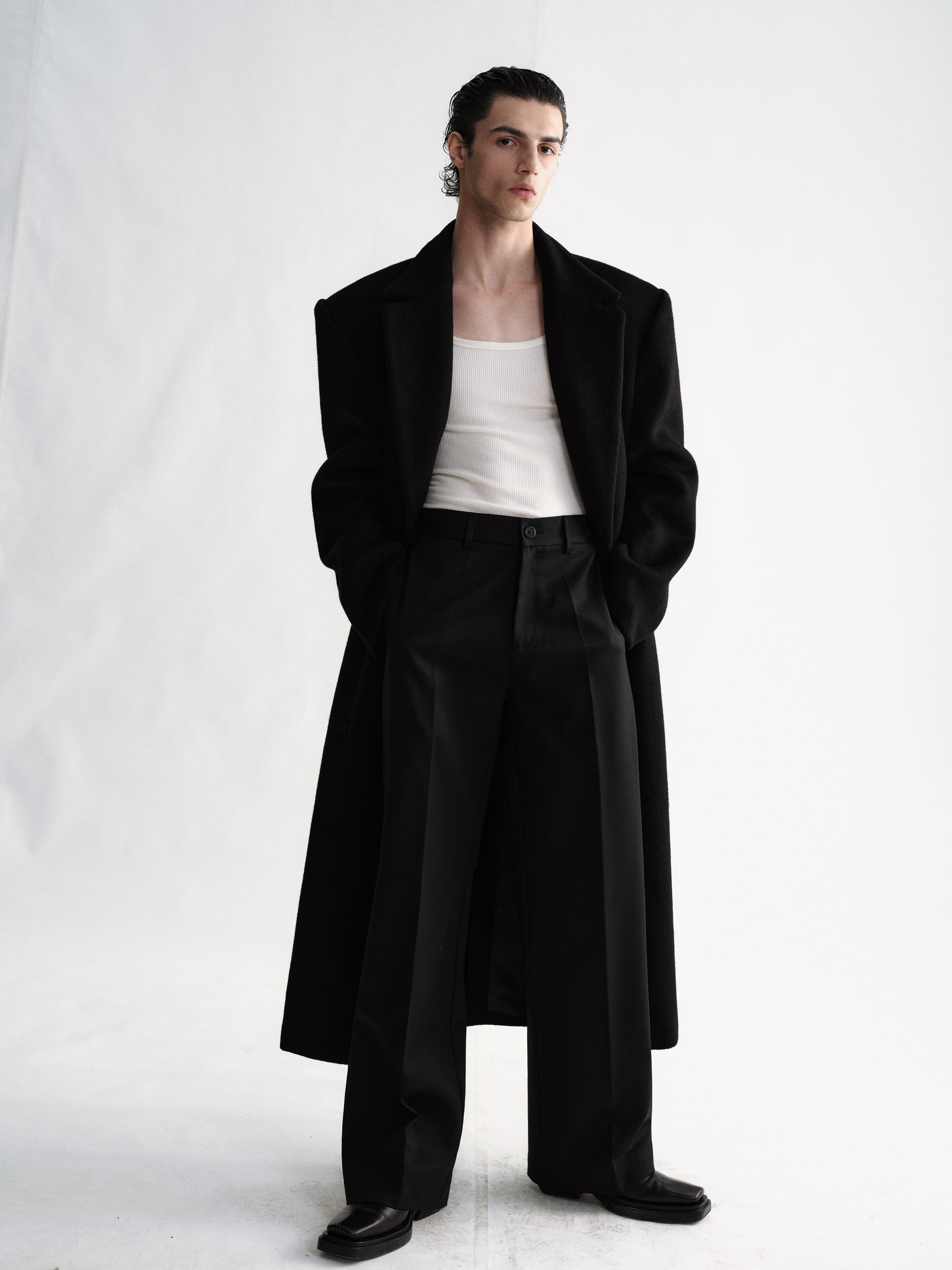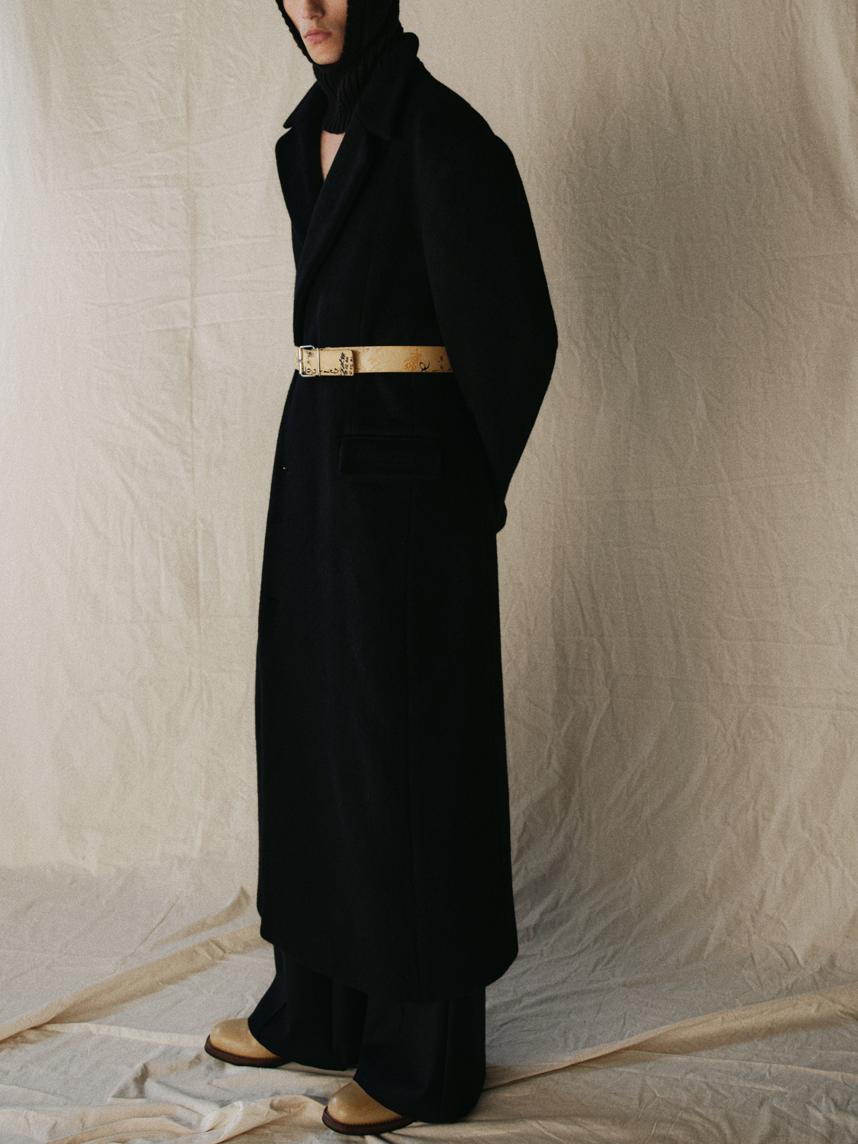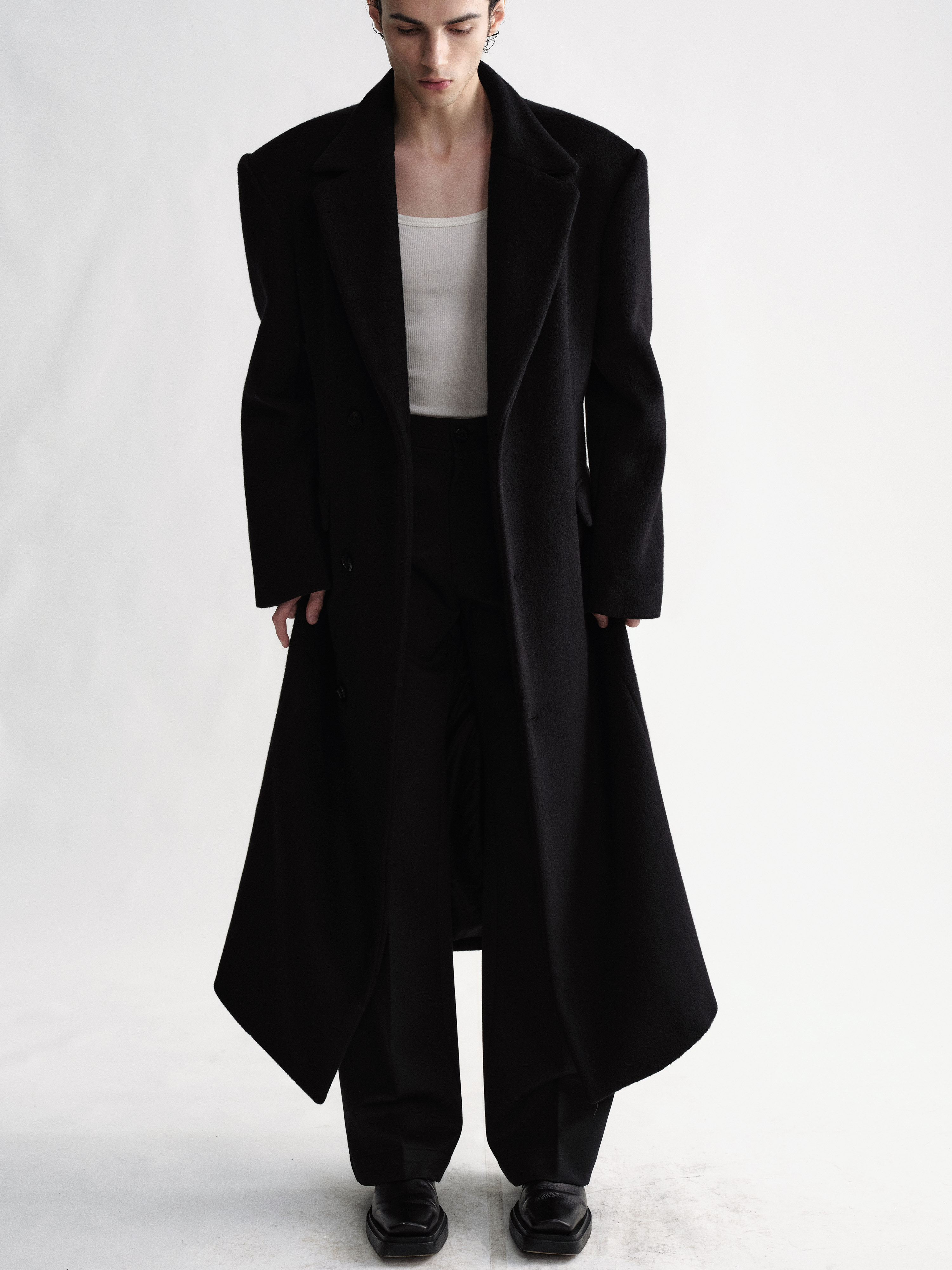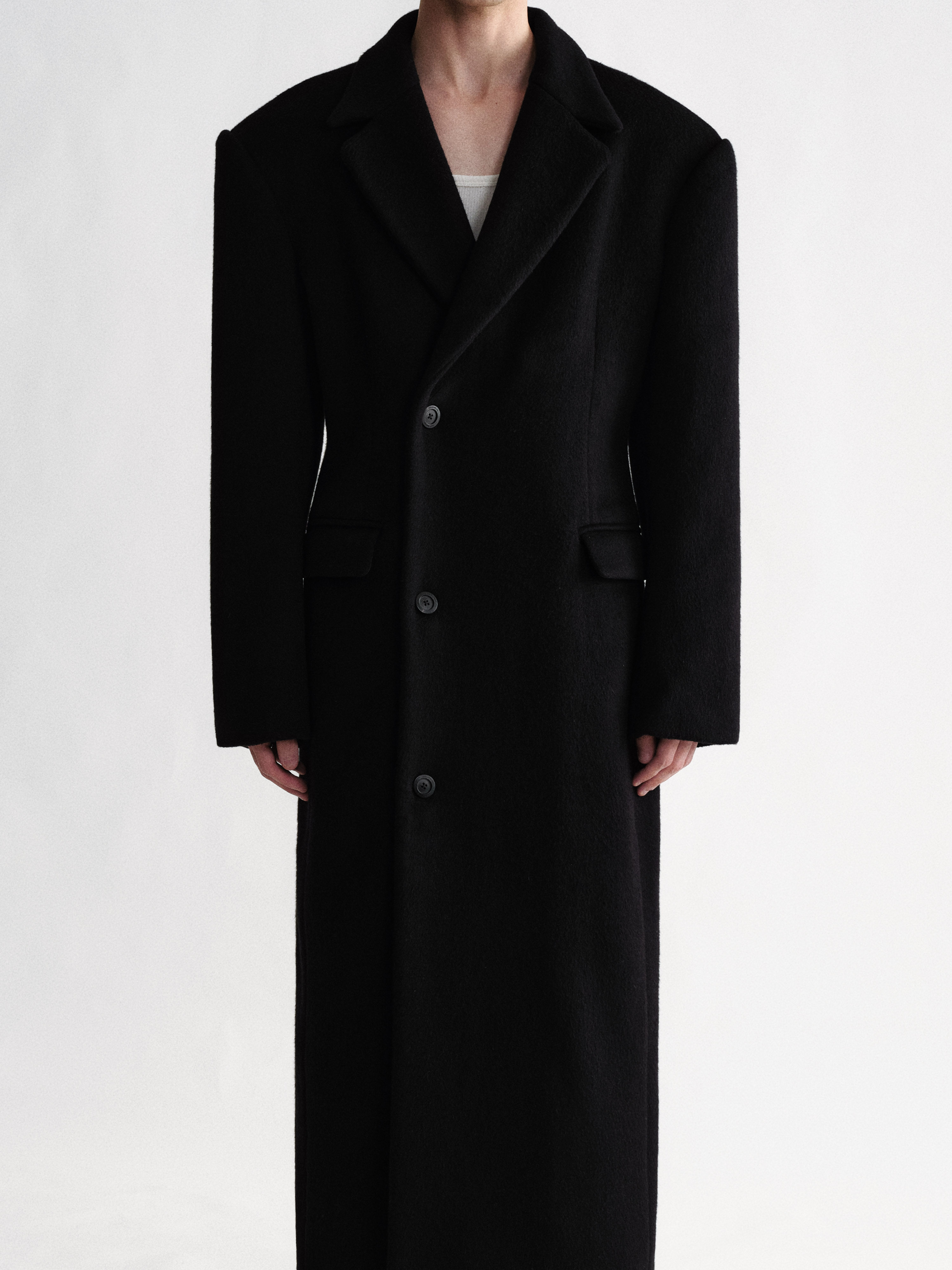 Sehenblau Designer Men's Clothing Minimalist Waist-Cinching Black Long Single-Breasted Wool Coat Woolen Jacket