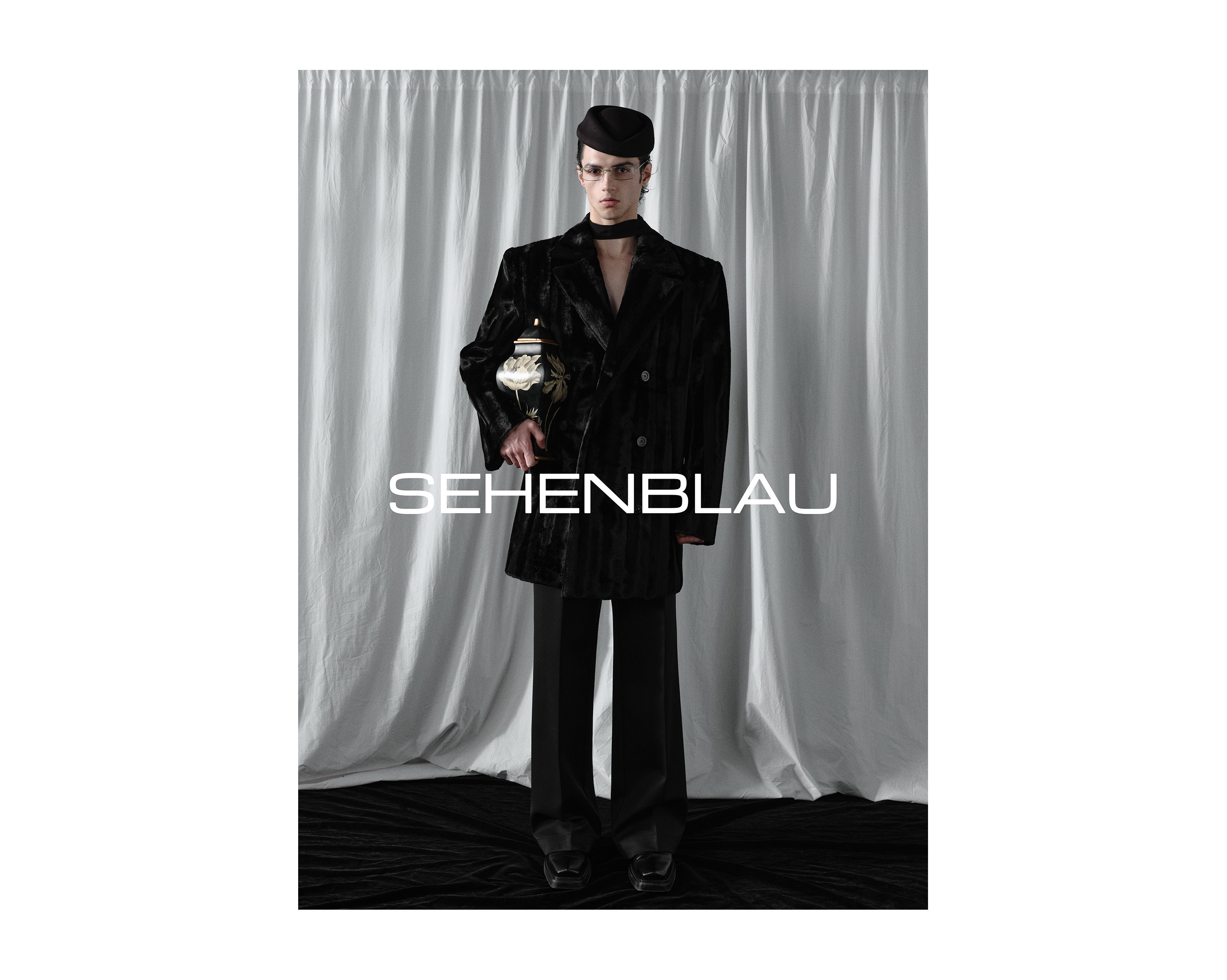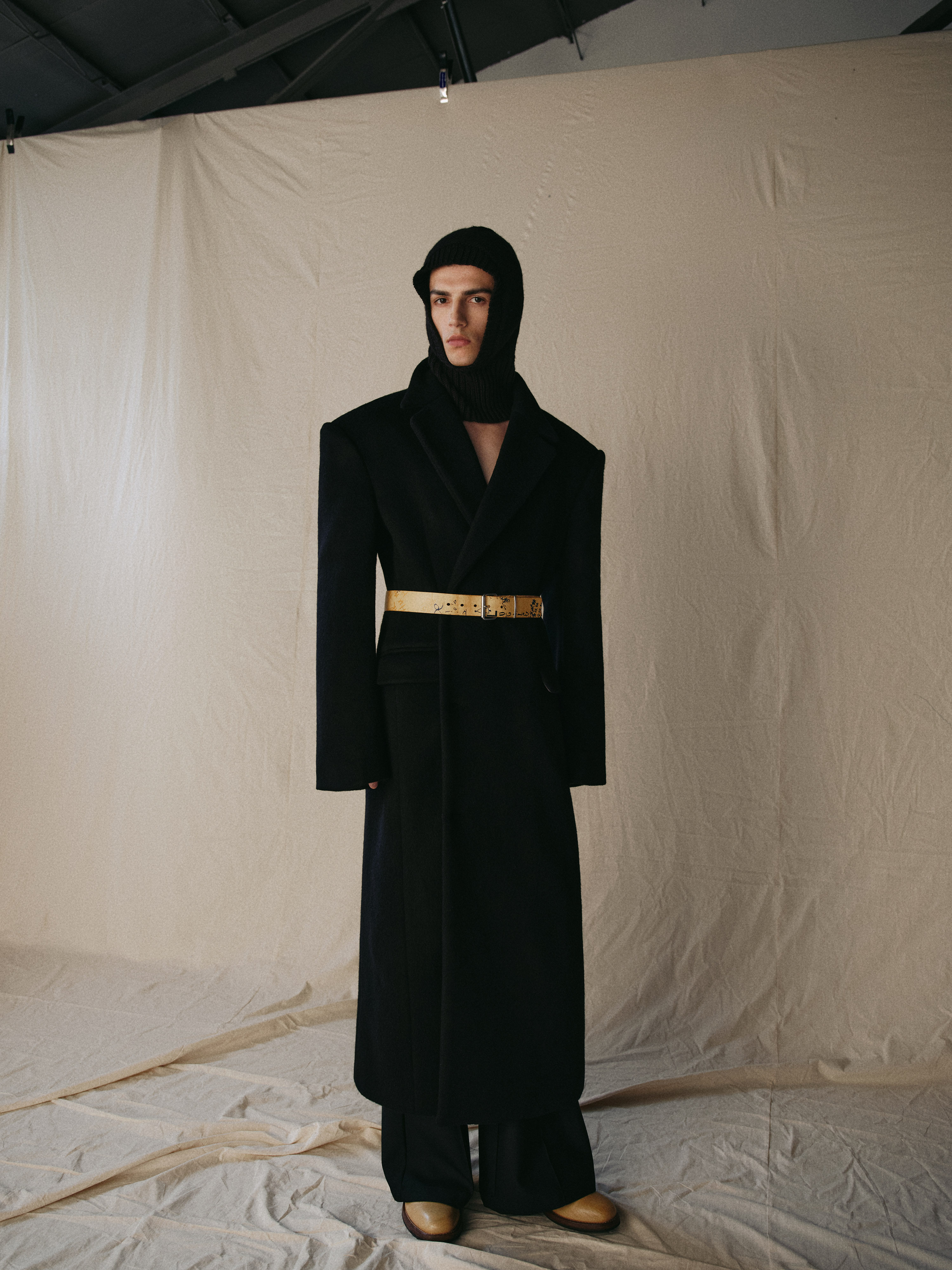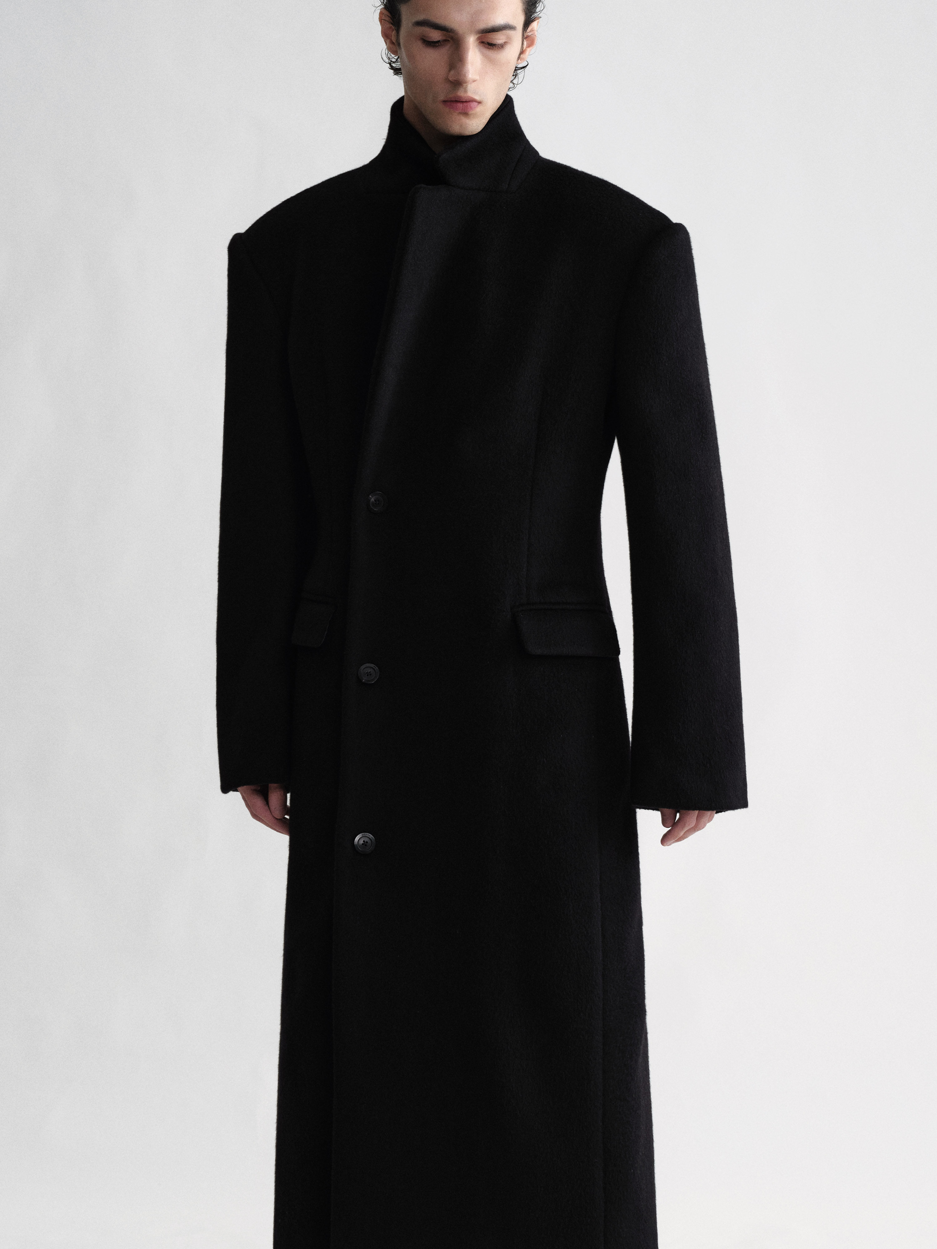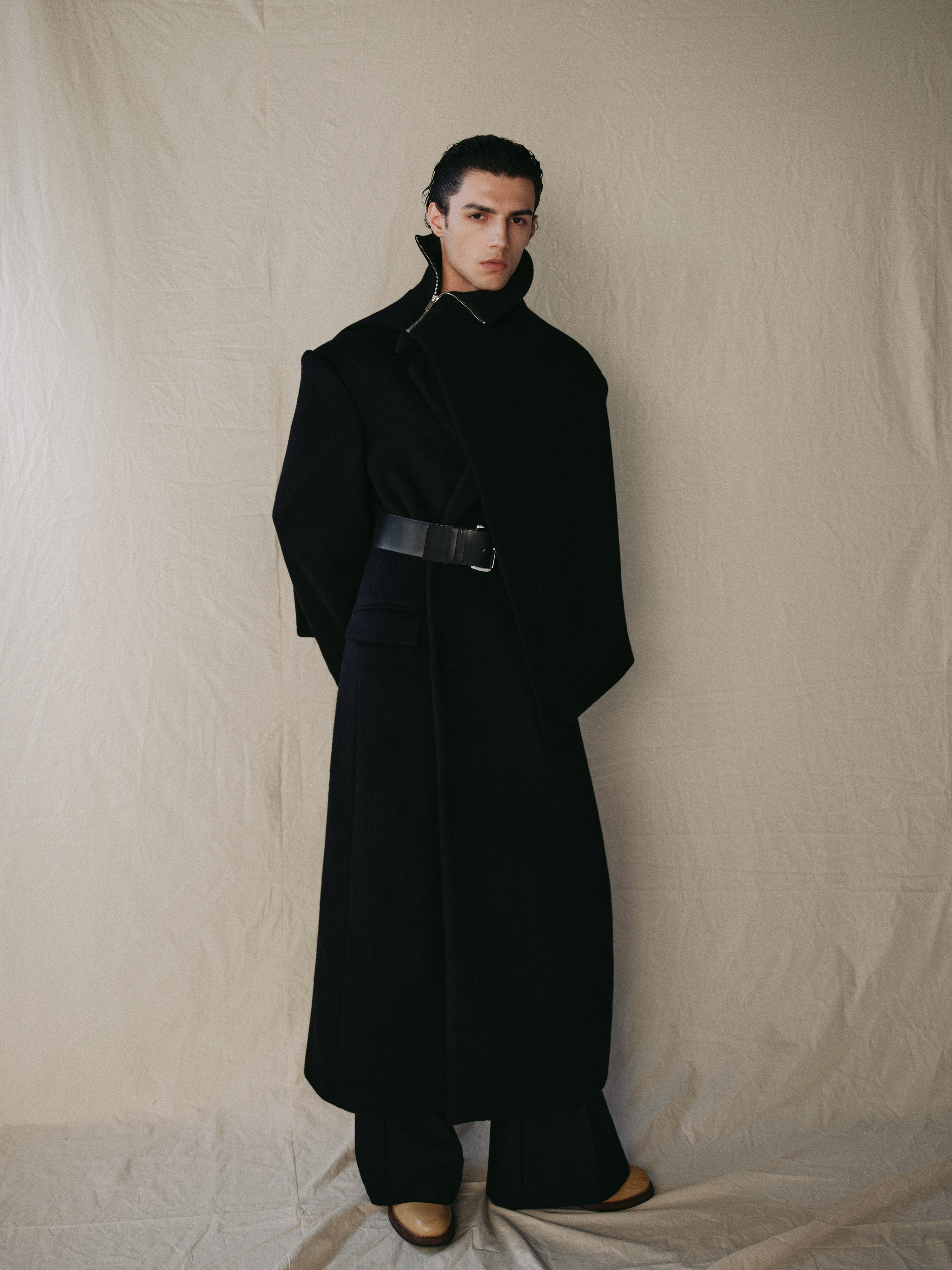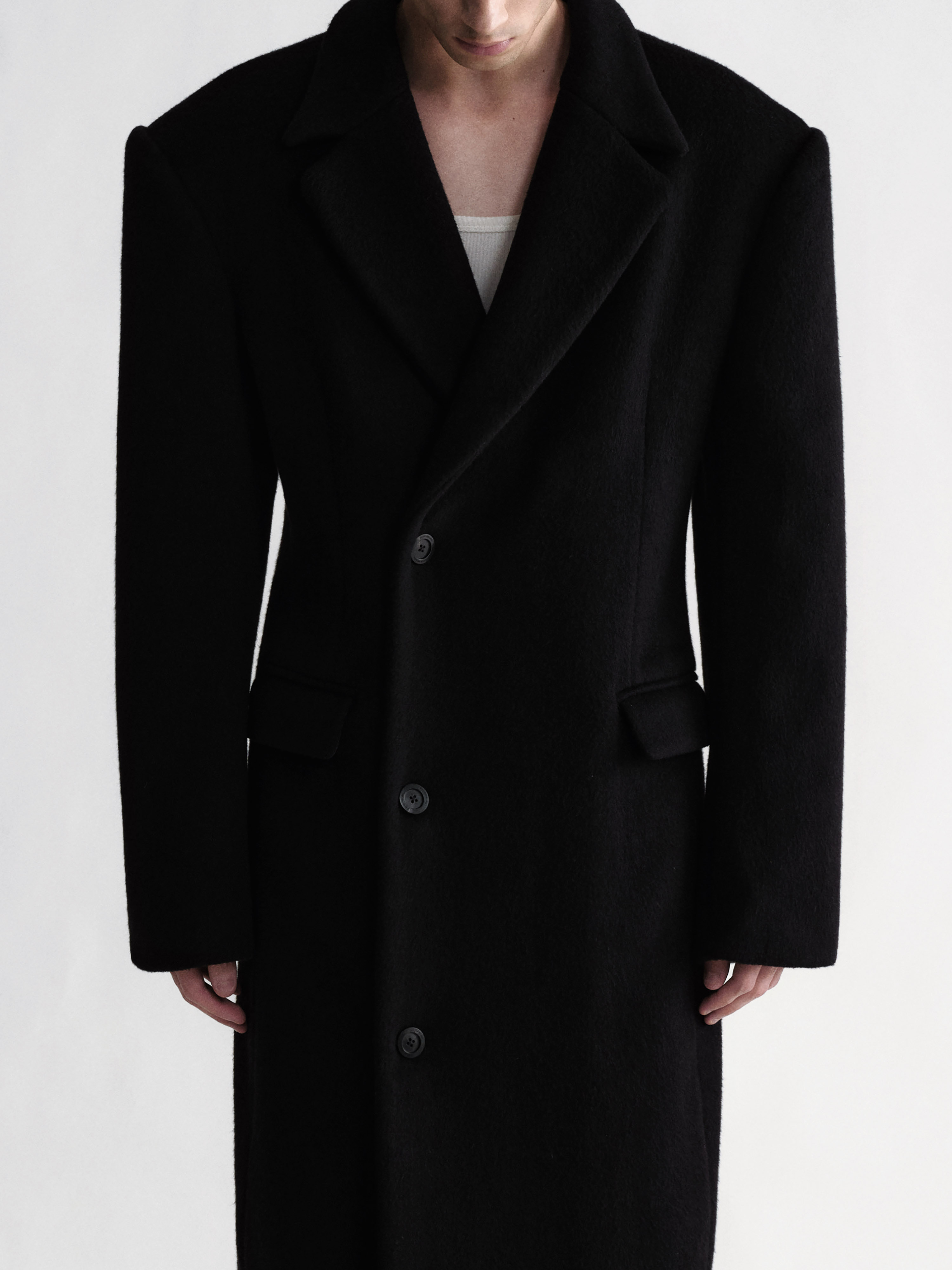 Sehenblau Designer Men's Clothing Minimalist Waist-Cinching Black Long Single-Breasted Wool Coat Woolen Jacket