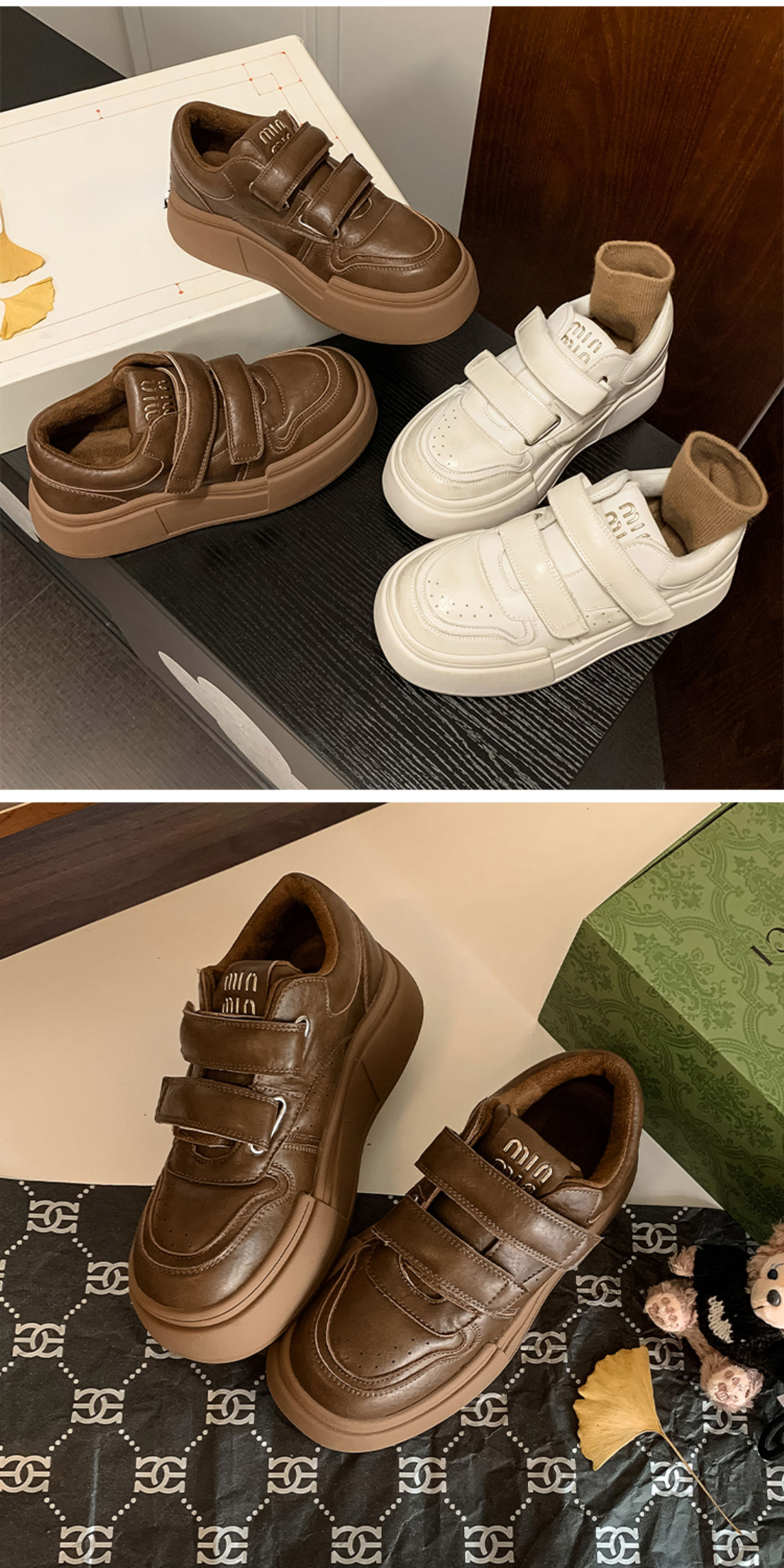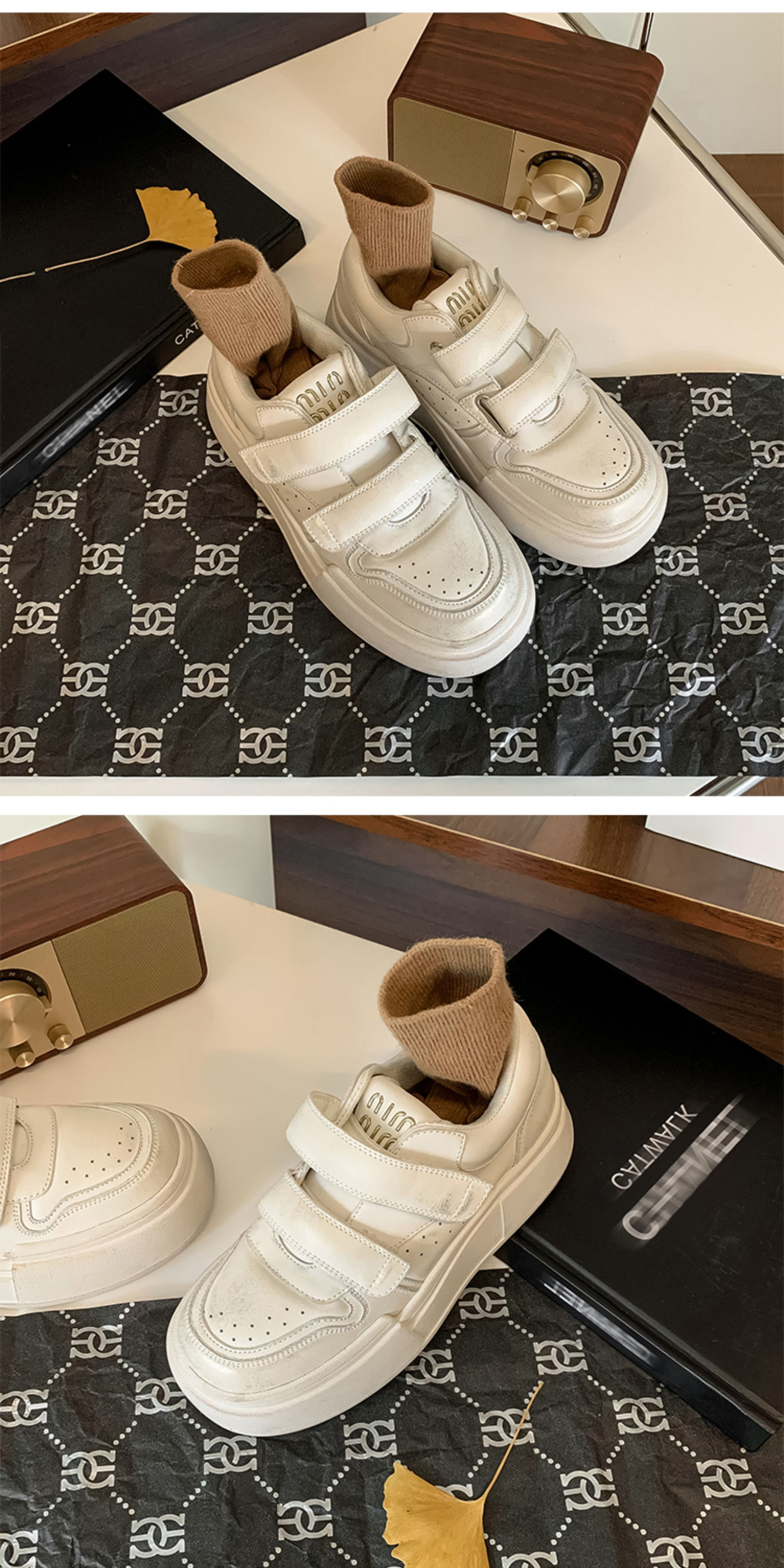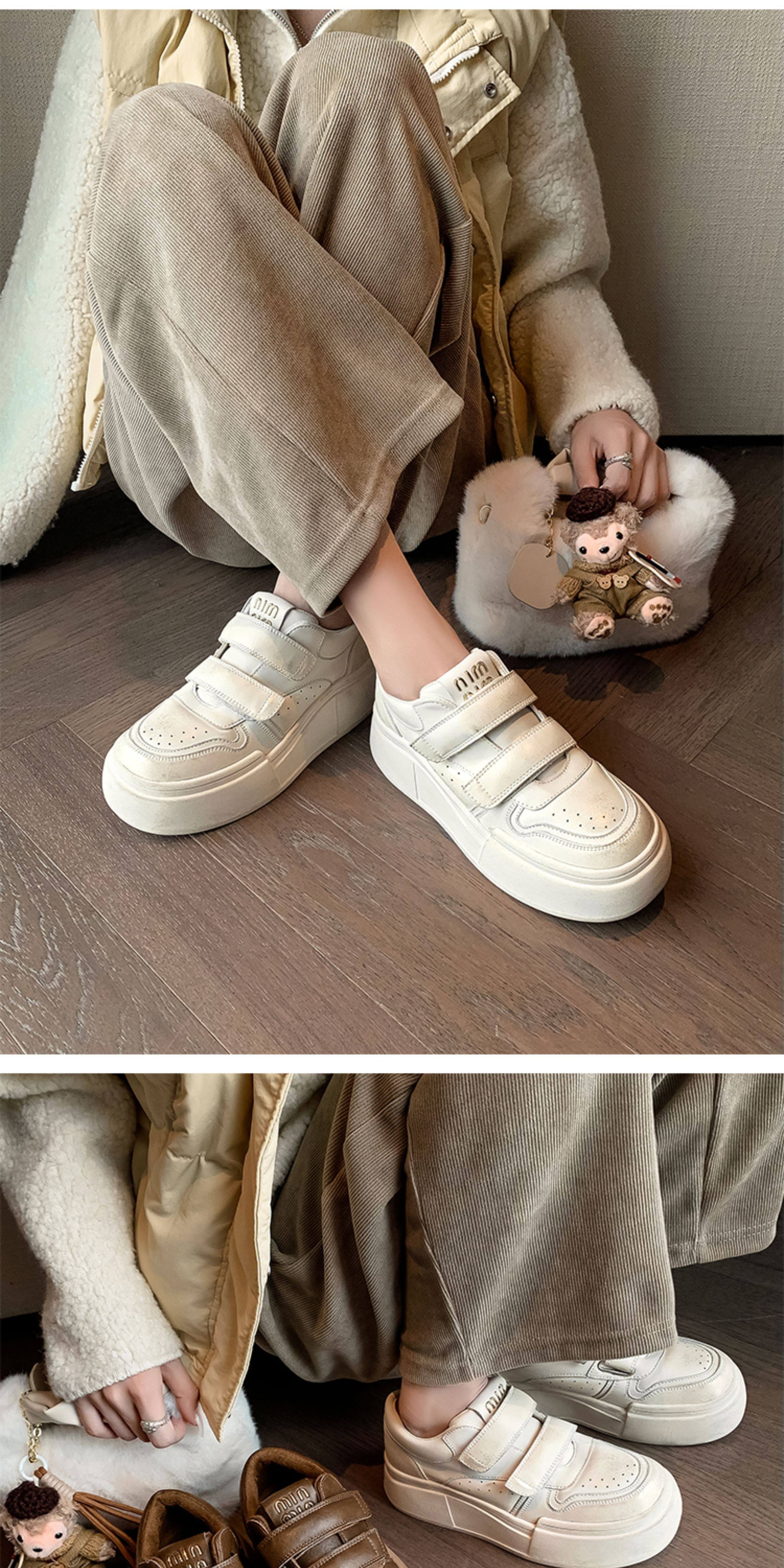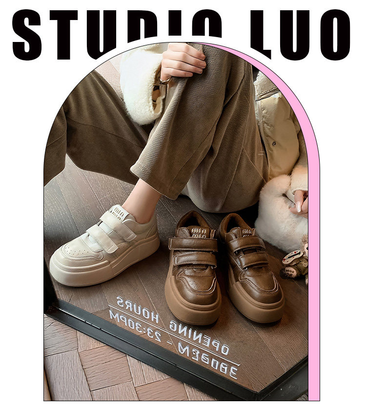 Hong Kong Genuine Leather Thick-Soled Sneakers Platform Shoes for Women 2025 Autumn and Winter New Casual Versatile Round-Toe White Shoes