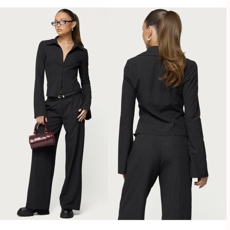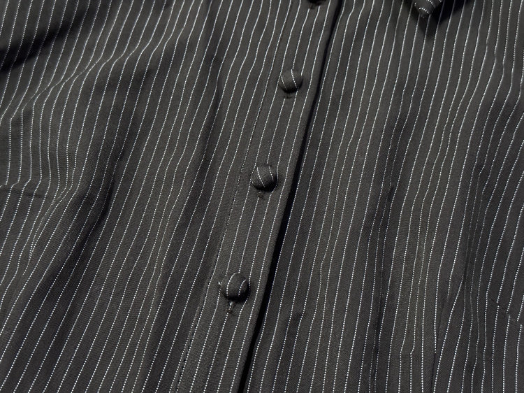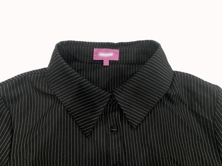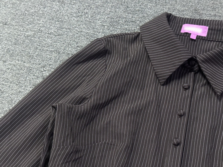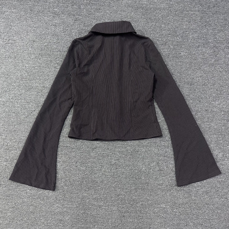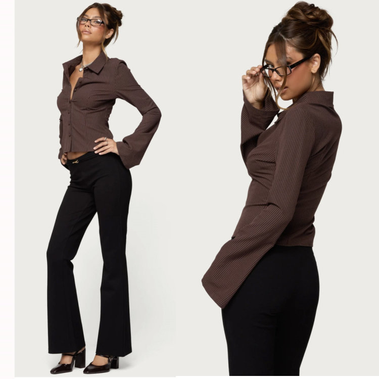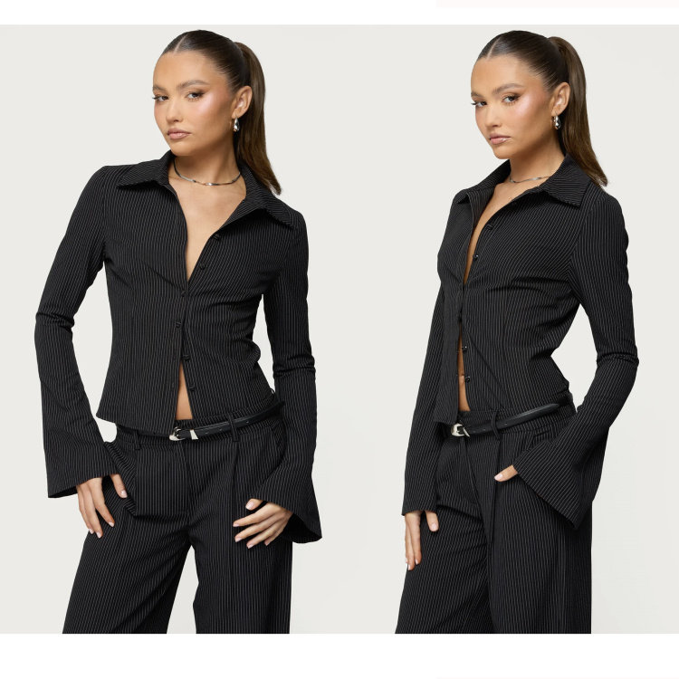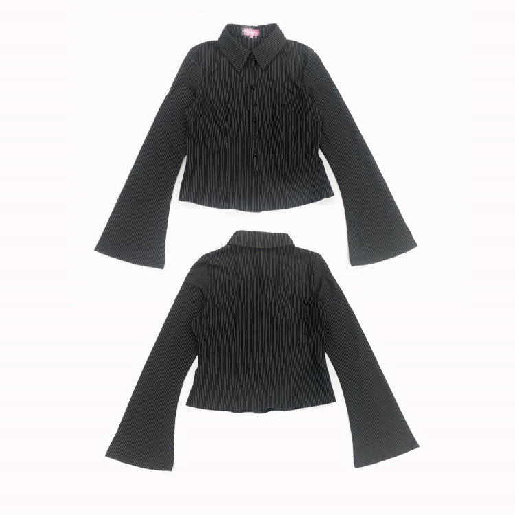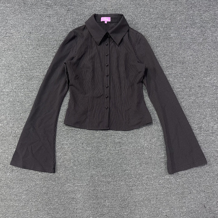 Edi High-Fashion, Sophisticated, Stylish, Slim-Fitting, Bell-Sleeve, Striped, Collared Shirt, Export Surplus Stock