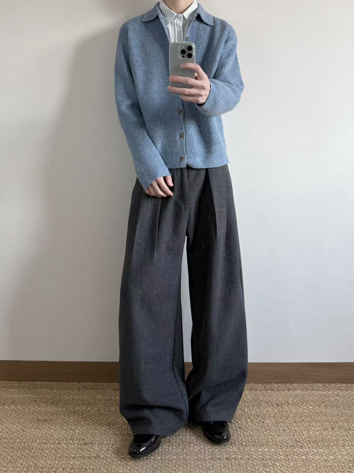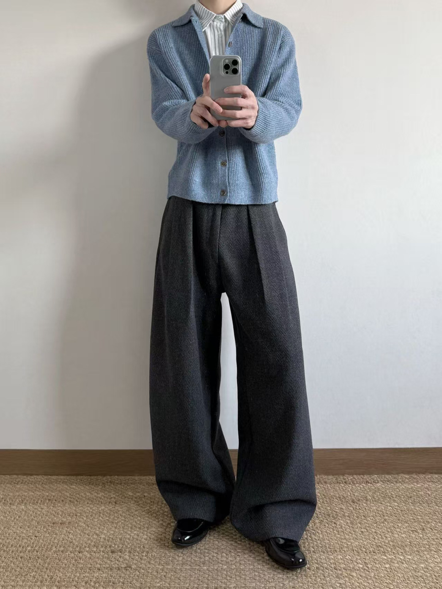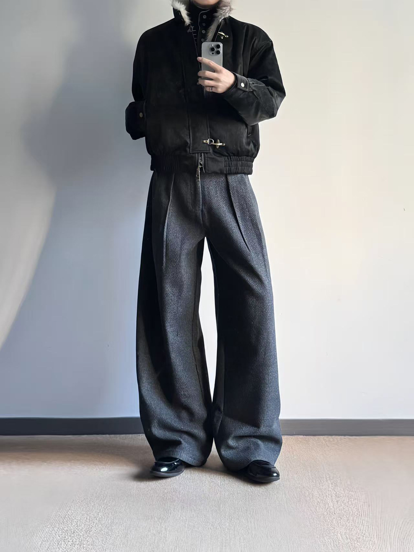 Manuscript Scimitar Woolen Trousers, I-Shaped Pleated Wool Blend Textured A-Line Commuter Autumn and Winter Trousers