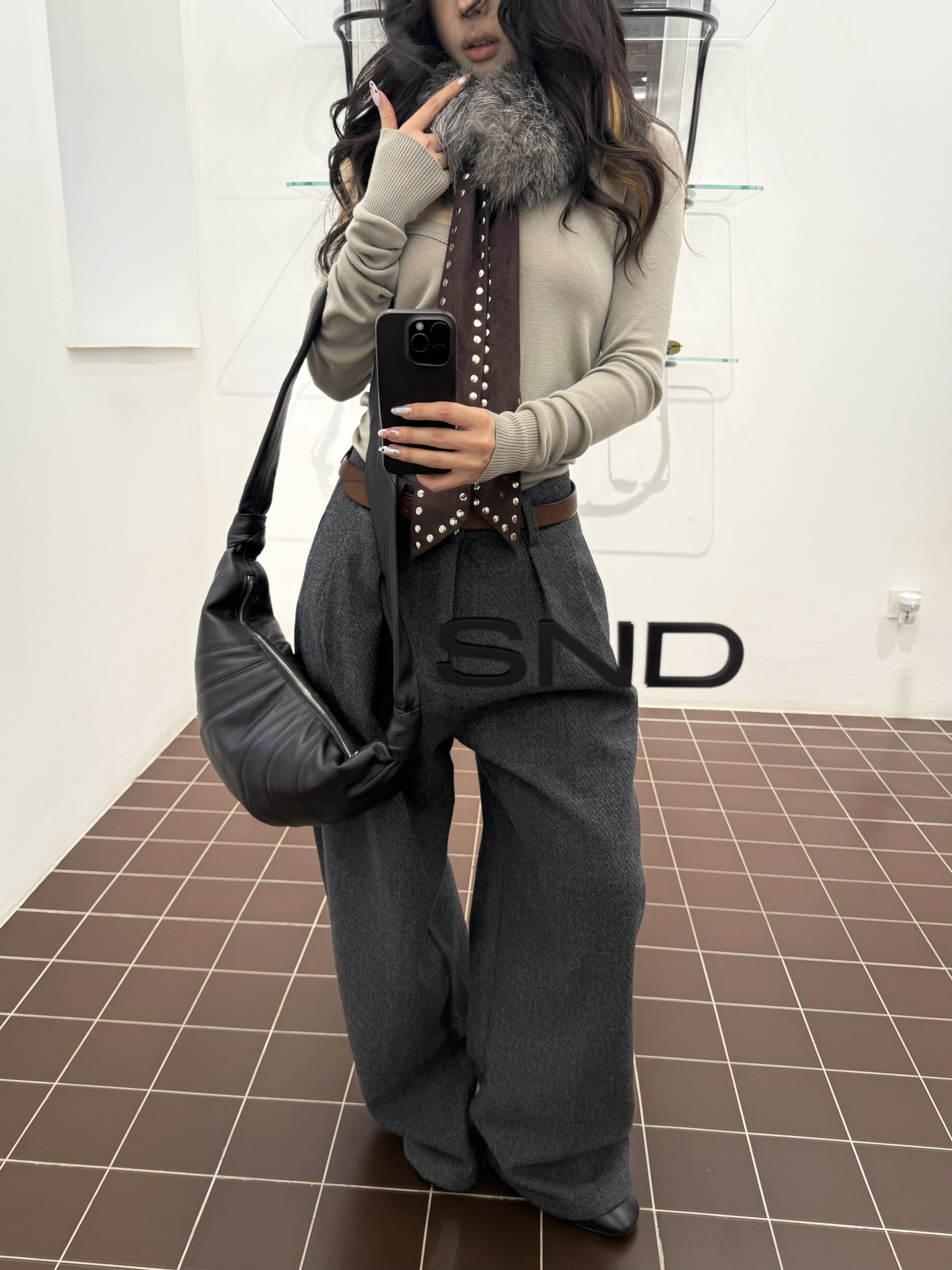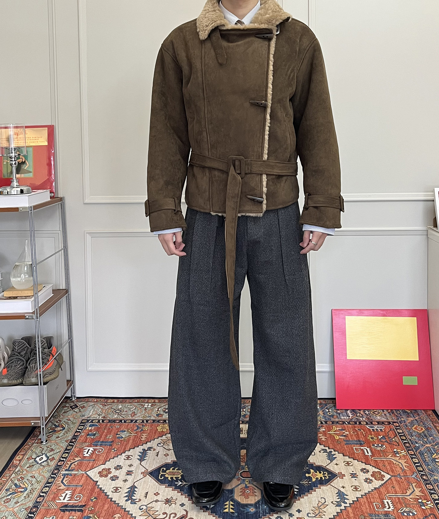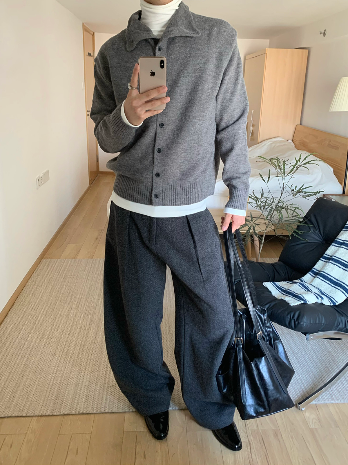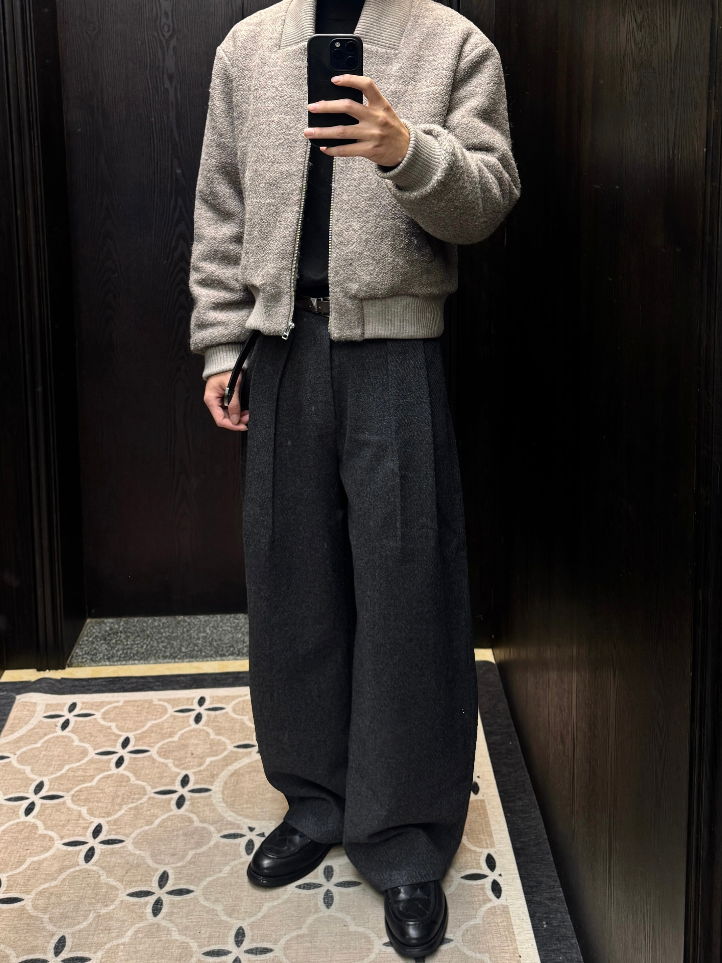 Manuscript Scimitar Woolen Trousers, I-Shaped Pleated Wool Blend Textured A-Line Commuter Autumn and Winter Trousers