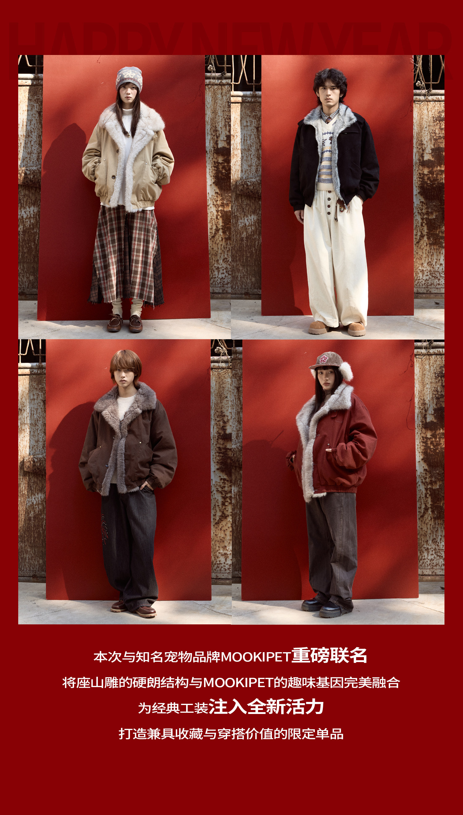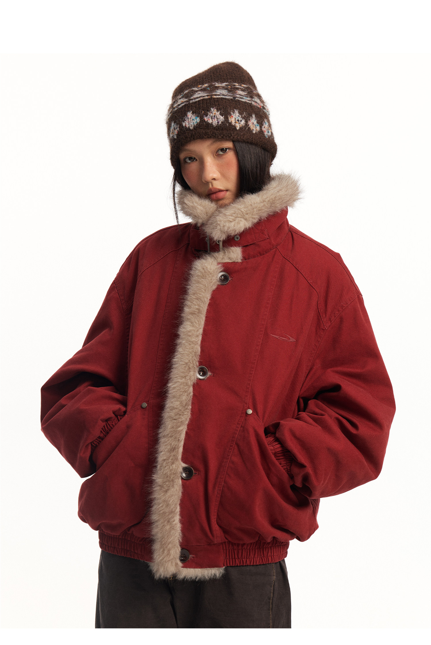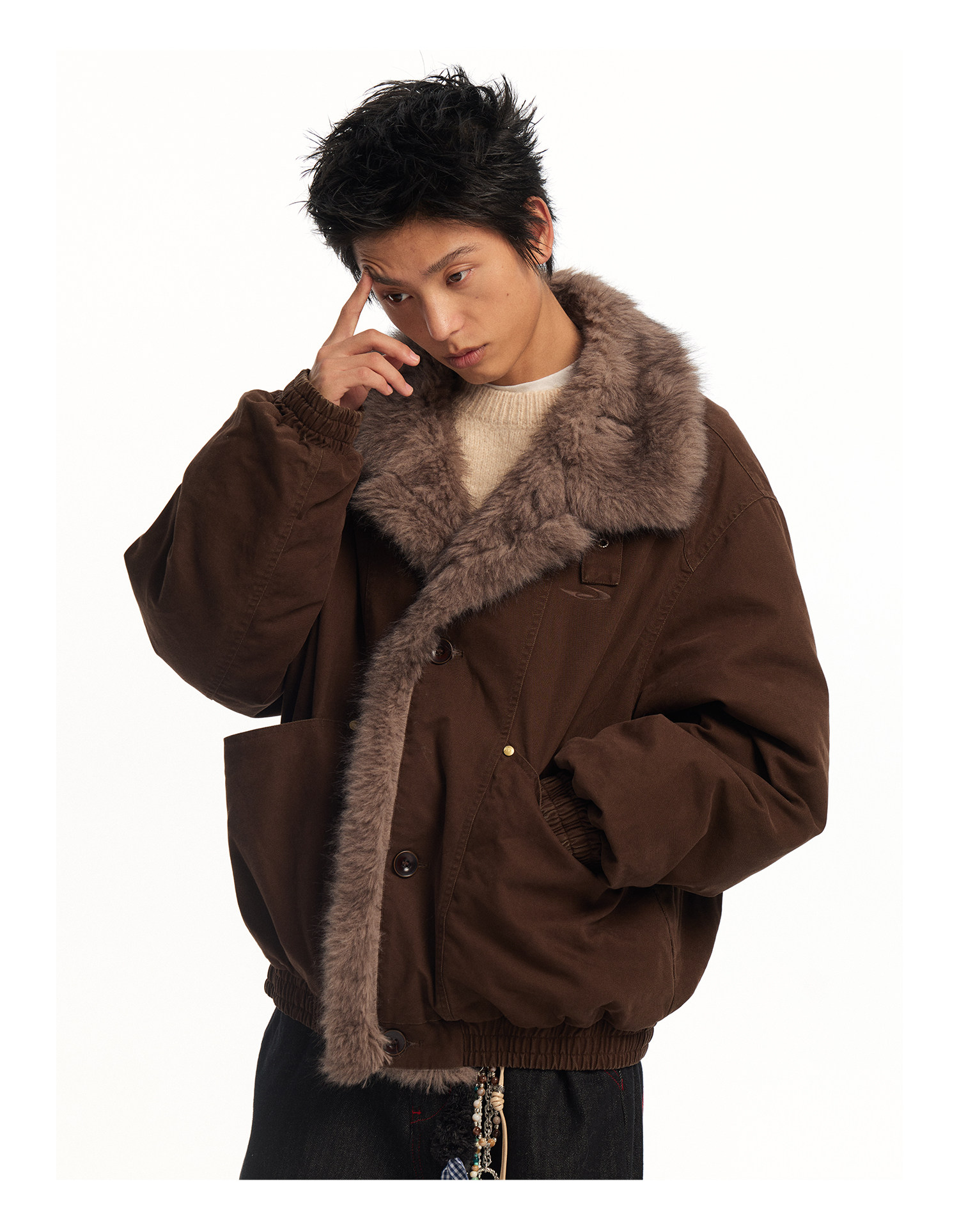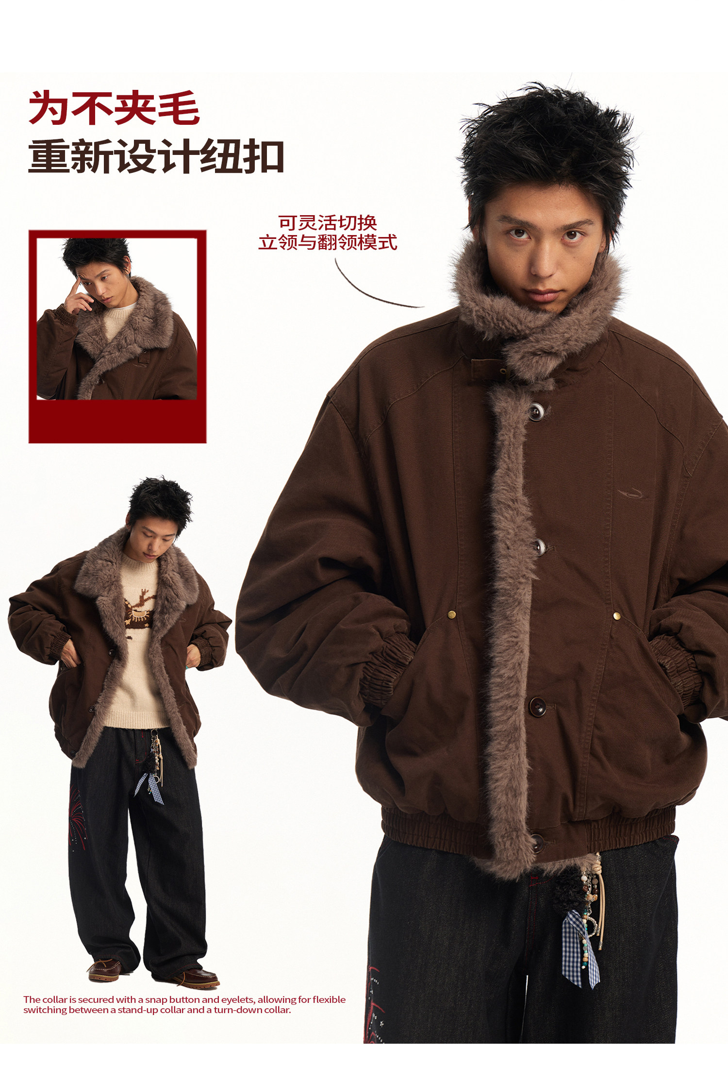 Mr. Jiangnan Newjnxs "Immediately Available" New Year Textured Workwear with Mountain Carving and Fur Collar Patchwork Cotton Jacket