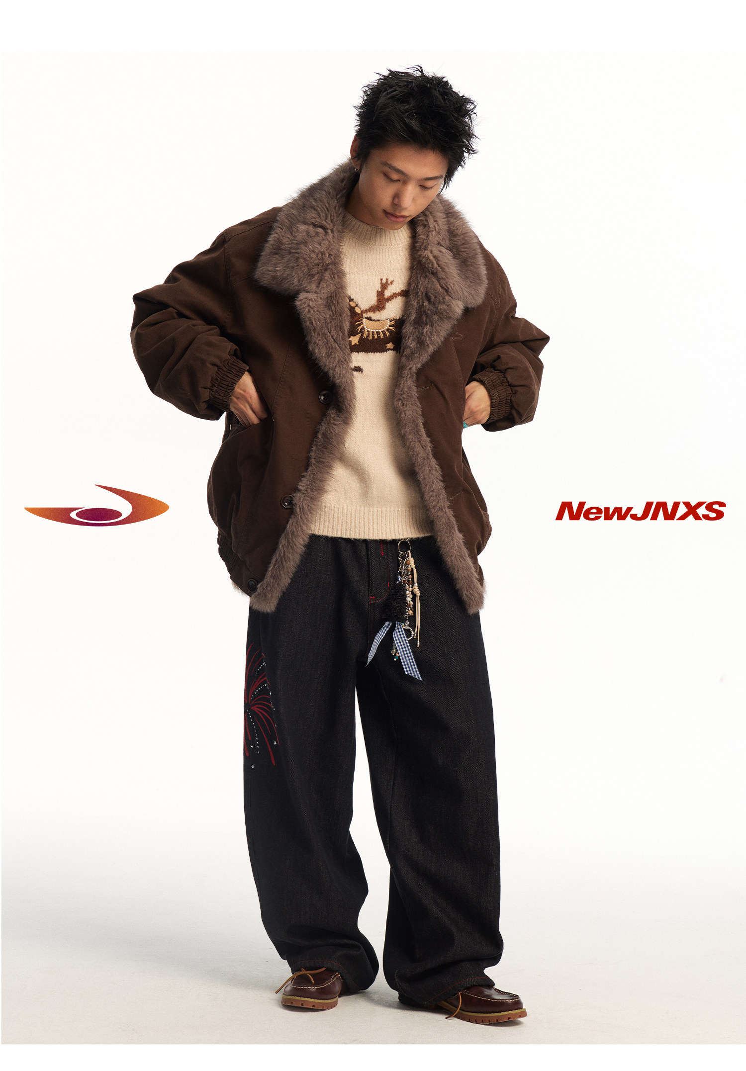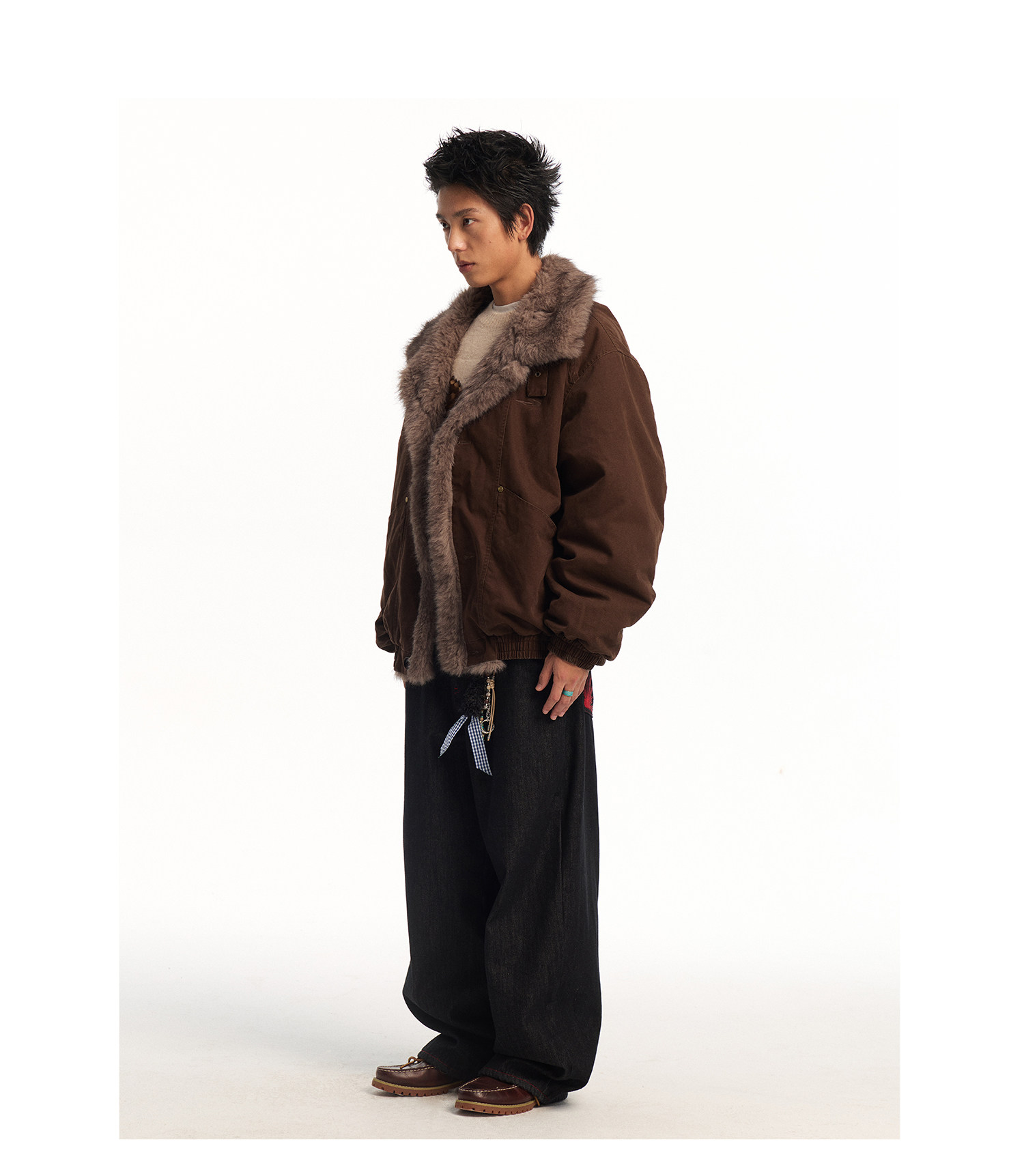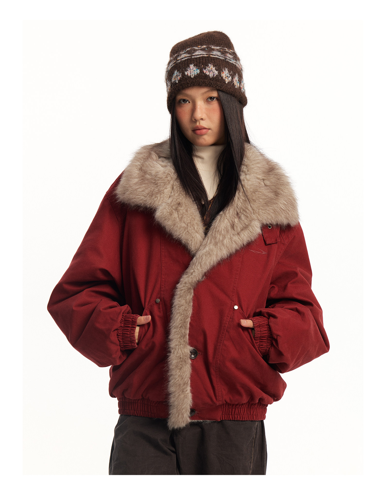 Mr. Jiangnan Newjnxs "Immediately Available" New Year Textured Workwear with Mountain Carving and Fur Collar Patchwork Cotton Jacket