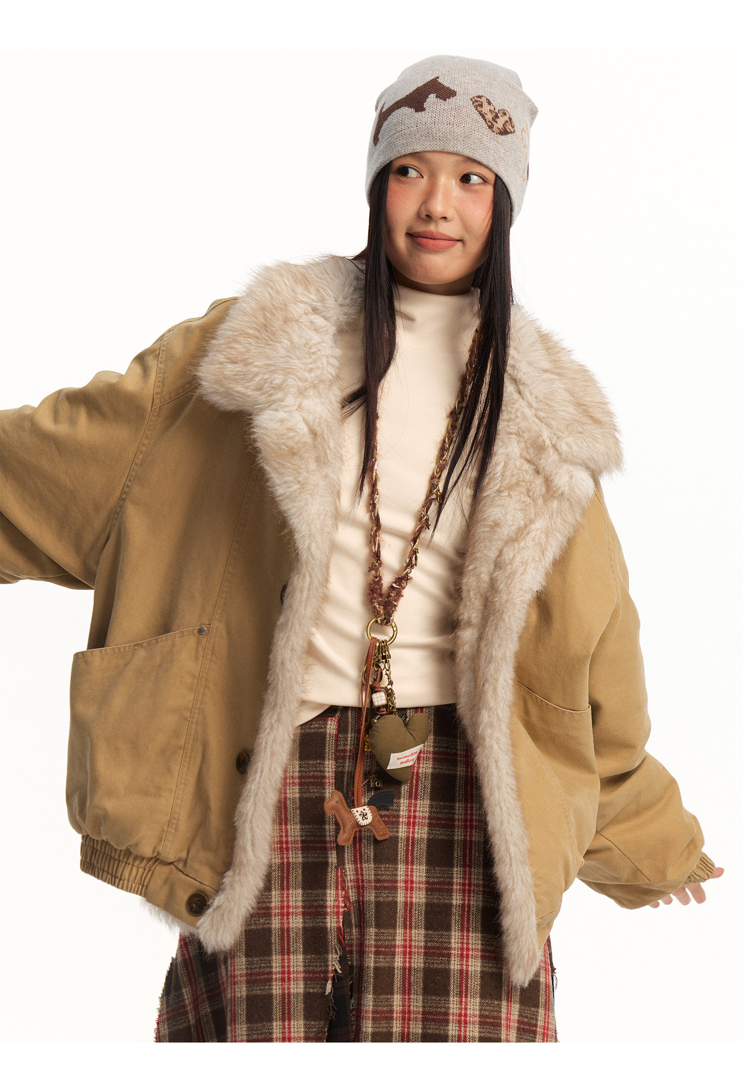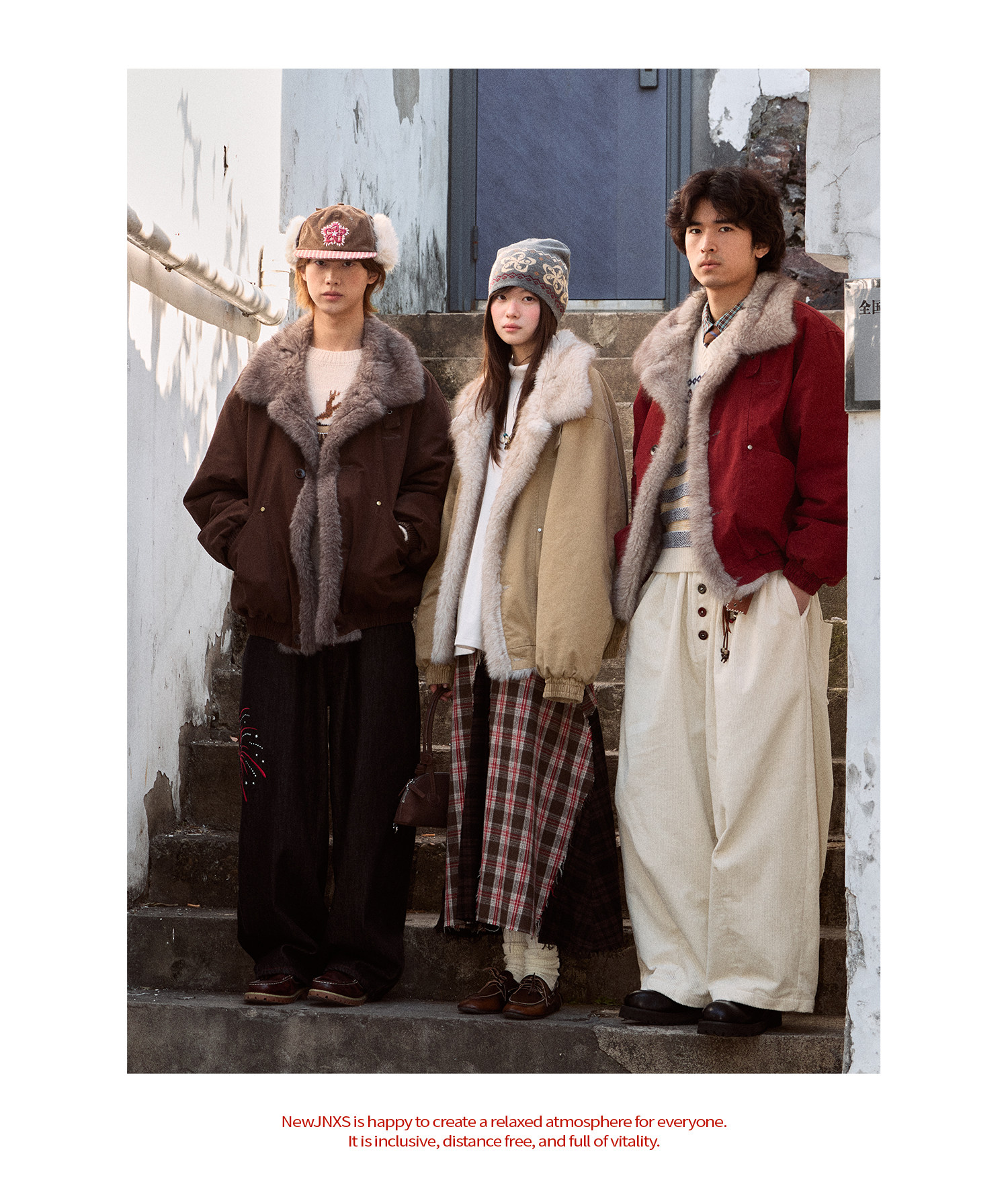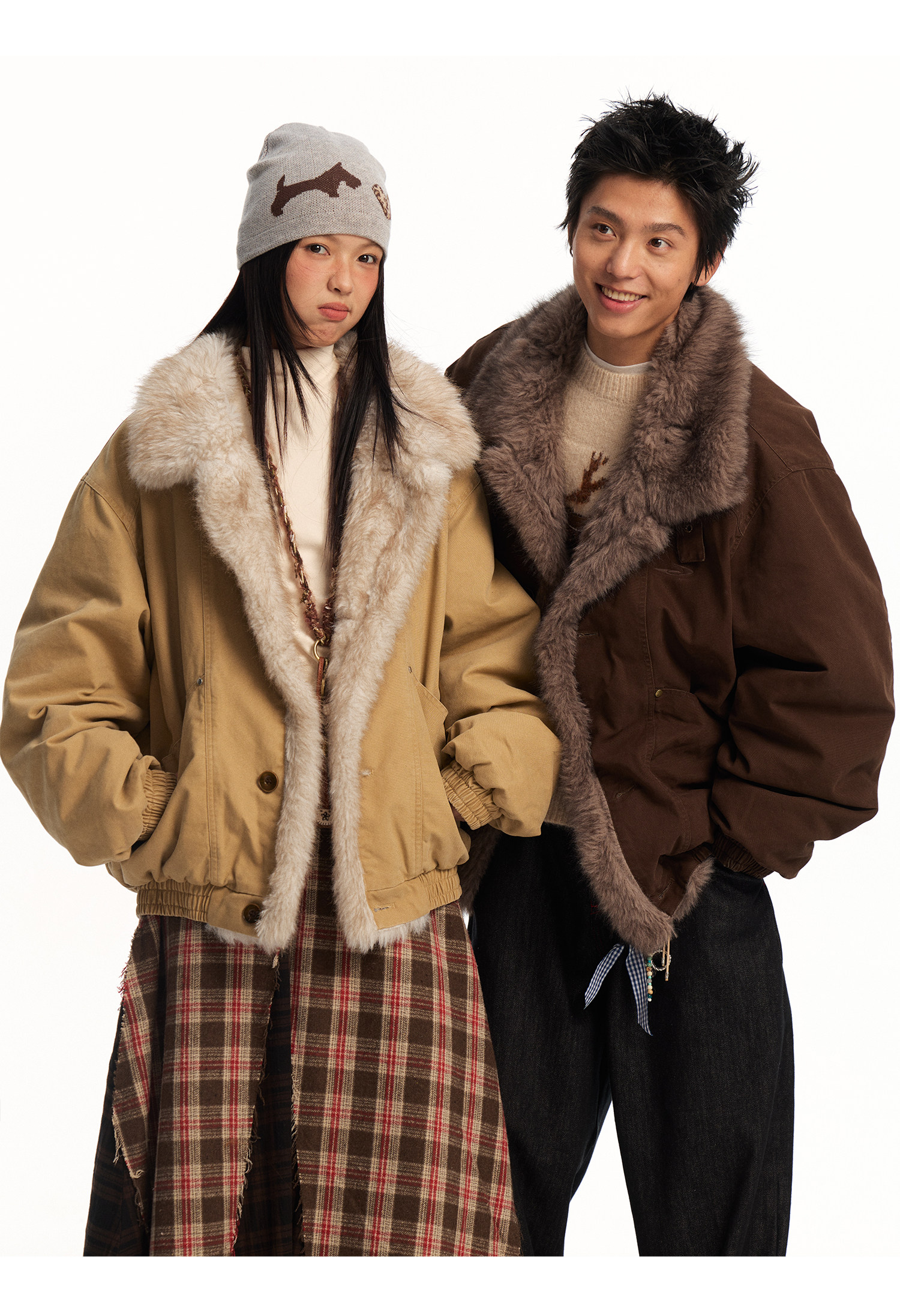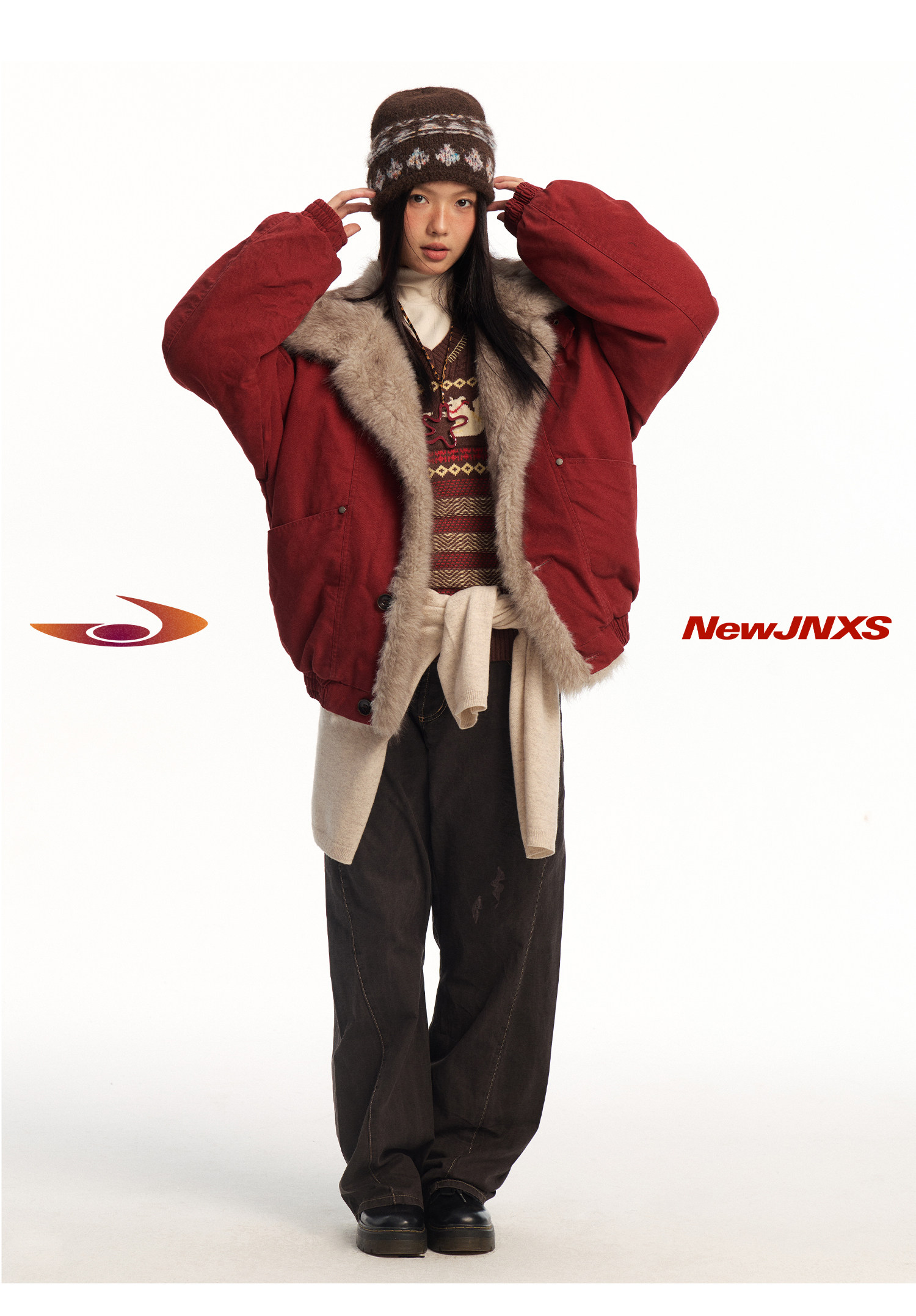 Mr. Jiangnan Newjnxs "Immediately Available" New Year Textured Workwear with Mountain Carving and Fur Collar Patchwork Cotton Jacket