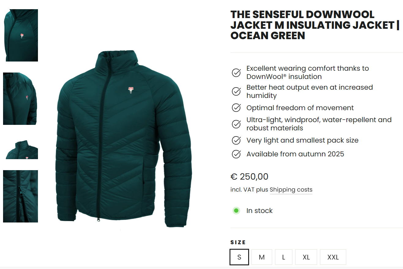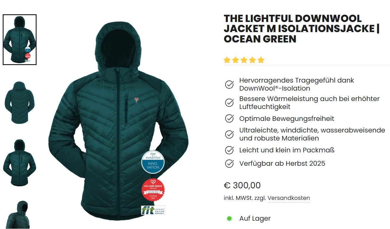 German Grüezi Bag Wool + down Filling 300 Euros~ Men's Outdoor Lightweight down Jacket Waterproof