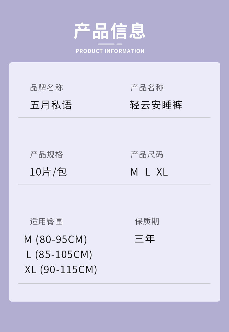 May Whisper Light Cloud Sleep Pants Comfortable Sleep Pants Panty Liners 10 Pieces M/L/Xl Lightweight and Dry