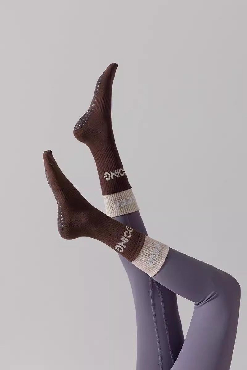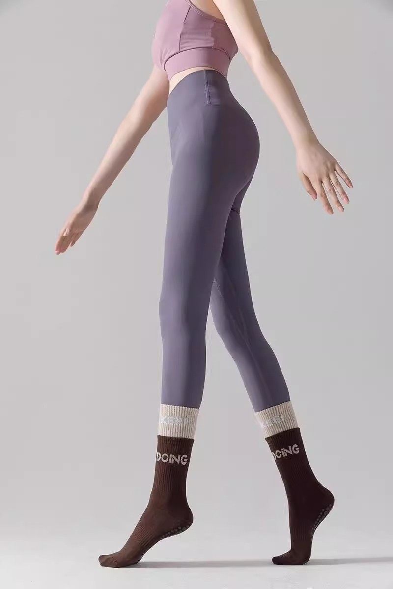 Yoga Socks, Non-Slip Socks, Women's Long Socks with Shark Pants, Fitness Sports Yoga Thickened Fake Two-Piece for Jump Rope and Dancing