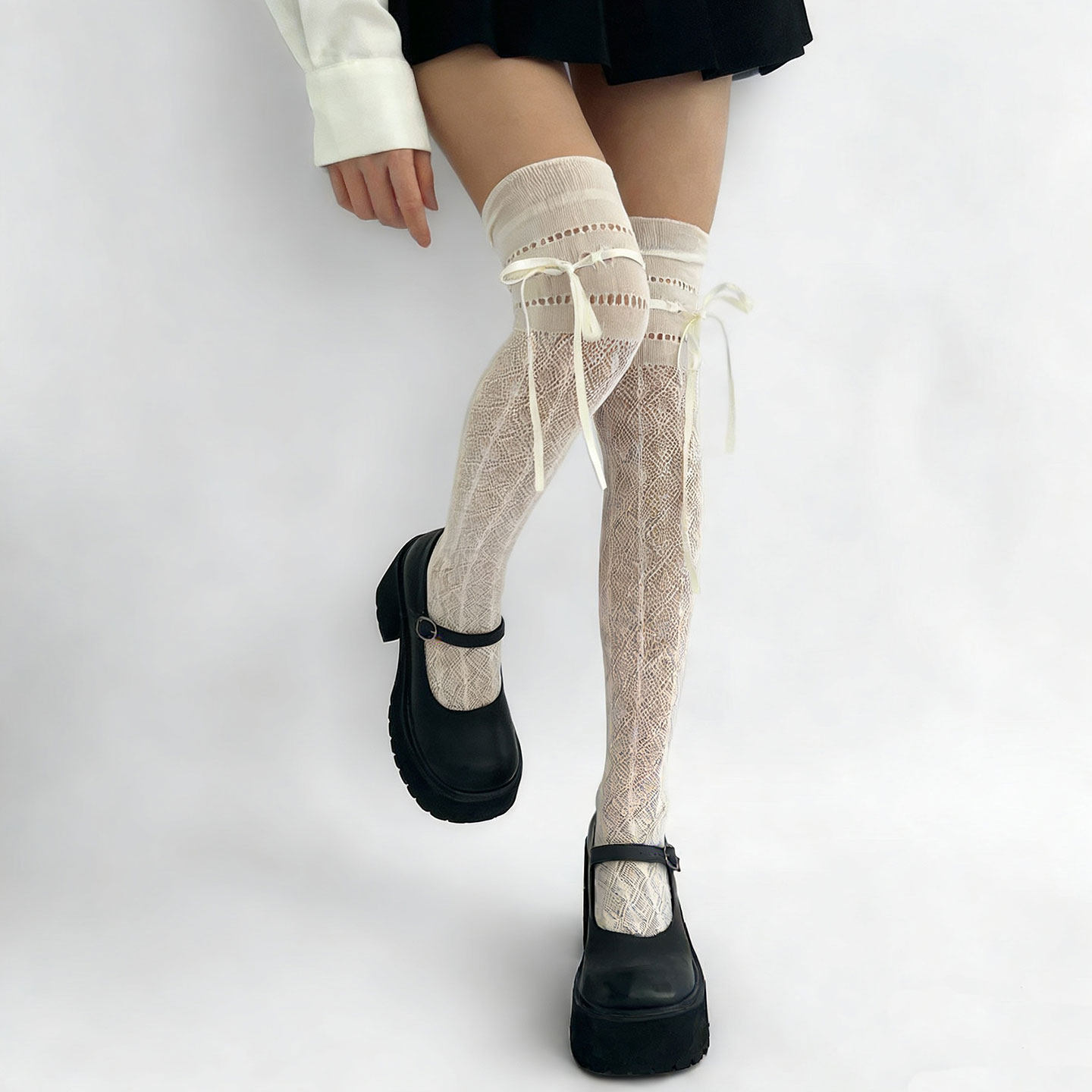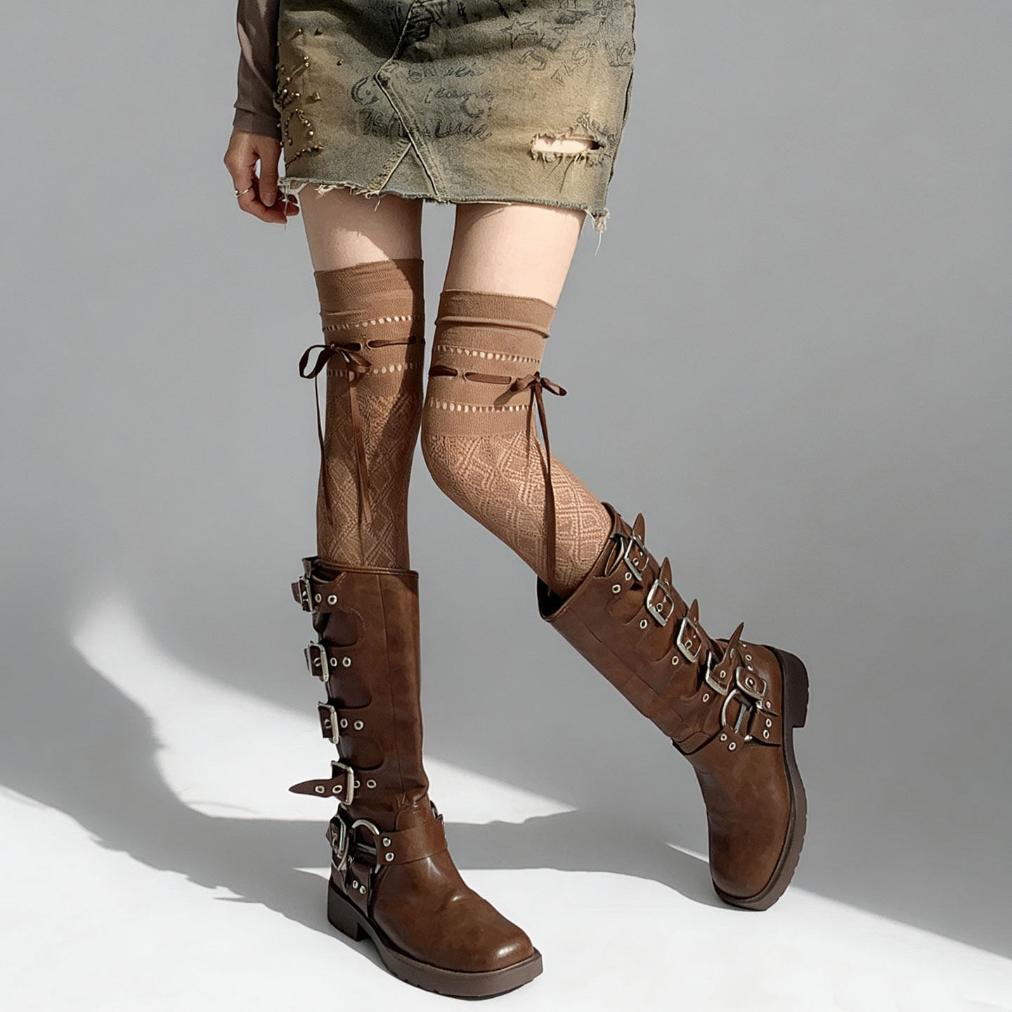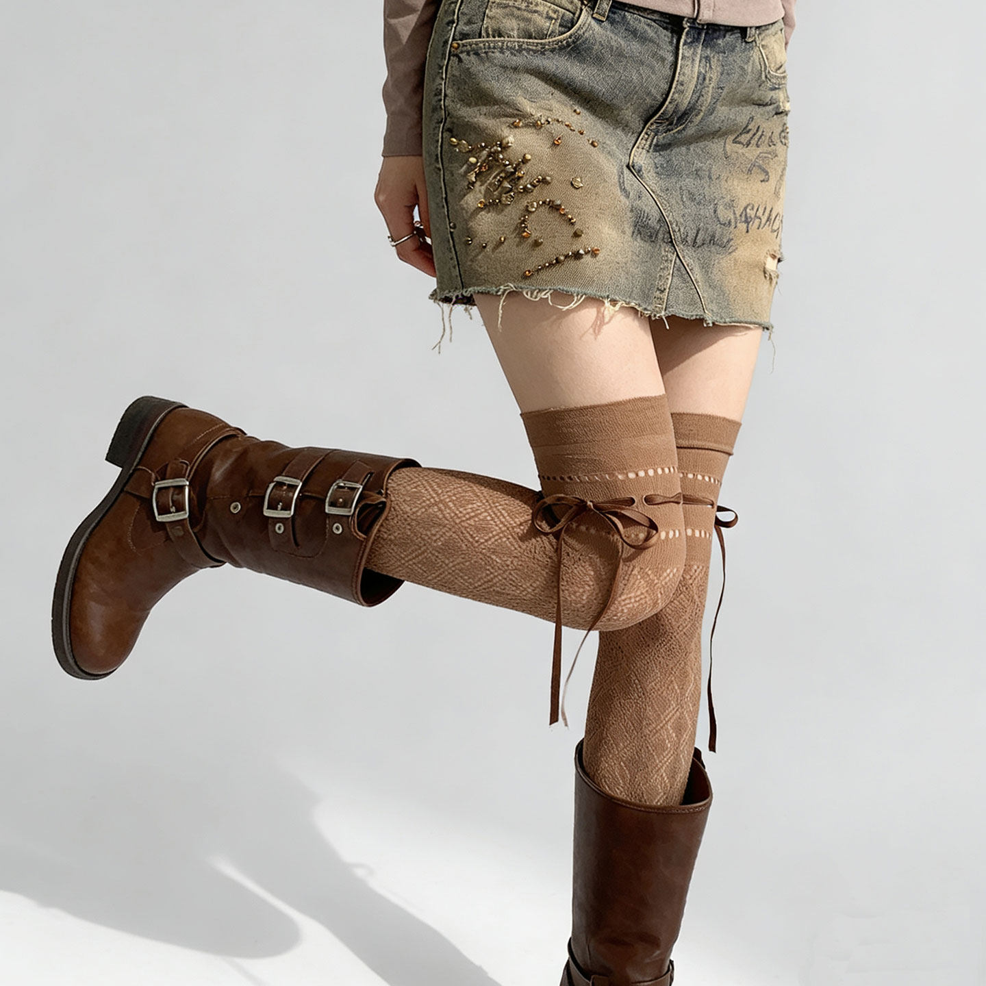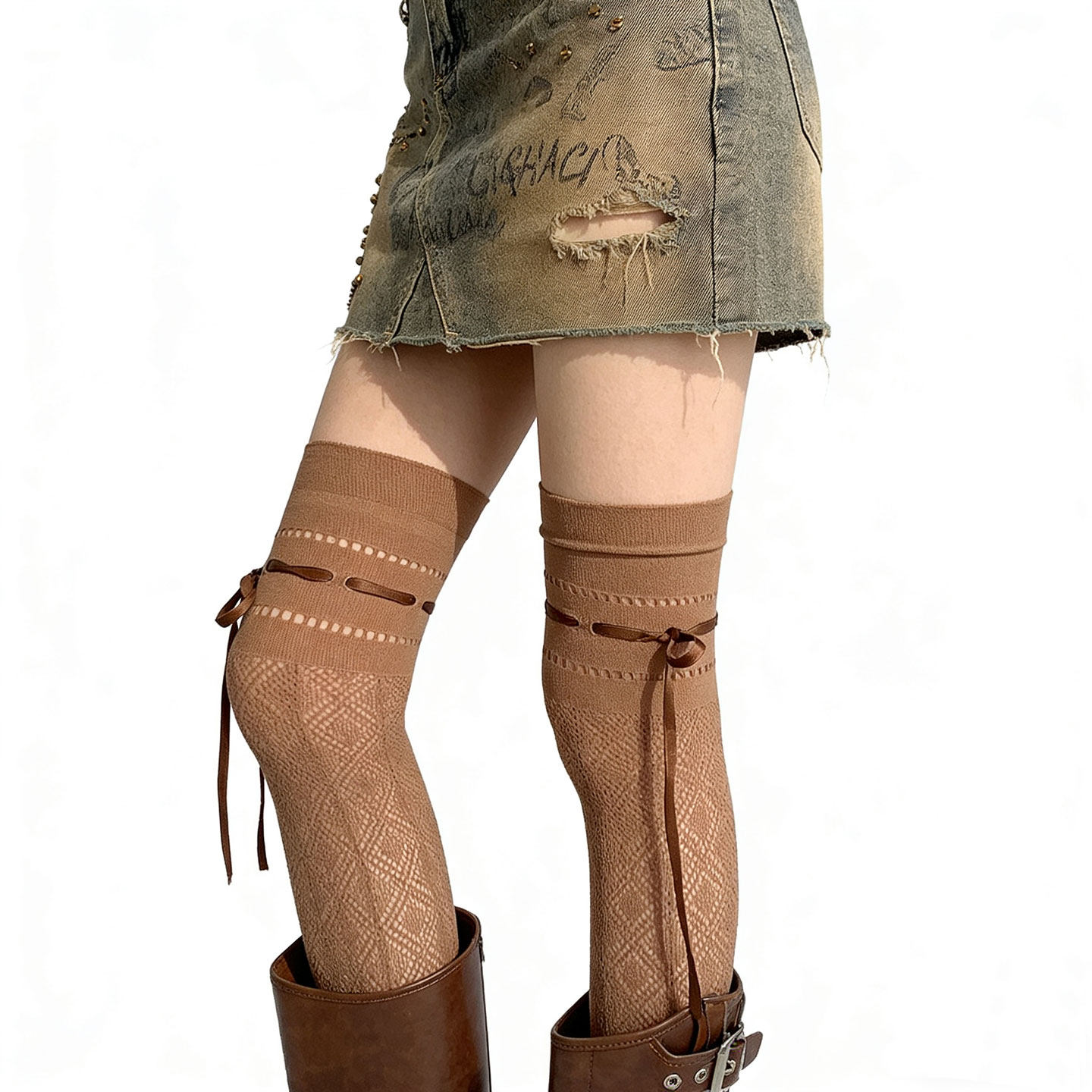 Rope-Tied Over-The-Knee Socks, Melard Long Socks, Vintage Lace, Autumn and Winter, Pure Desire Style, Slimming, Stacked Thigh Socks for Women
