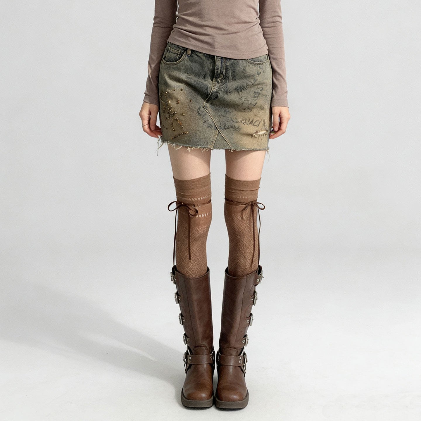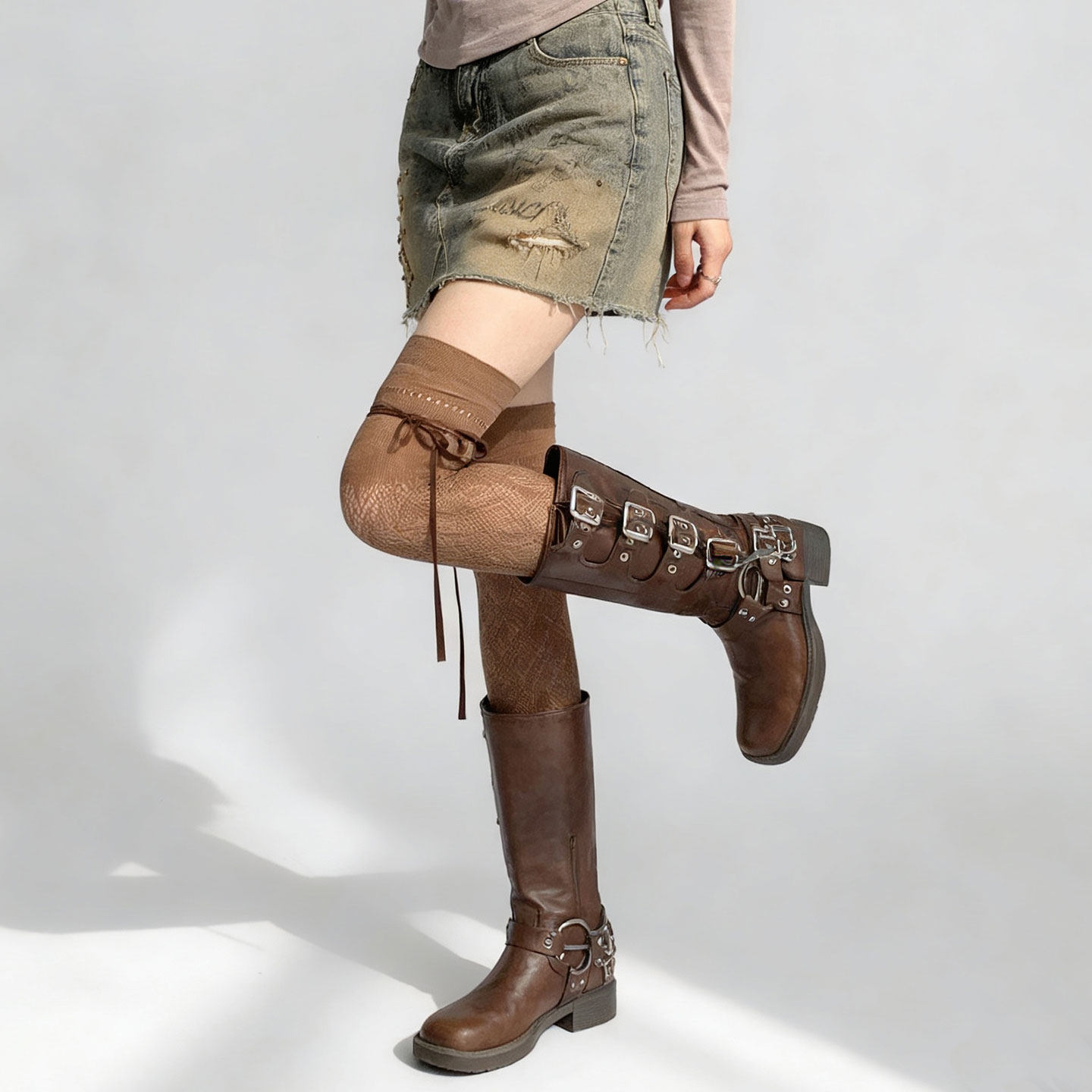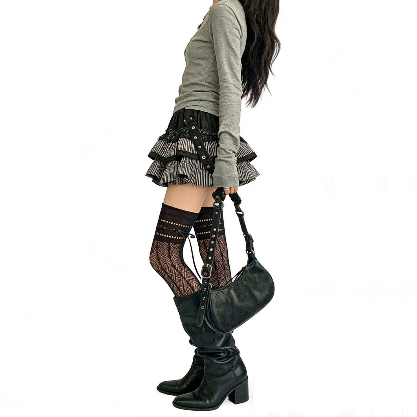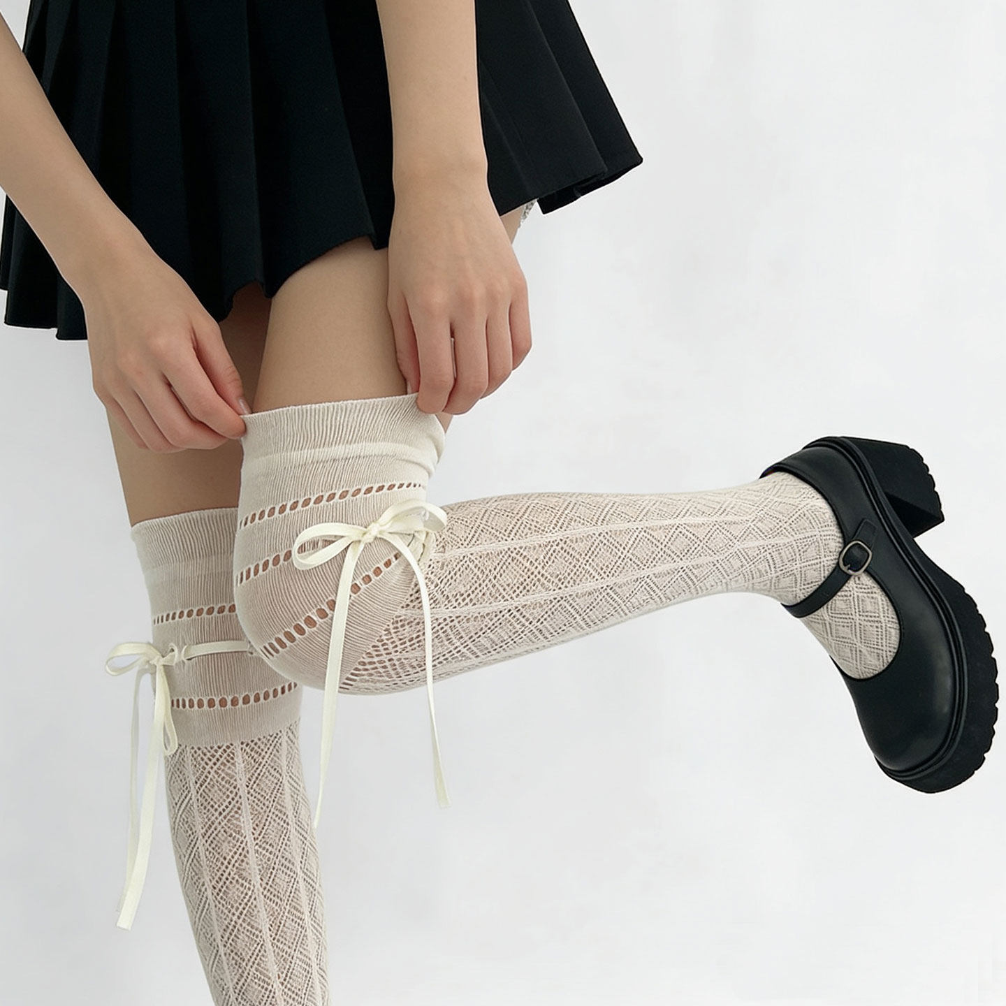 Rope-Tied Over-The-Knee Socks, Melard Long Socks, Vintage Lace, Autumn and Winter, Pure Desire Style, Slimming, Stacked Thigh Socks for Women