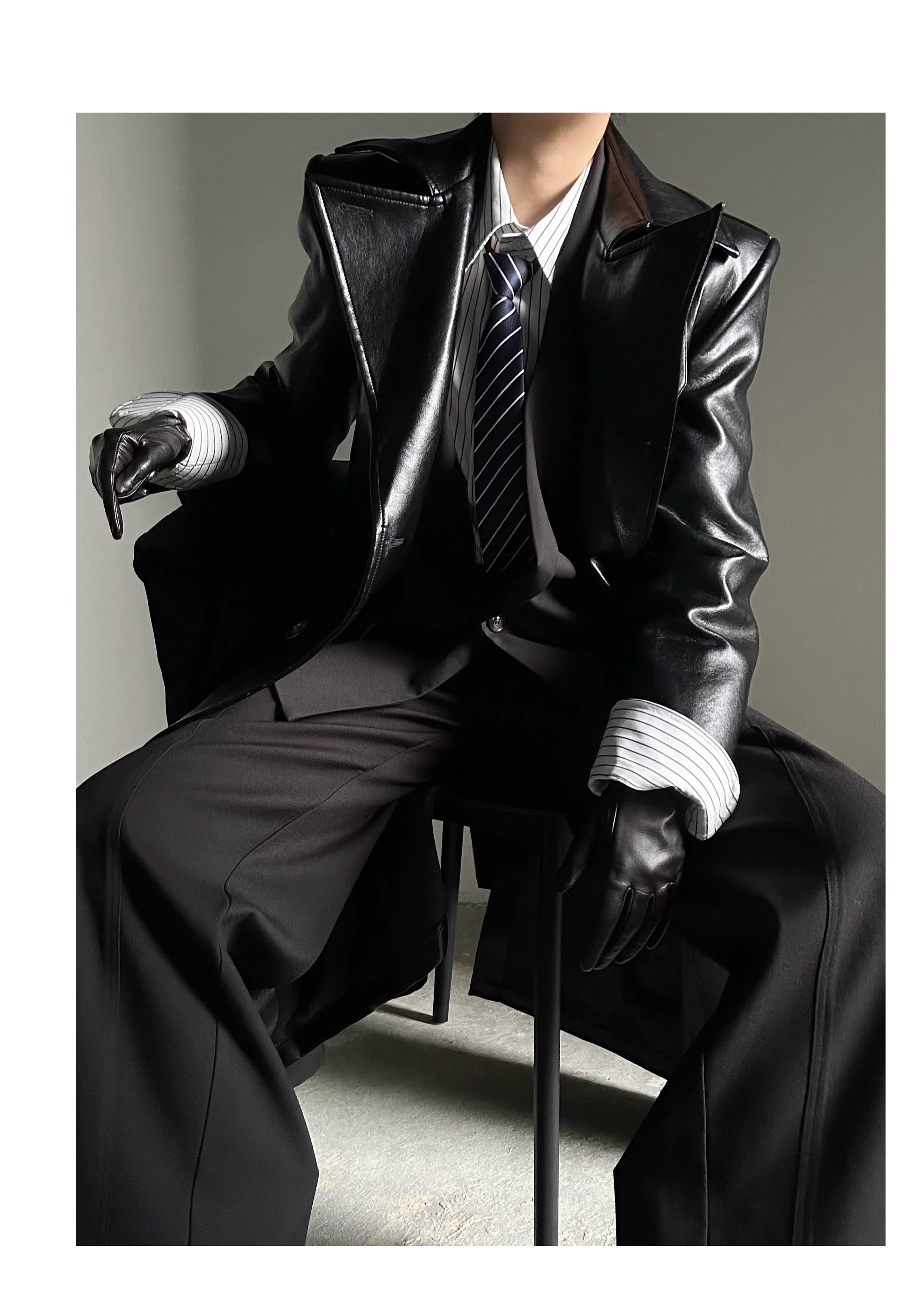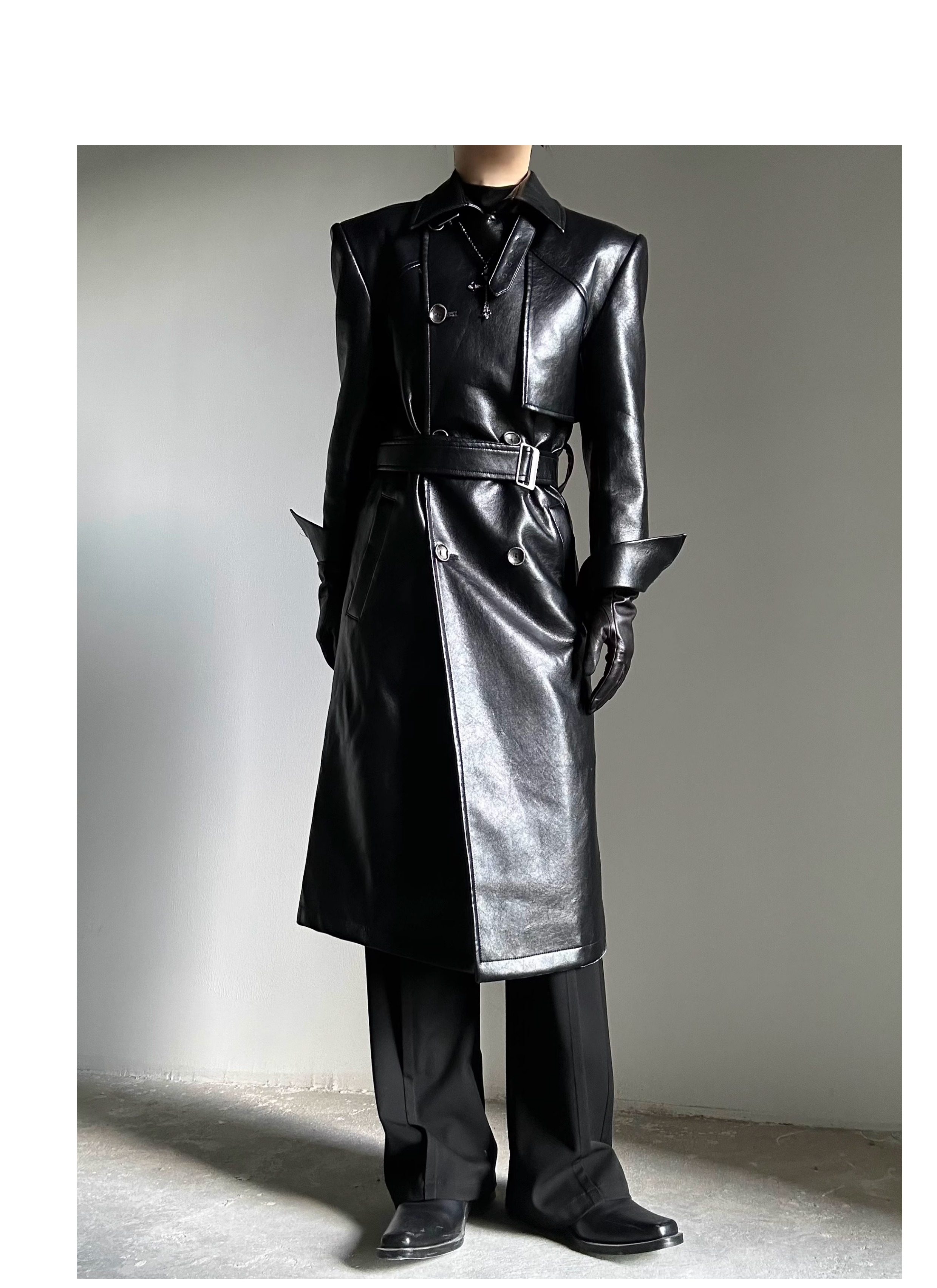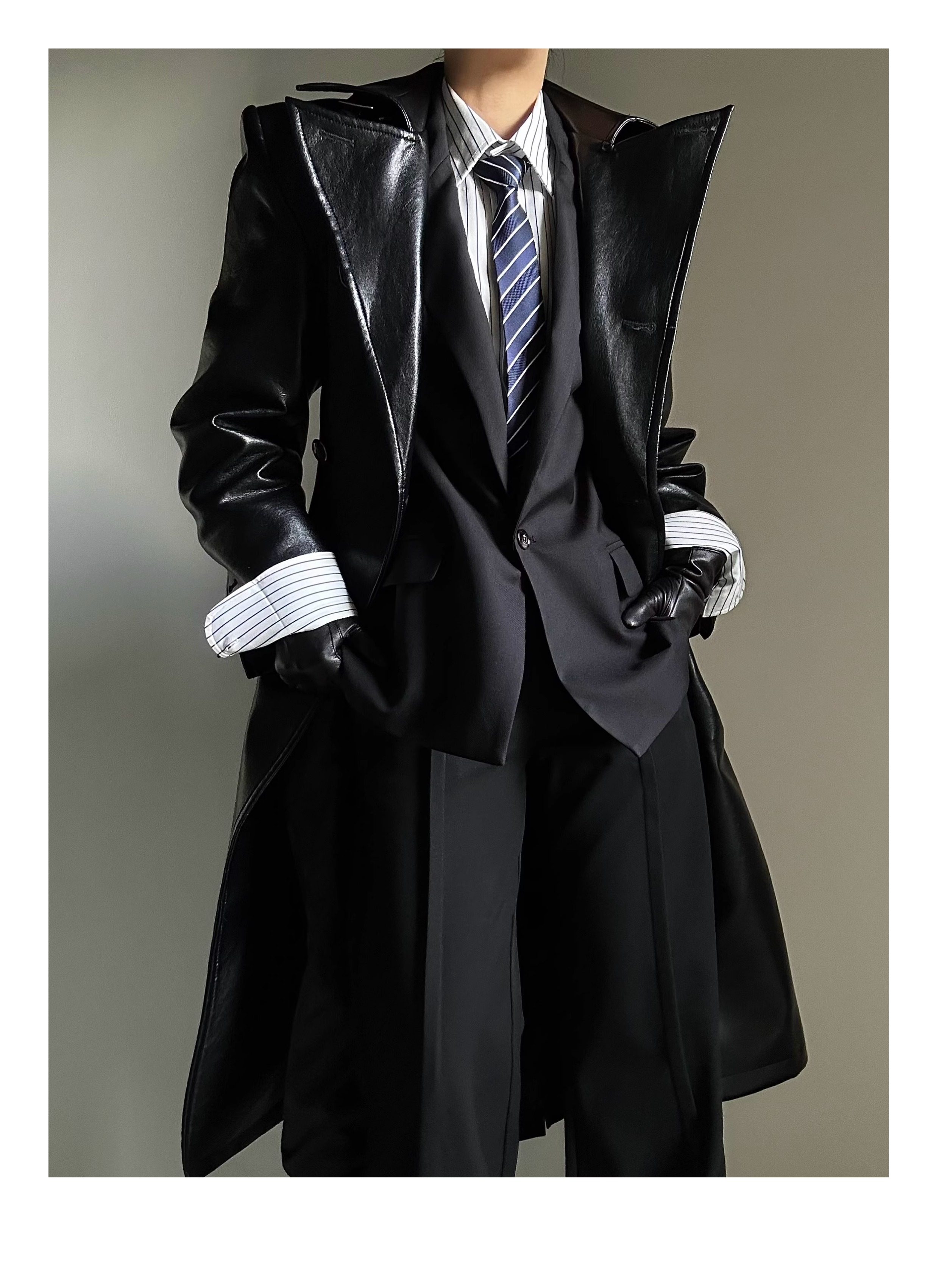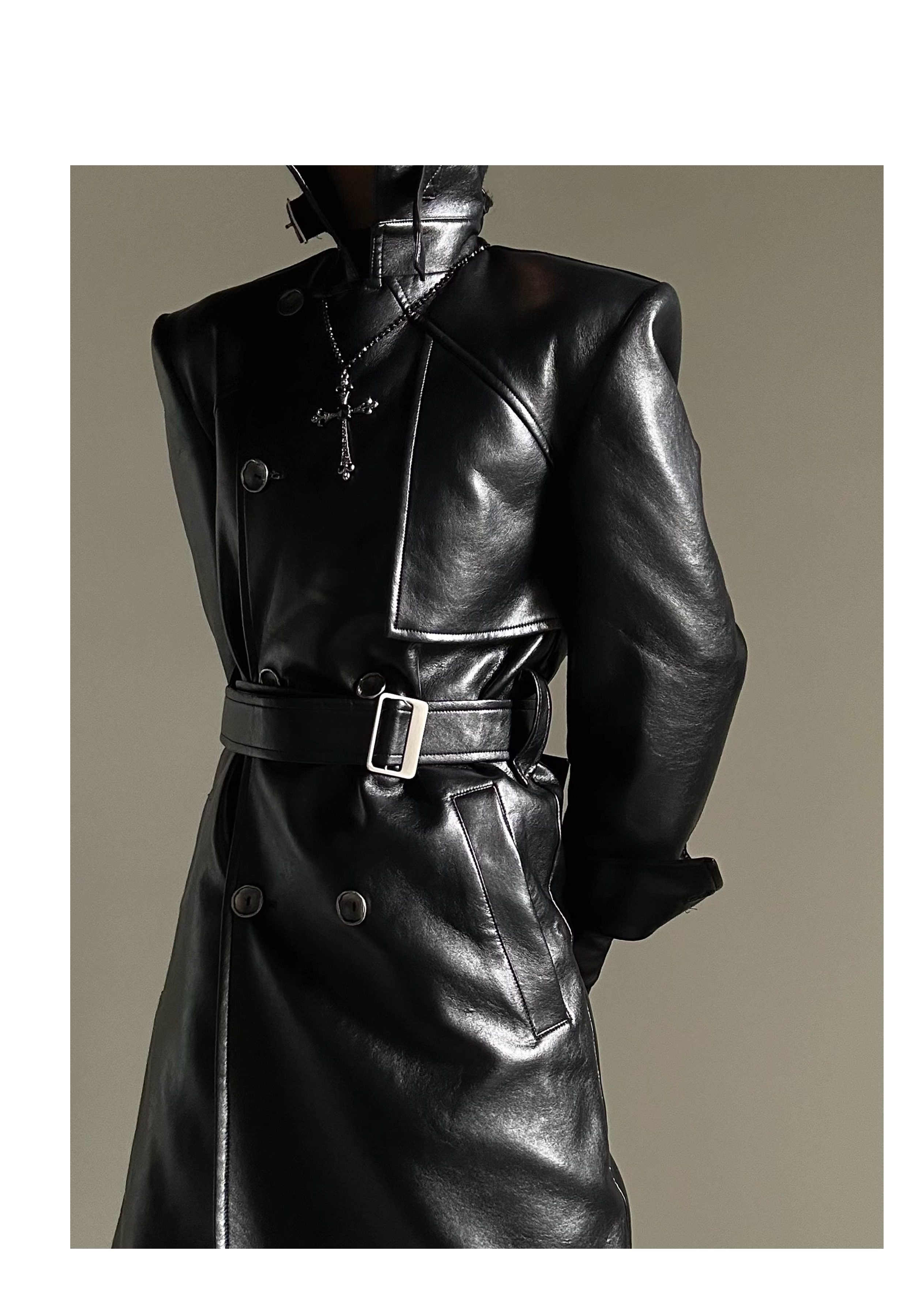 Asae Dark Style Leather Jacket, Mid-Length, Two Ways to Wear, Slimming, Waist-Cinching, Regular Shoulder Style, Silhouette Pu Coat Jacket