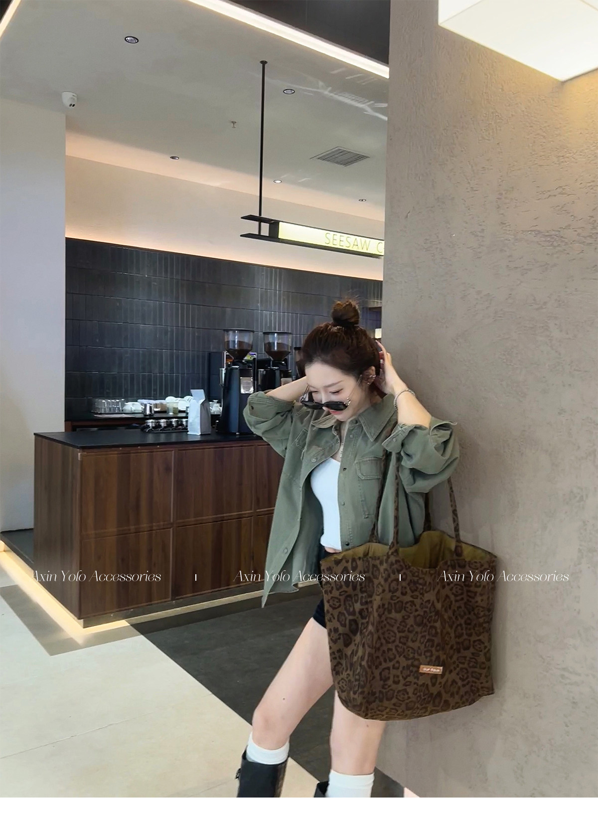 Suitable for All Seasons! Suede Leopard Print Multi-Color Sweet and Cool Pink Commuter Large-Capacity Double-Sided Tote Canvas Bag