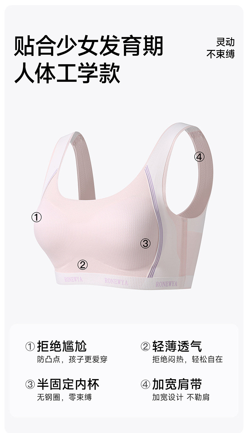 Tingmei 12-18 Year Old Developmental Period Girls' Bra, Junior High School Students' Vest-Style Sports Shock-Proof Breathable Girls' Bra