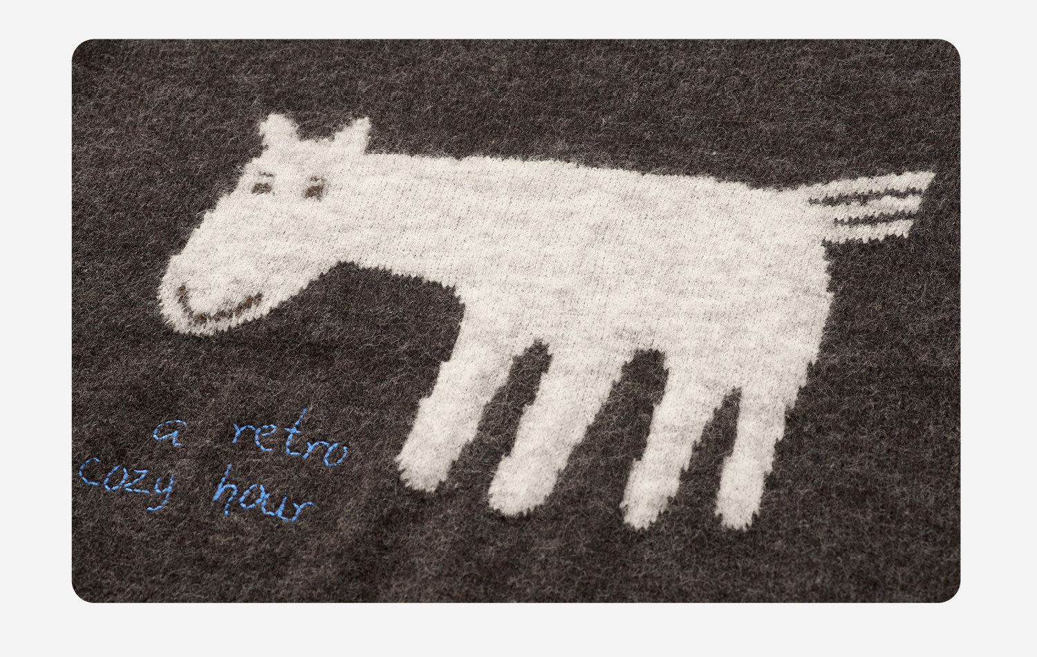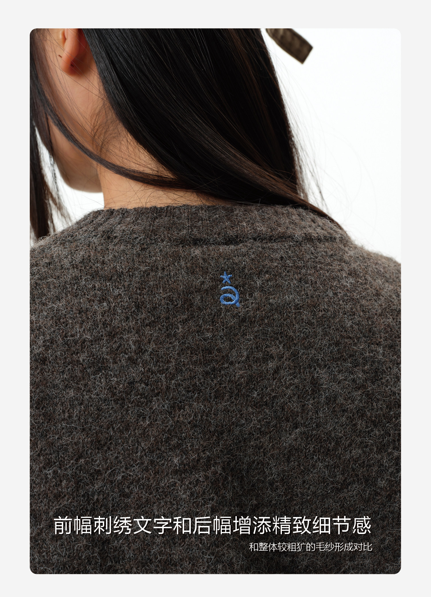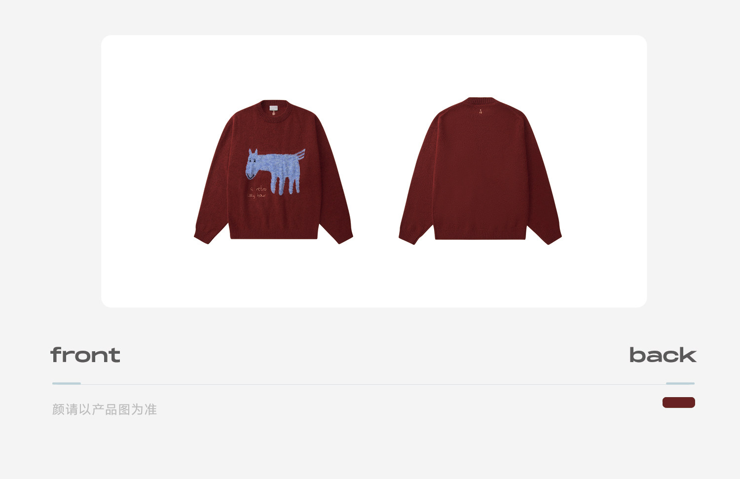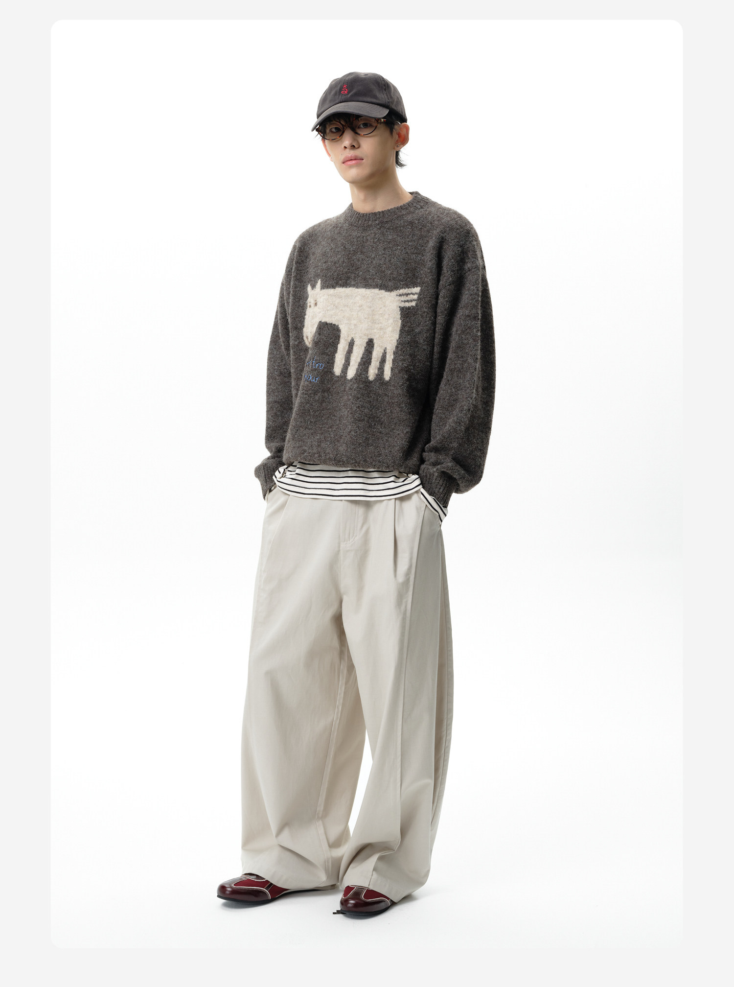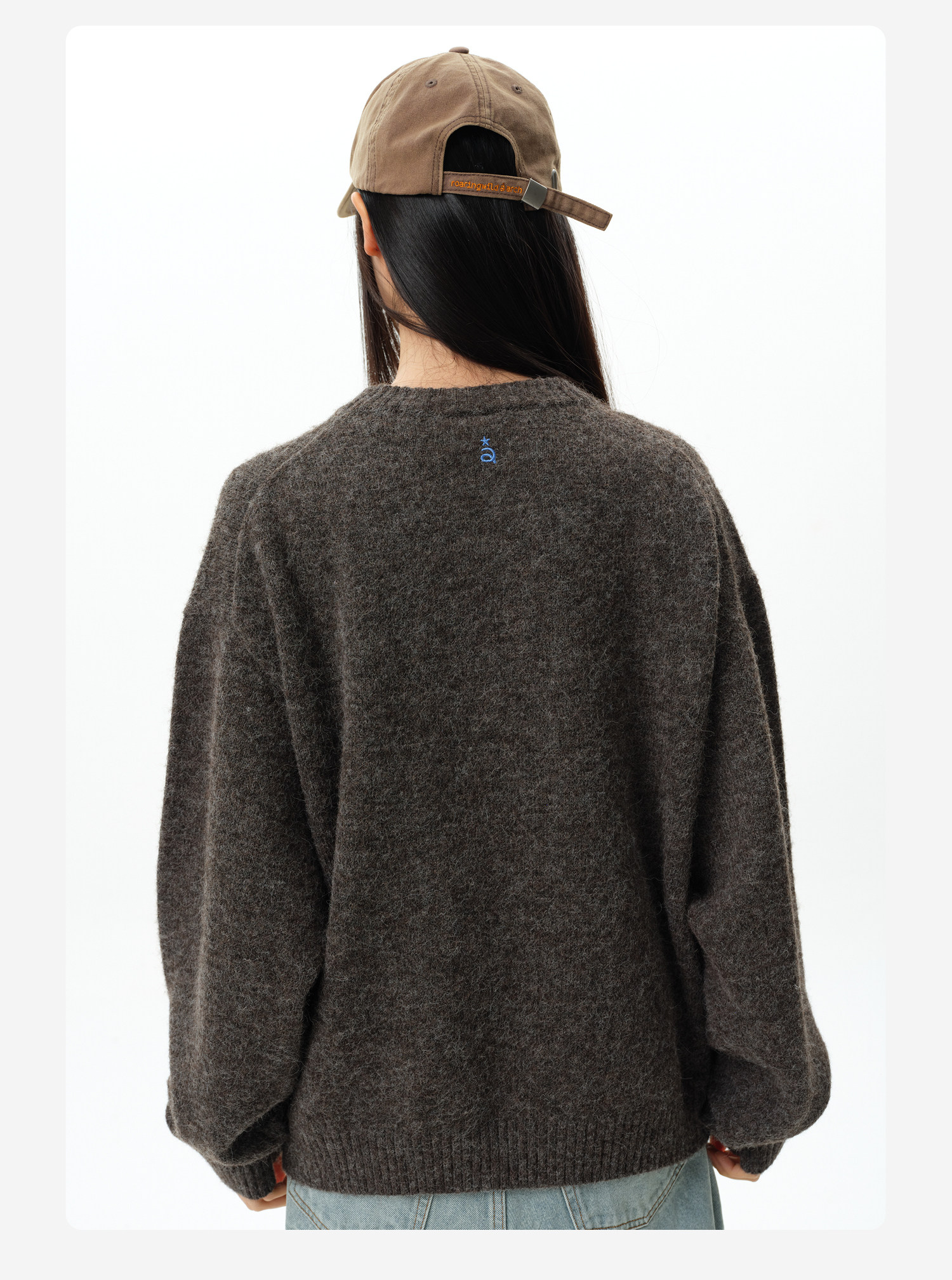Roaringwild a Arch Roaring Beast Color-Blocked Pony Couple Style Loose Merino Wool Crew Neck Sweater for Men