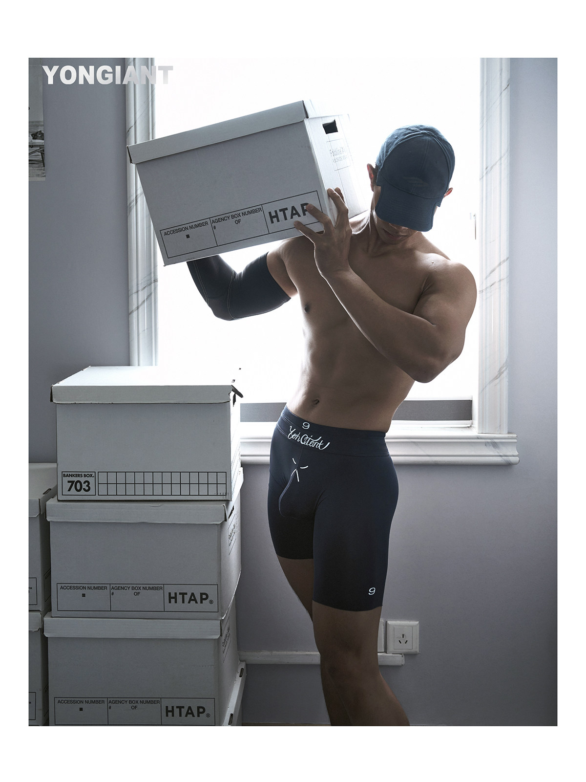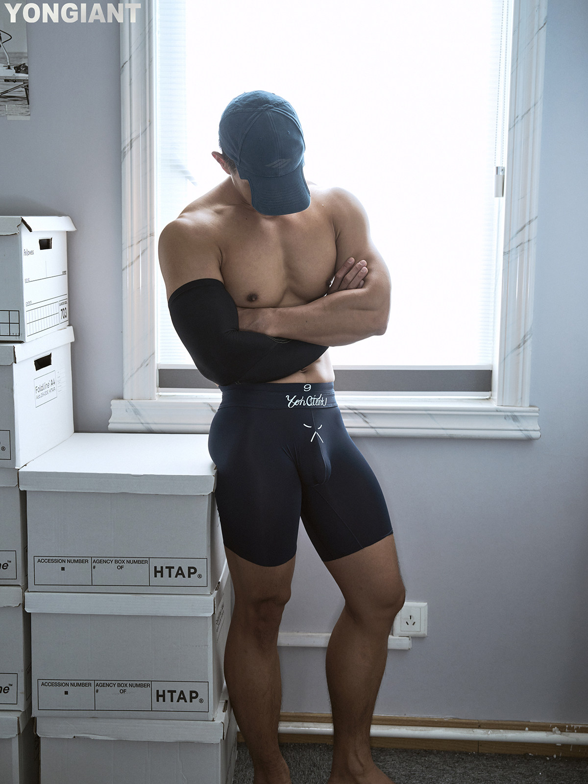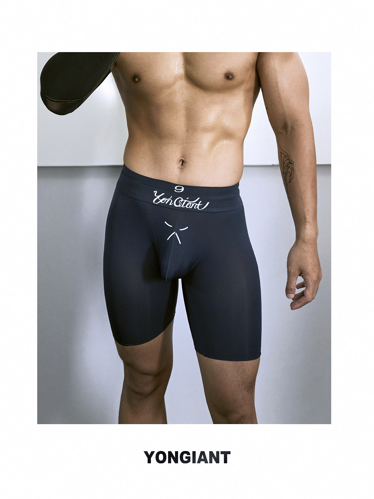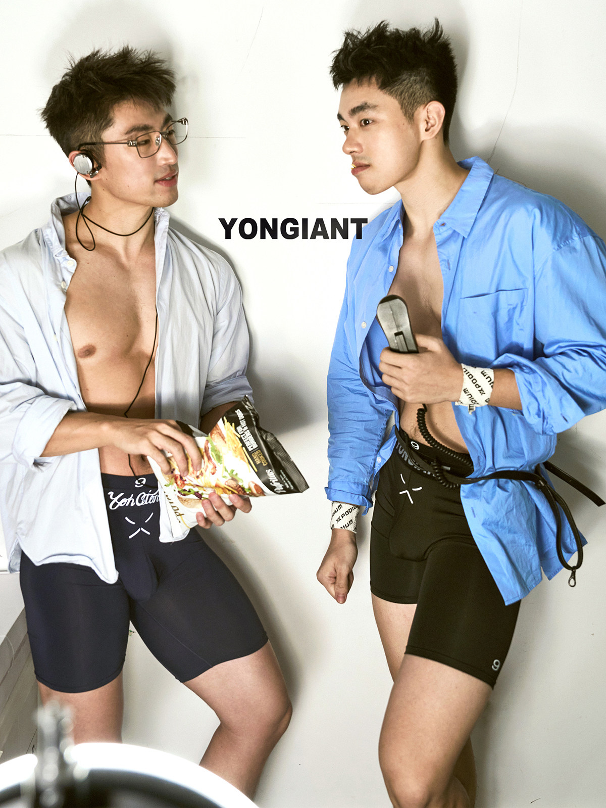 Yongiant Blue Tight Elastic Faux Double Belt Letter Print Leggings 2025Ss Yg25014