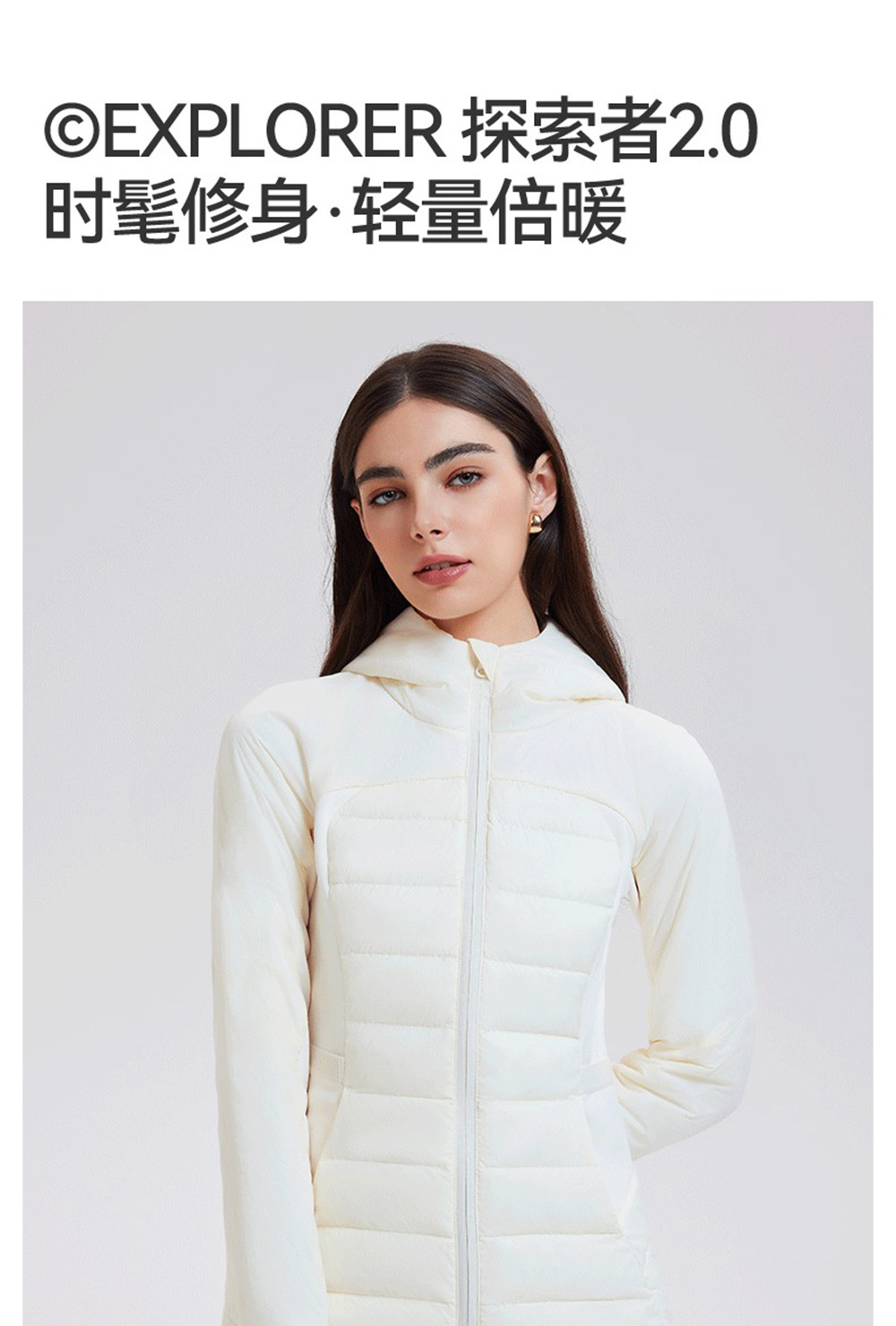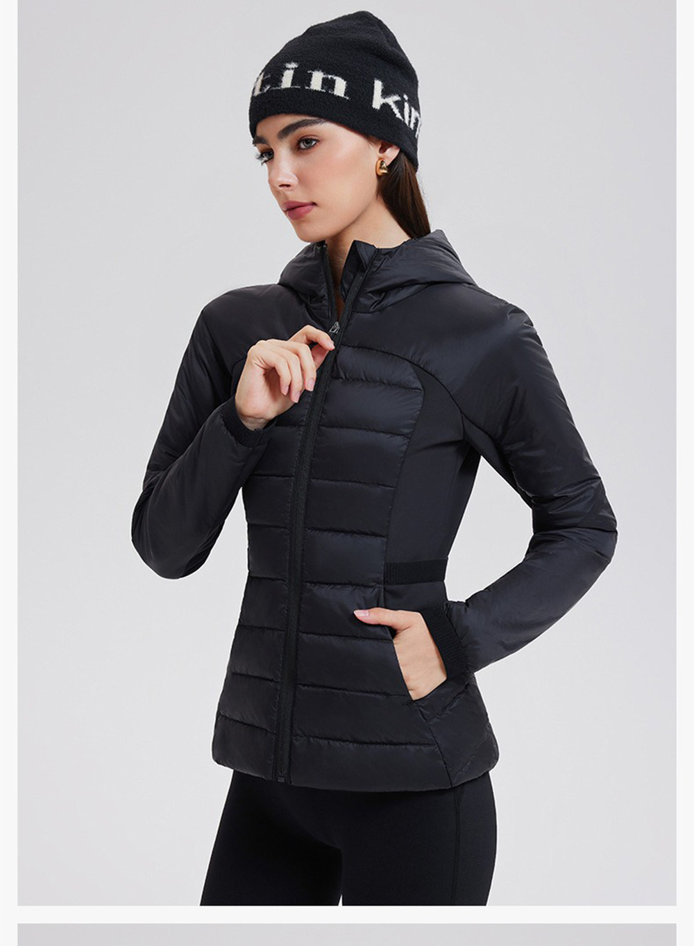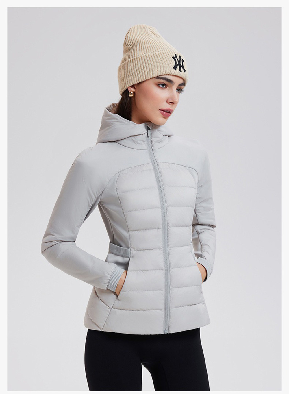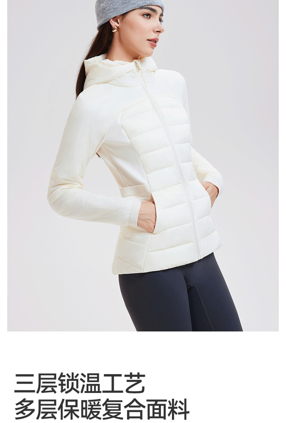 American down Jacket for Women in Autumn and Winter, White Goose Down, Lightweight, Waist-Cinching, Slim-Fitting, Hooded, Cycling, Sports, Running, Fitness Jacket
