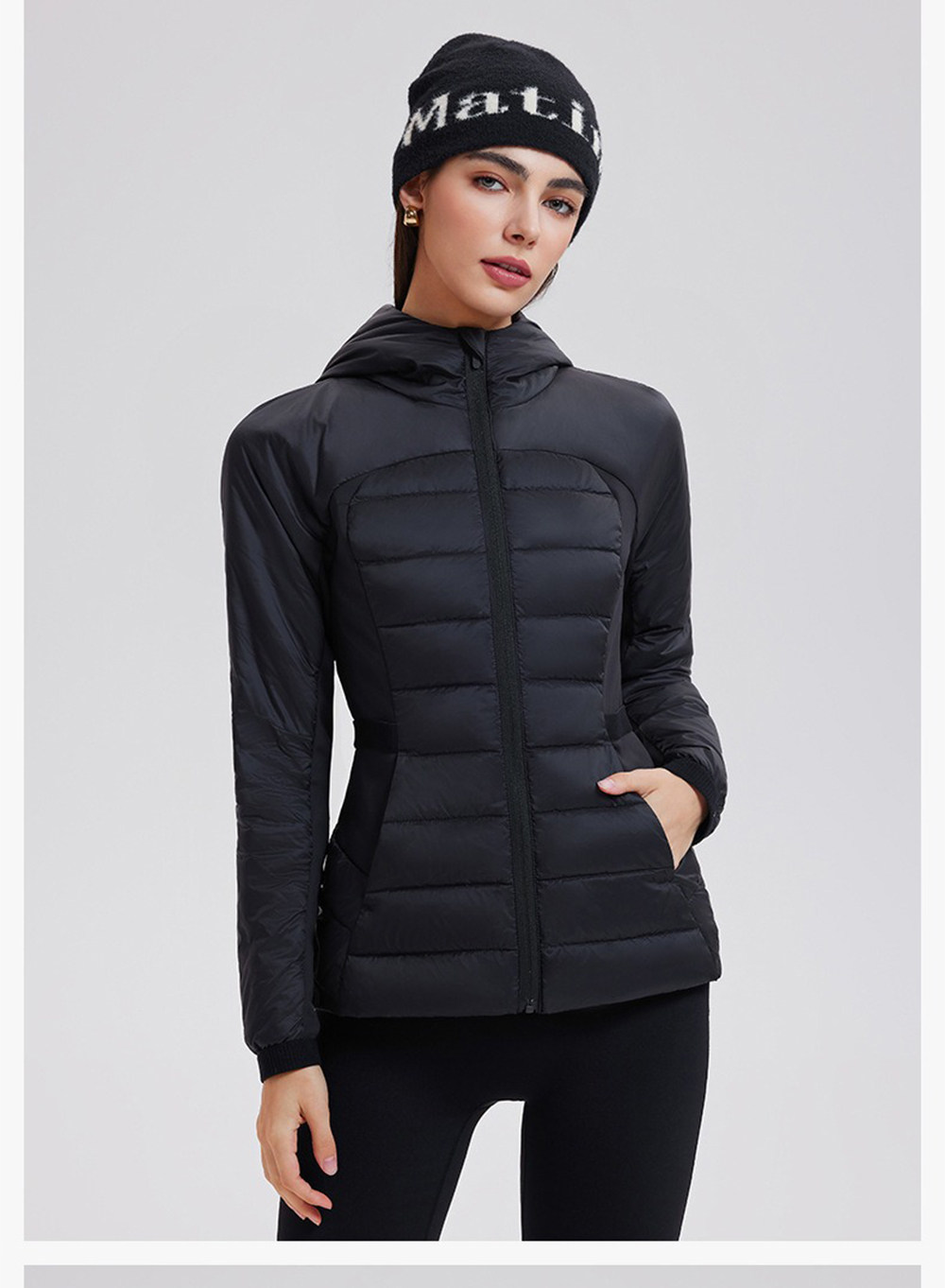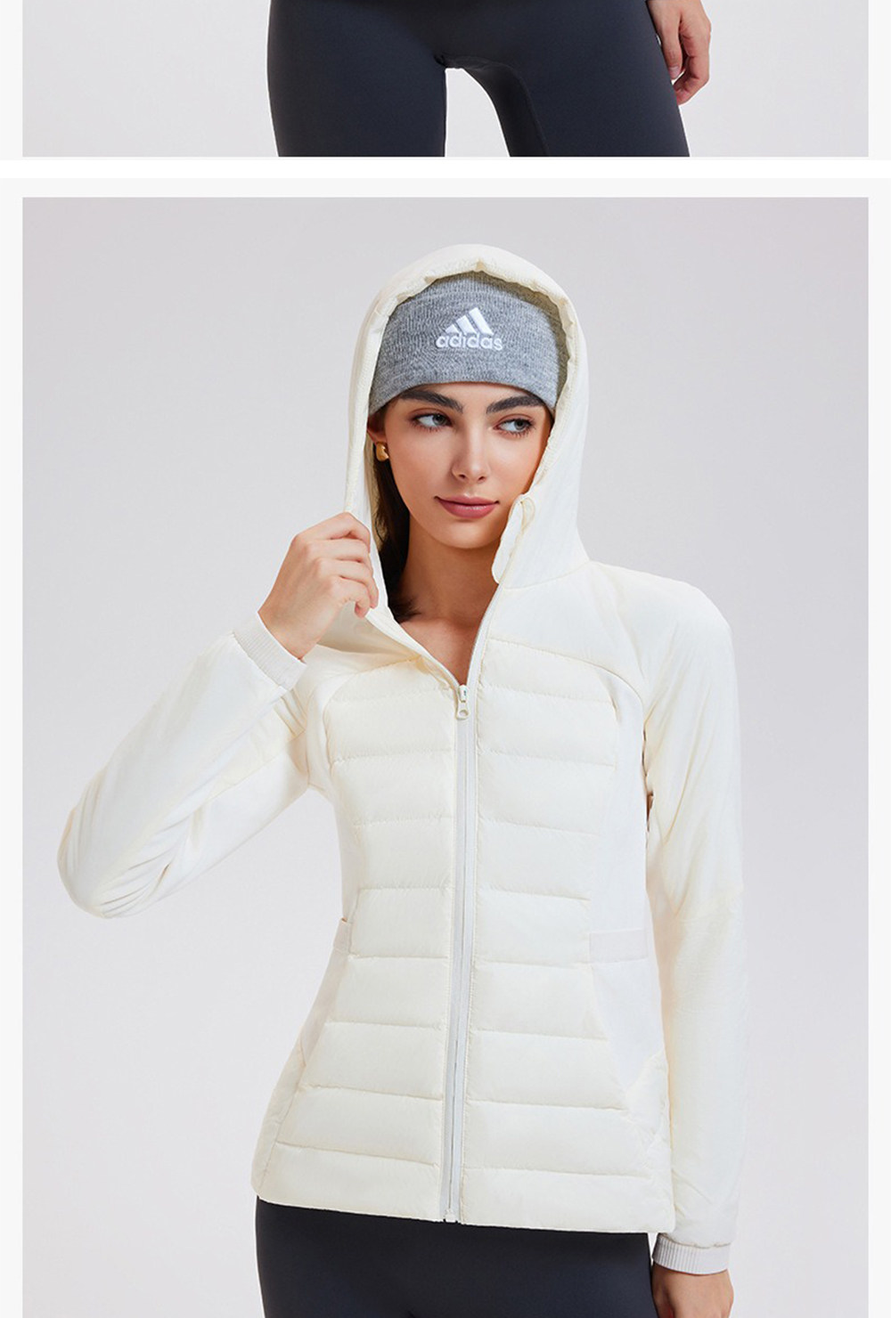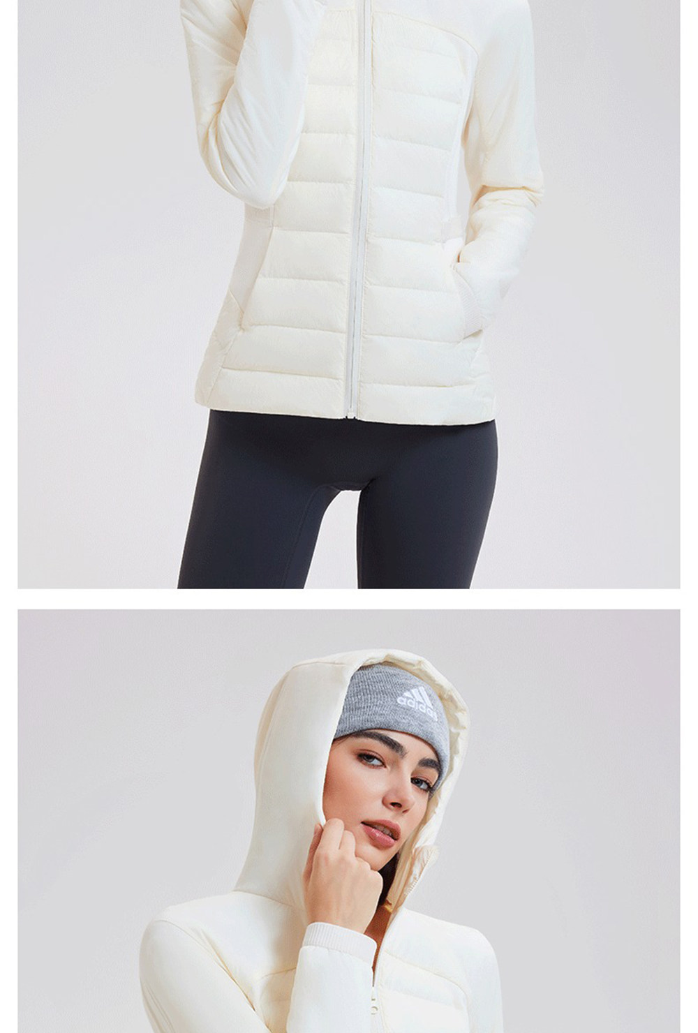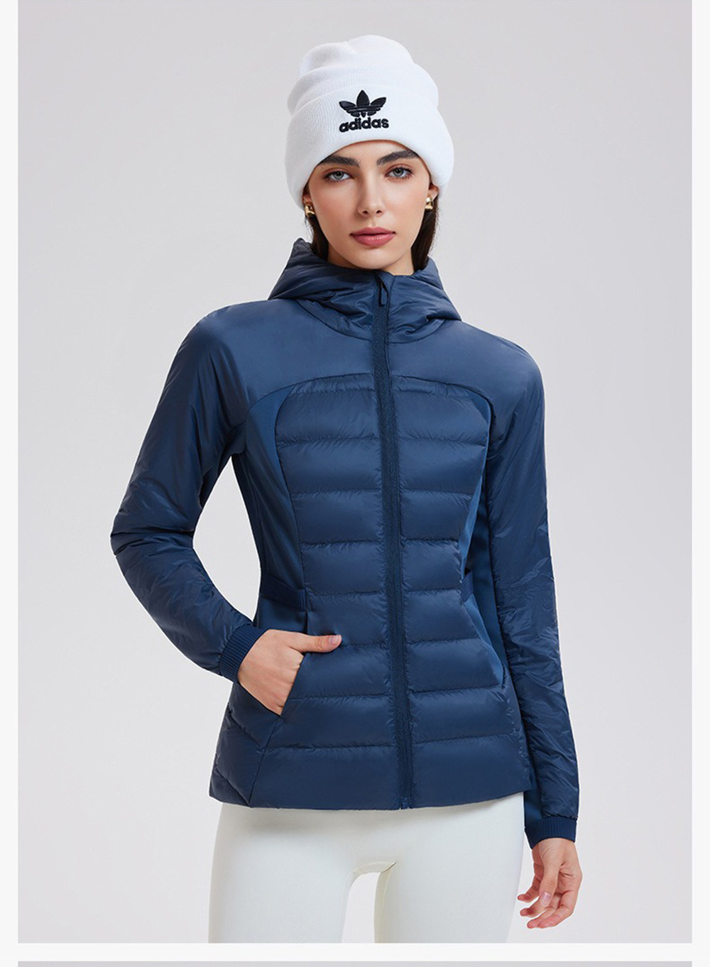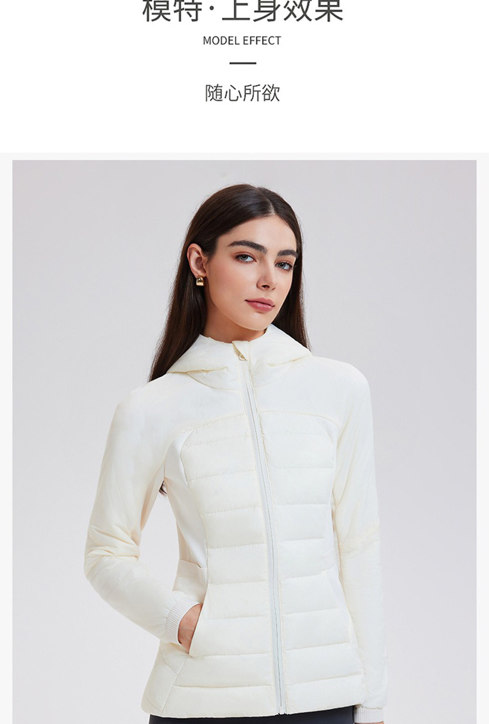 American down Jacket for Women in Autumn and Winter, White Goose Down, Lightweight, Waist-Cinching, Slim-Fitting, Hooded, Cycling, Sports, Running, Fitness Jacket