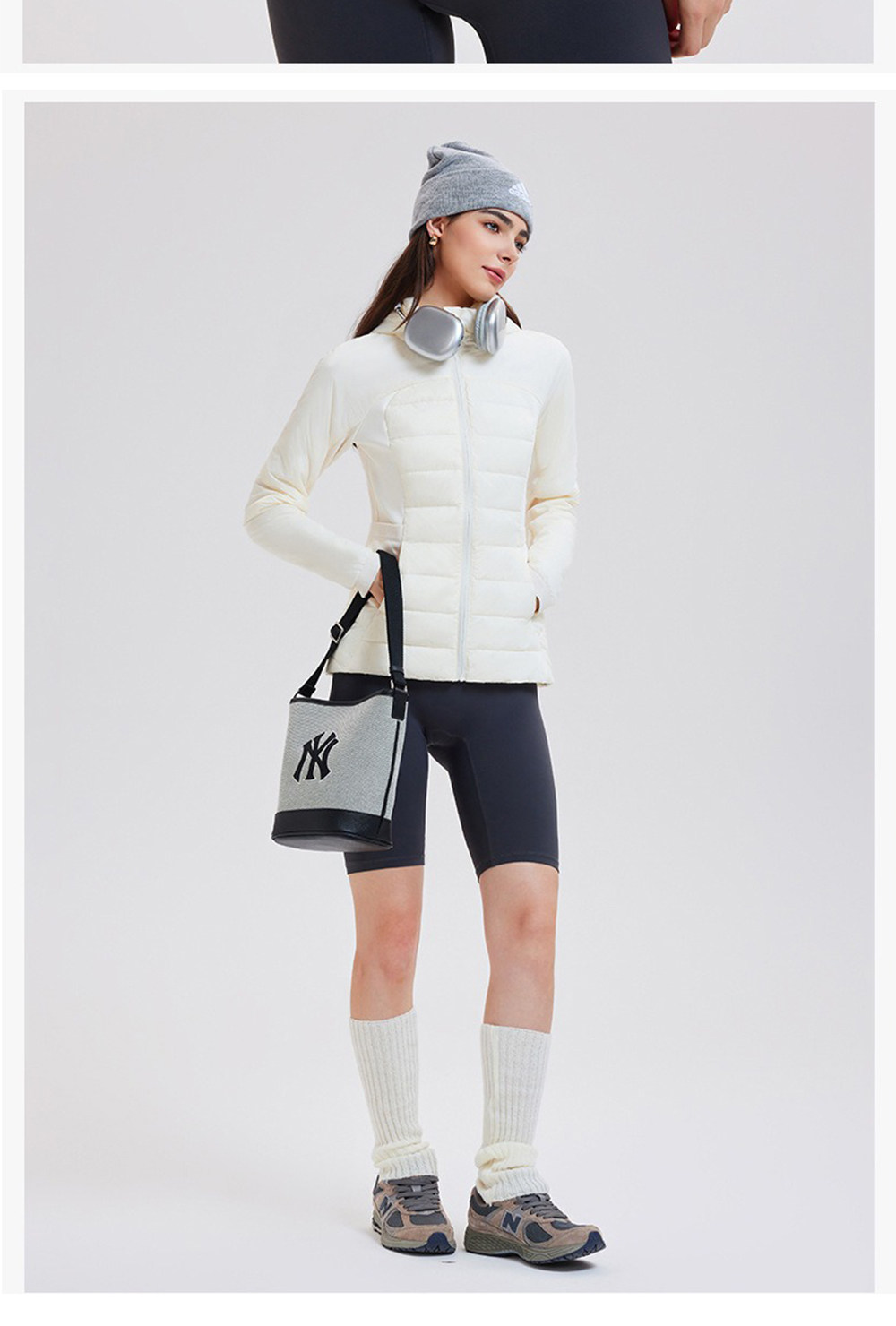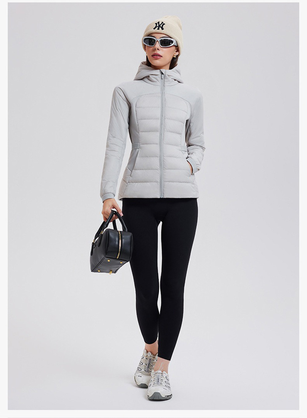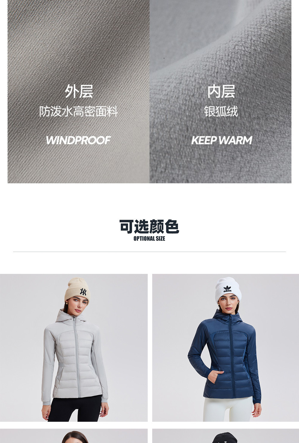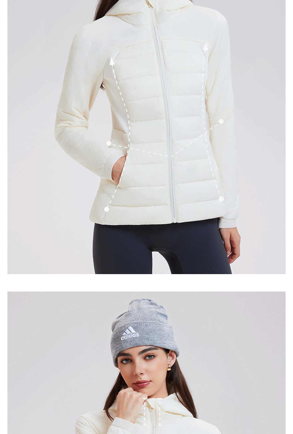 American down Jacket for Women in Autumn and Winter, White Goose Down, Lightweight, Waist-Cinching, Slim-Fitting, Hooded, Cycling, Sports, Running, Fitness Jacket