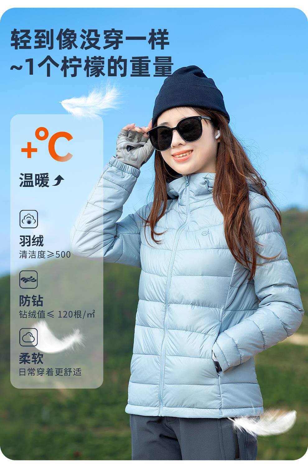 Tantuo Winter Lightweight down Jacket for Women, 90% White Duck Down, Ribbed Hooded, Warm and Cold-Proof, Inner Layer Jacket